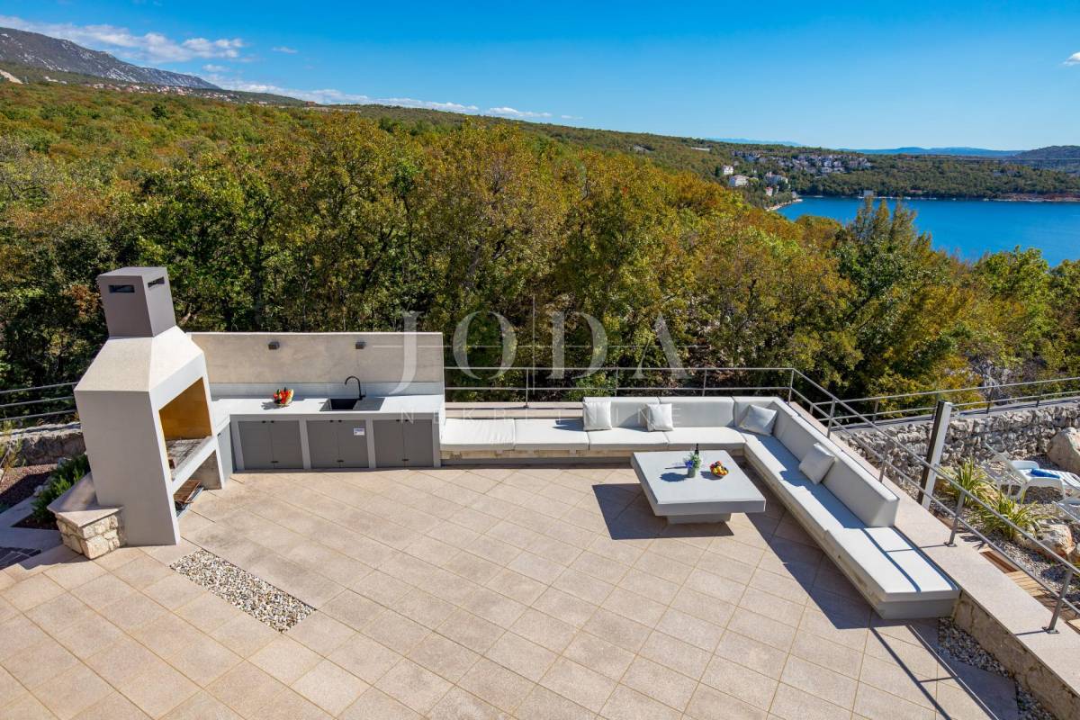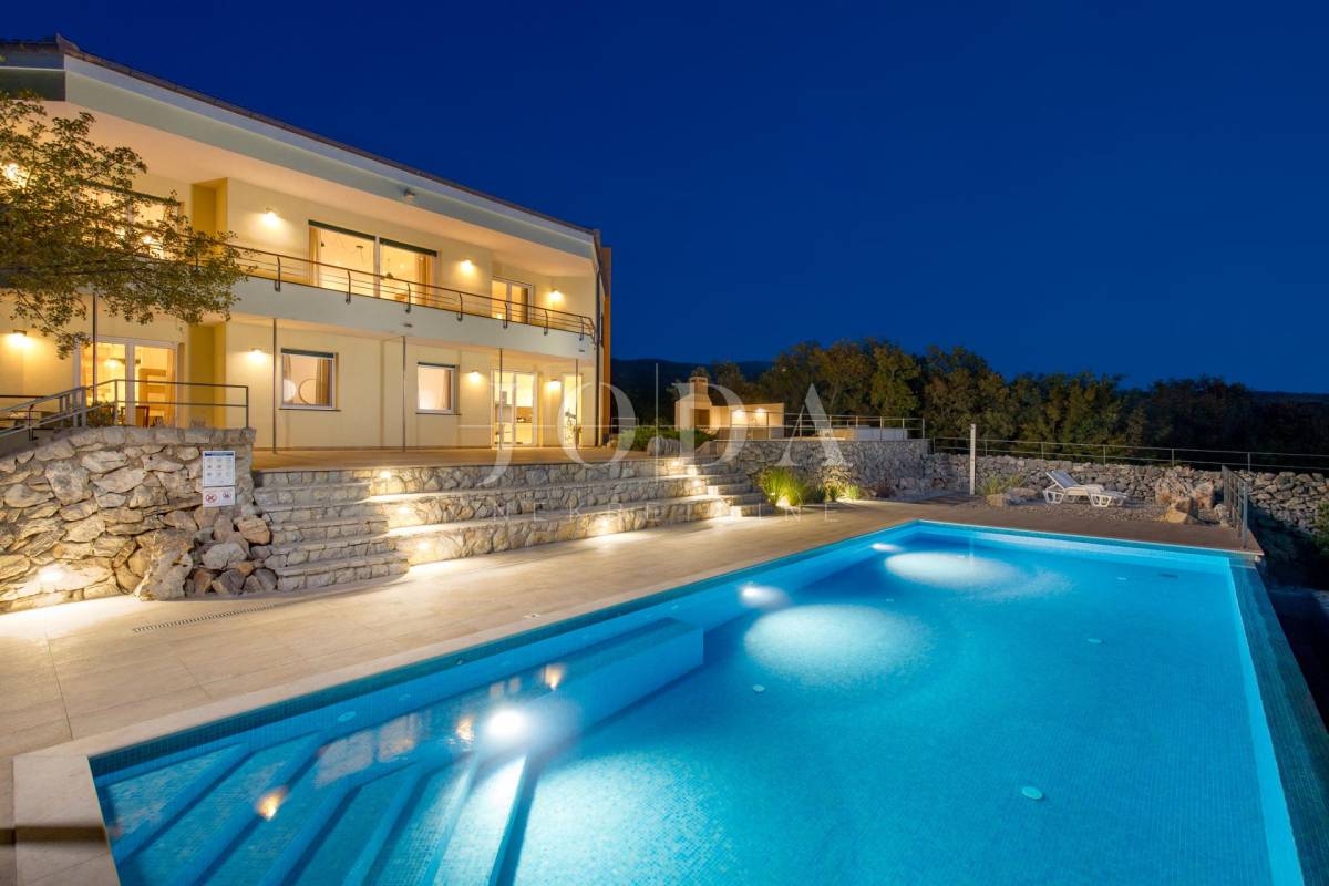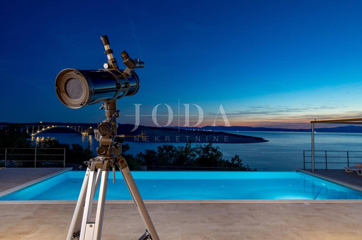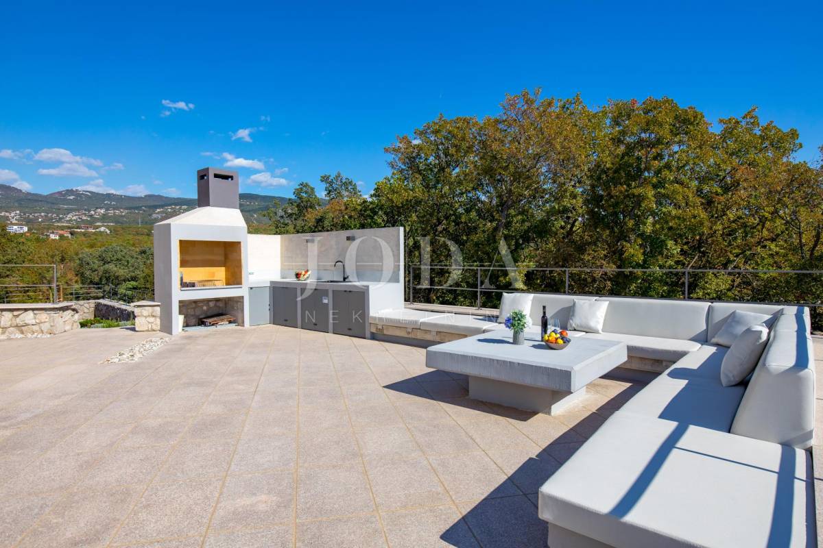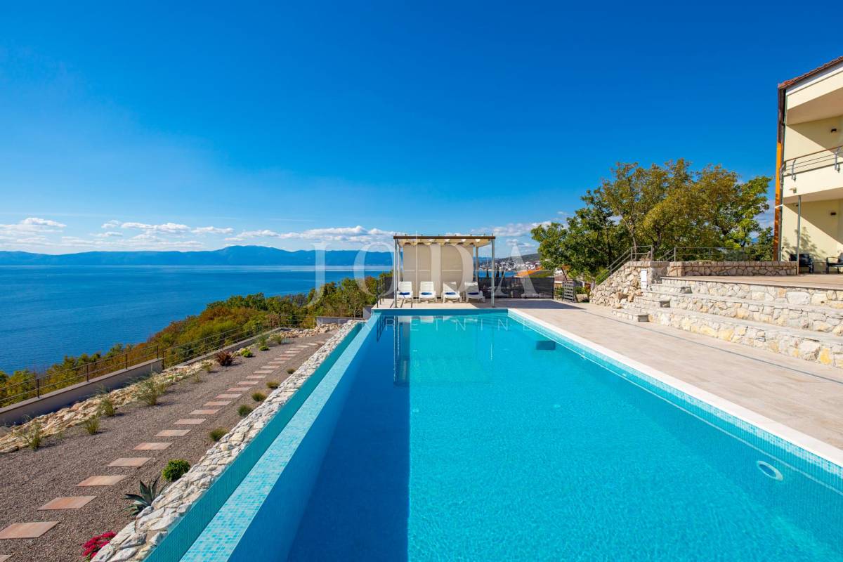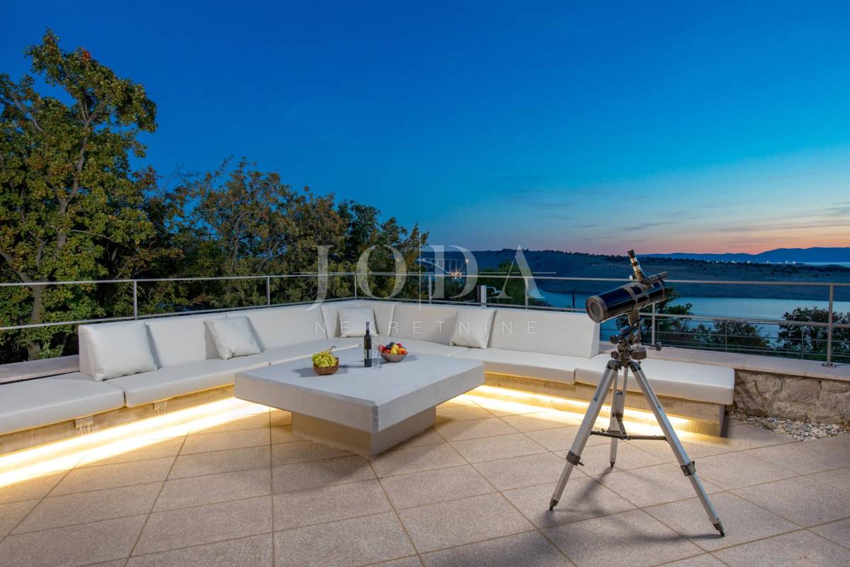 Cijelo prizemlje je orijentirano na južnu stranu sa izlazom na veliku terasu unutar koje dominira preljevni bazen te prostor lounga.