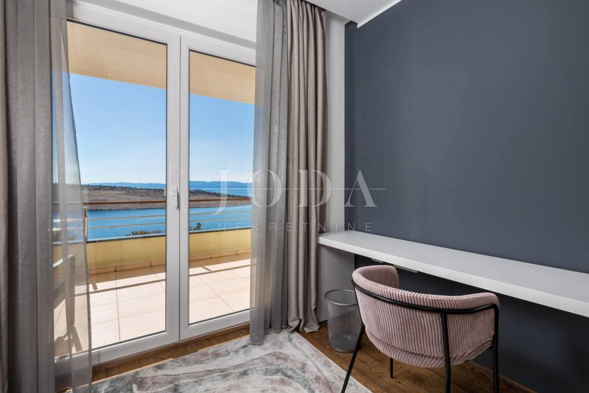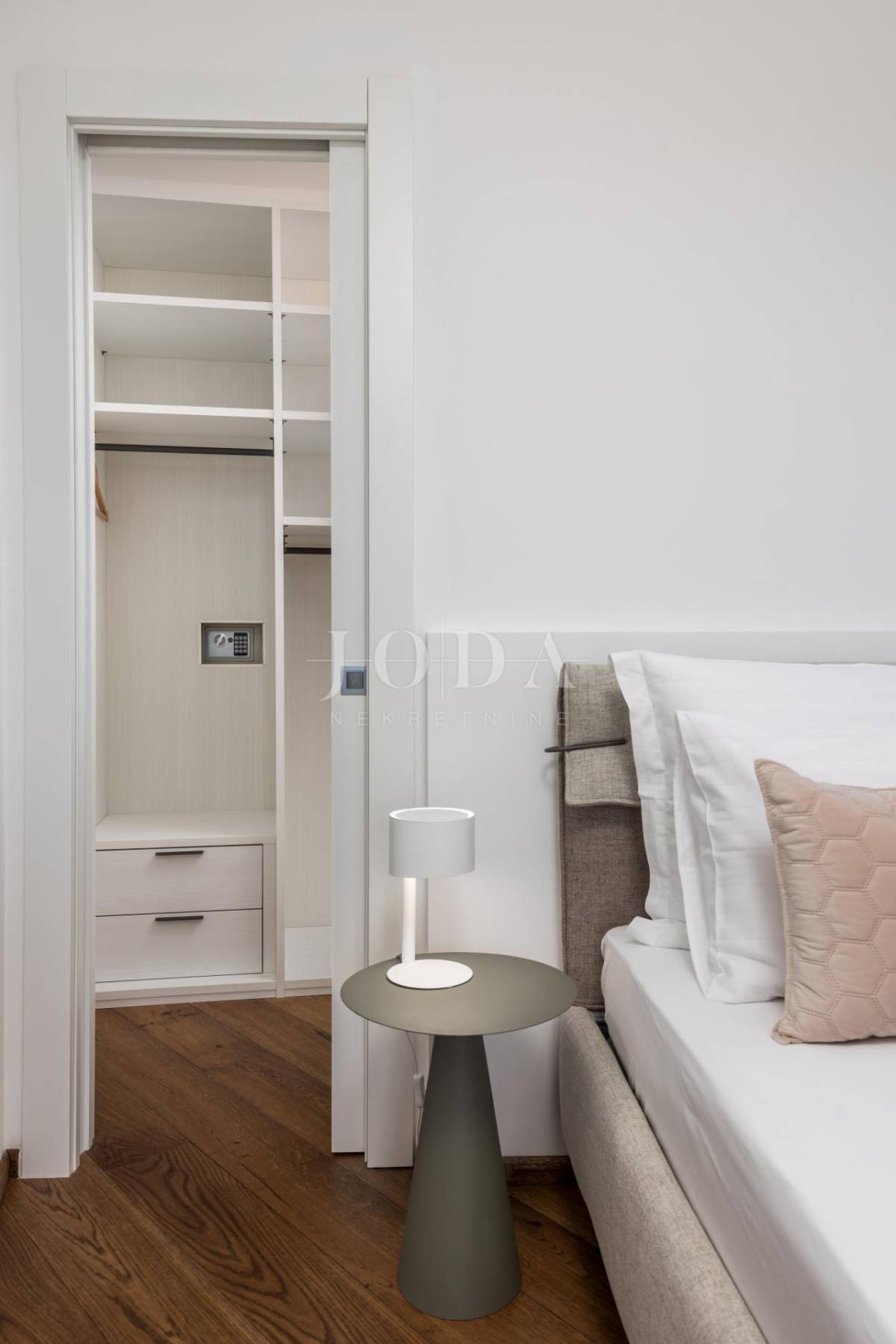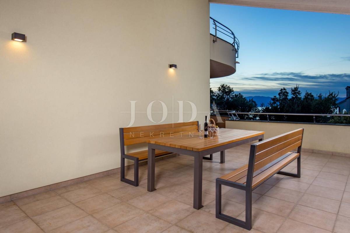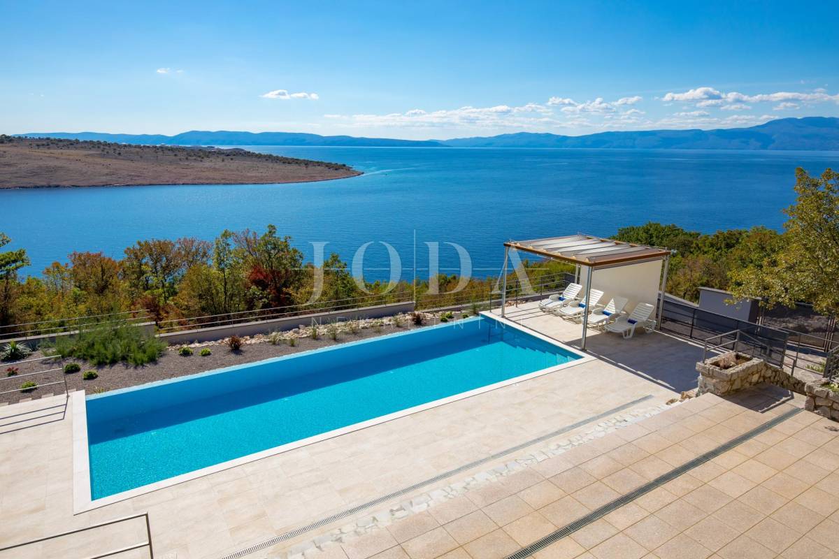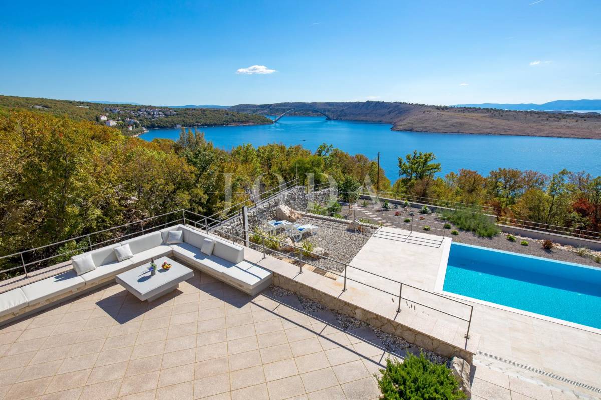 Cijelo prizemlje je orijentirano na južnu stranu sa izlazom na veliku terasu unutar koje dominira preljevni bazen te prostor lounga.