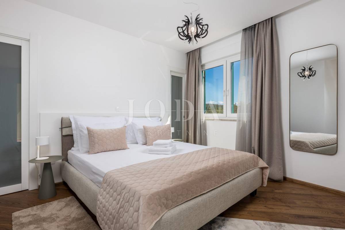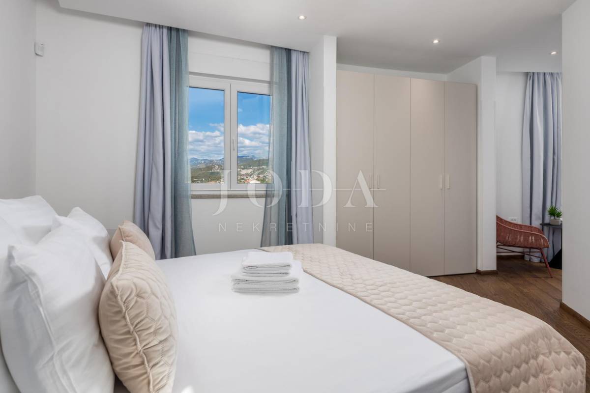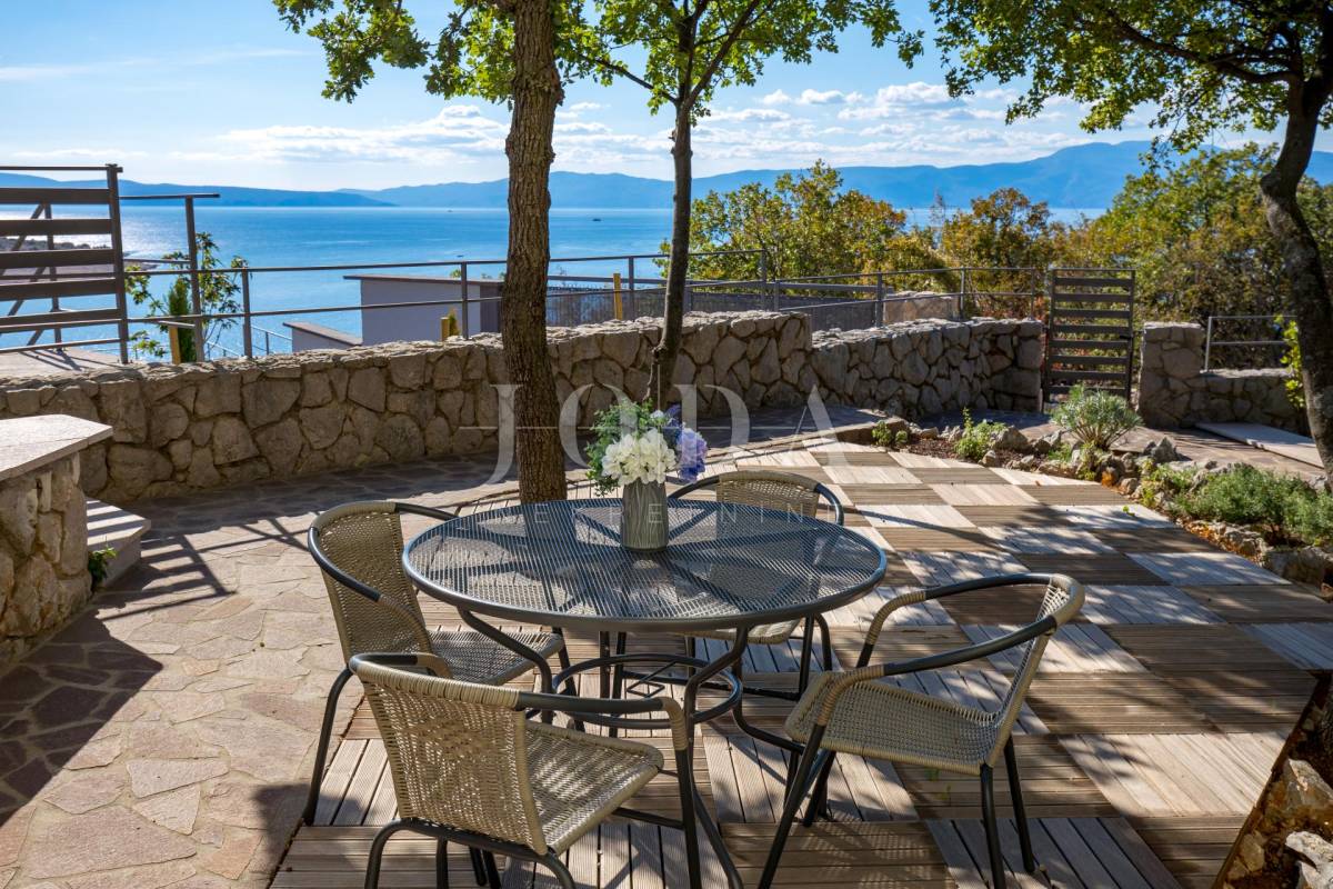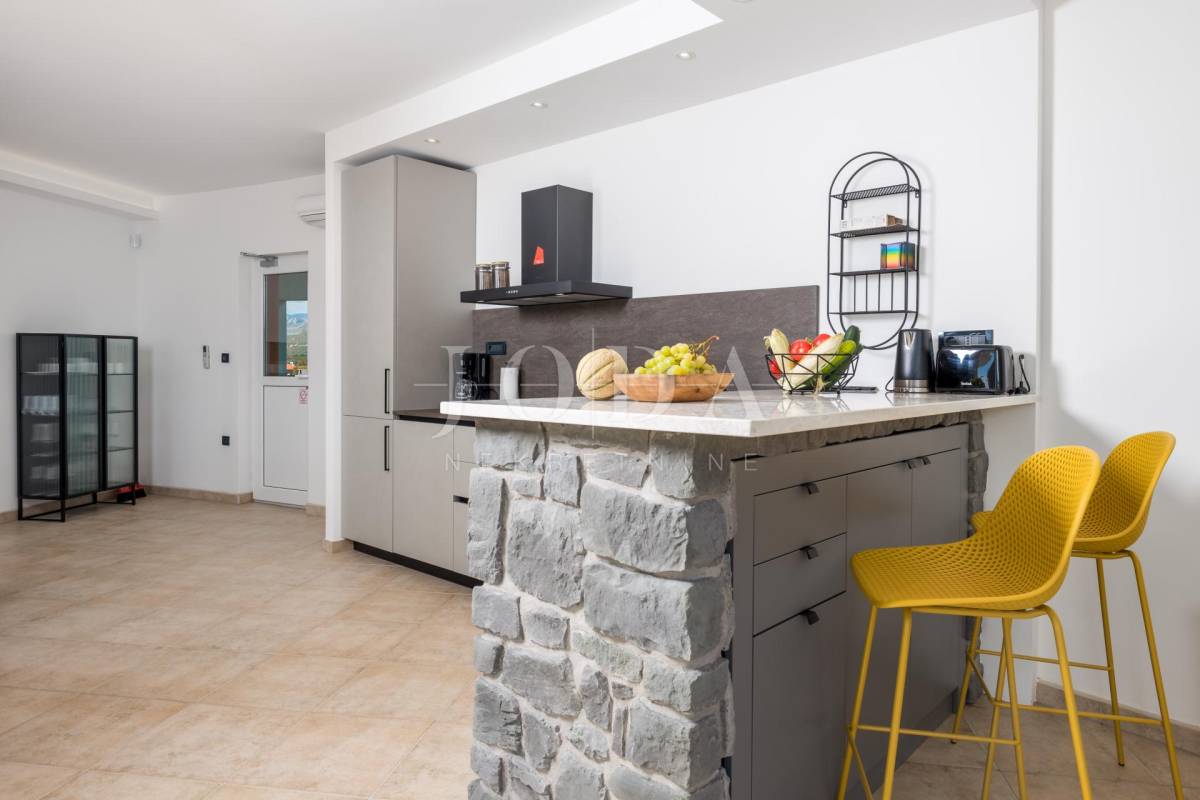 Na kraju slijepe ulice,unutar ograđene i prekrasno uređene okućnice smještena je samostojeća kuća sa spektakularnim pogledom na more i okolicu.