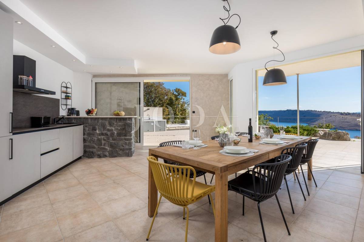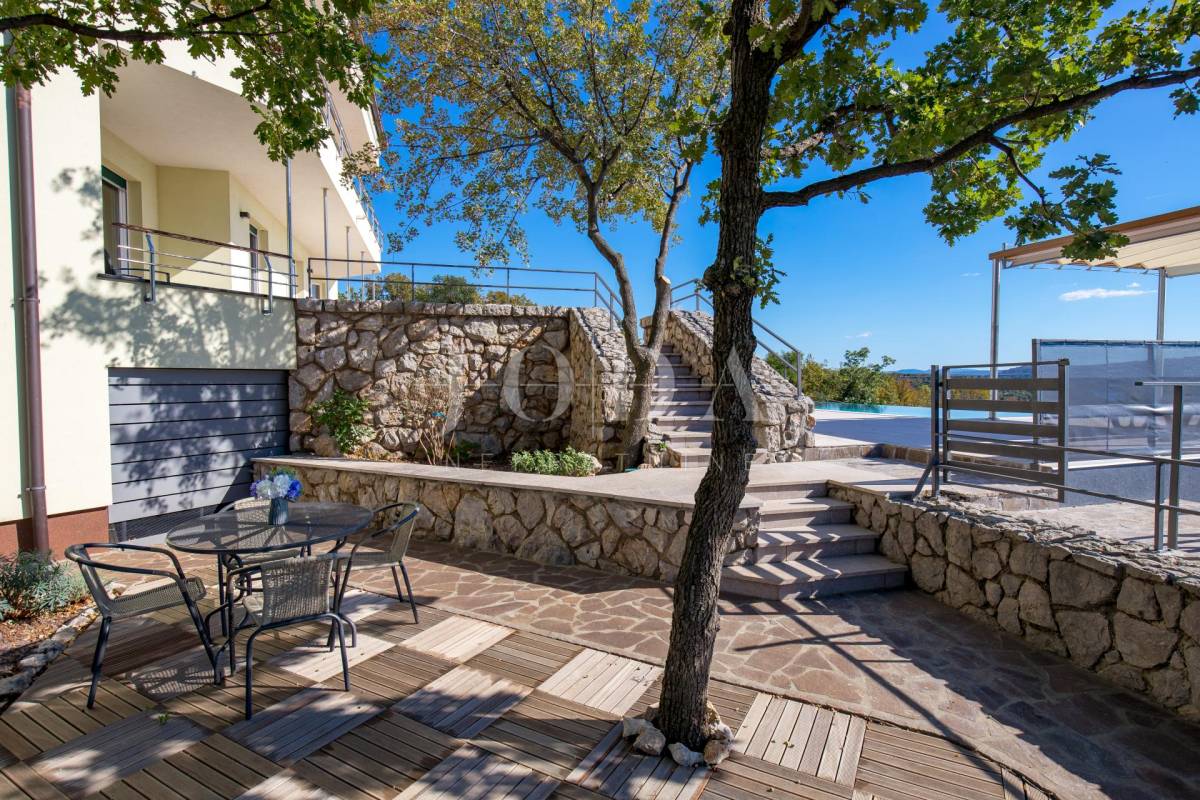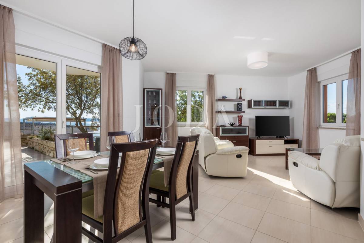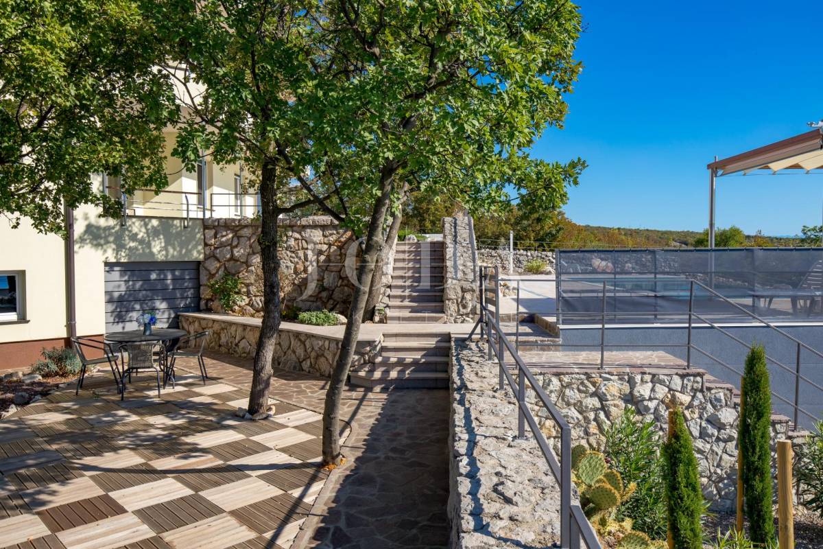 Na kraju slijepe ulice,unutar ograđene i prekrasno uređene okućnice smještena je samostojeća kuća sa spektakularnim pogledom na more i okolicu.