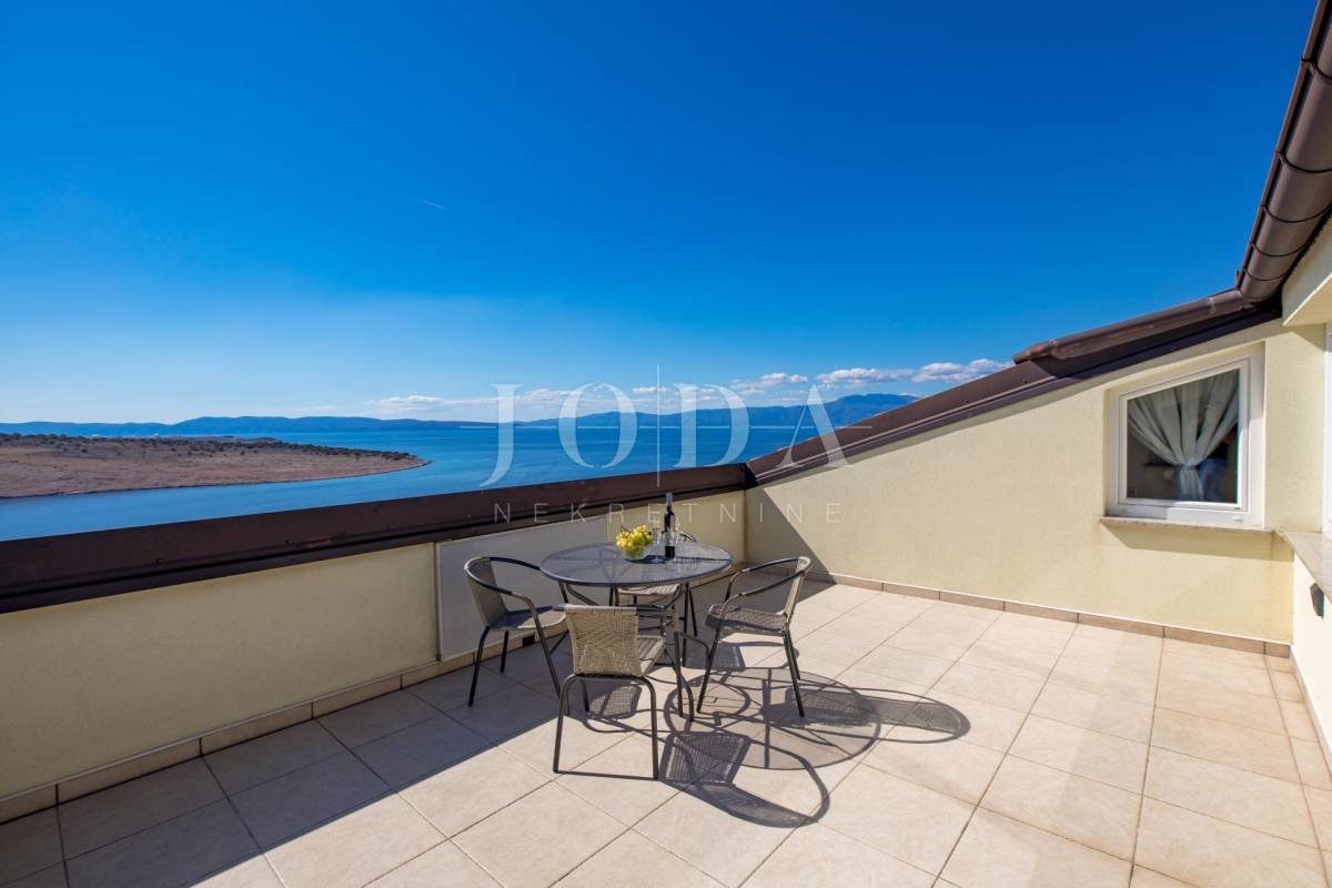 Na 1. katu je veliki trosobni stan sa južno terasom ali i velikom sjevernom terasom sa koje se pruža pogled na okolna mjesta i brda u zaleđu.