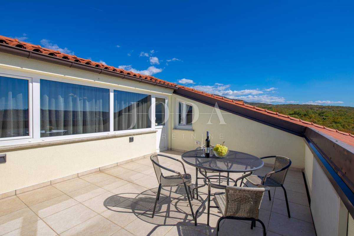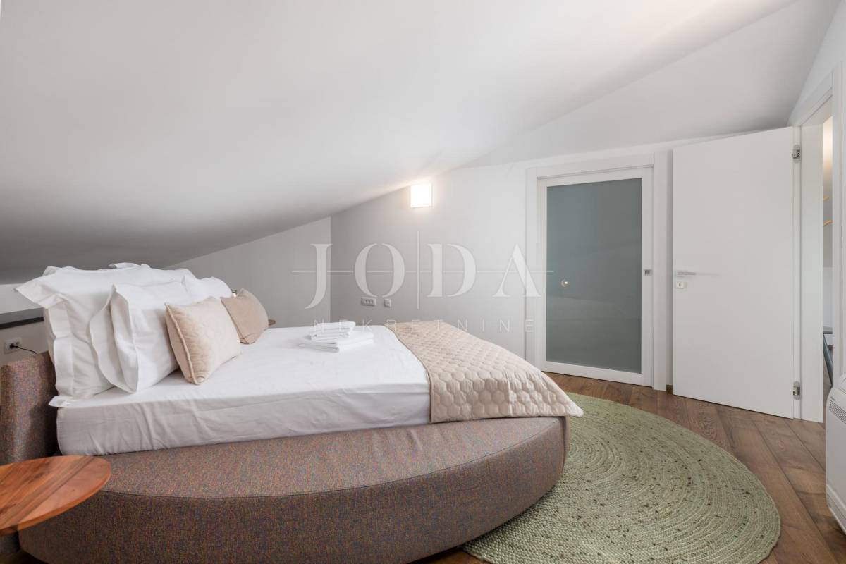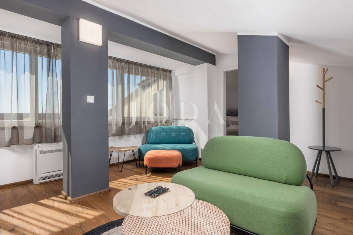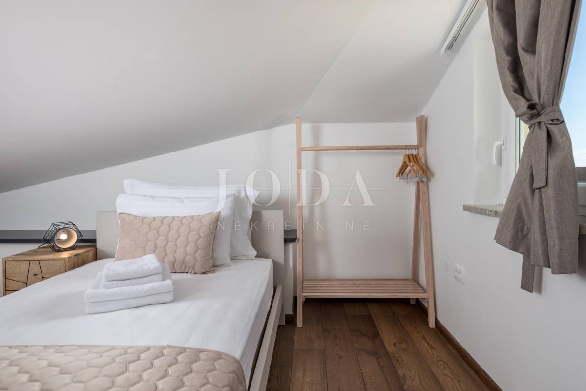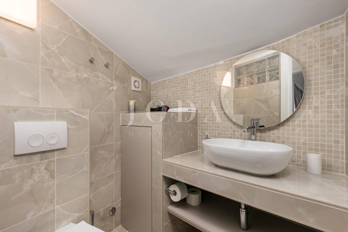 Visoko potkrovlje je preuređeno u dvije sobe sa kupaonicom te dnevni prostor sa krovnom terasom.