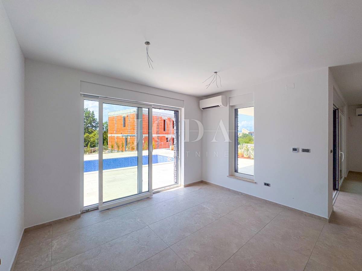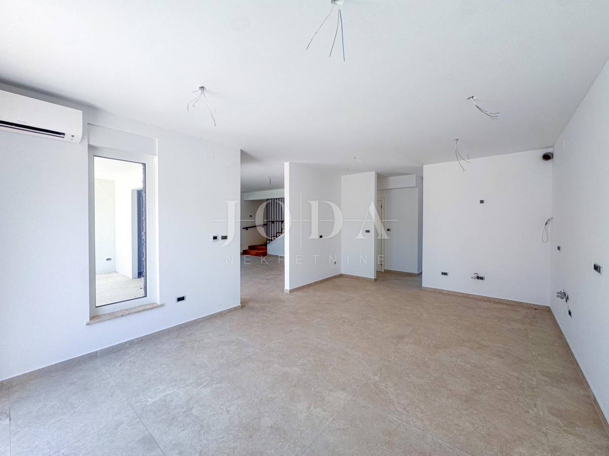 Stan povrsine 151 m nudi vrhunski dizajn i funkcionalnost, ima prekrasnu privatnu terasu s bazenom i dva vlastita parkirna mjesta. S gornjeg kata mozete uzivati u predivnom pogledu na more, koje je udaljeno svega stotinjak metara.