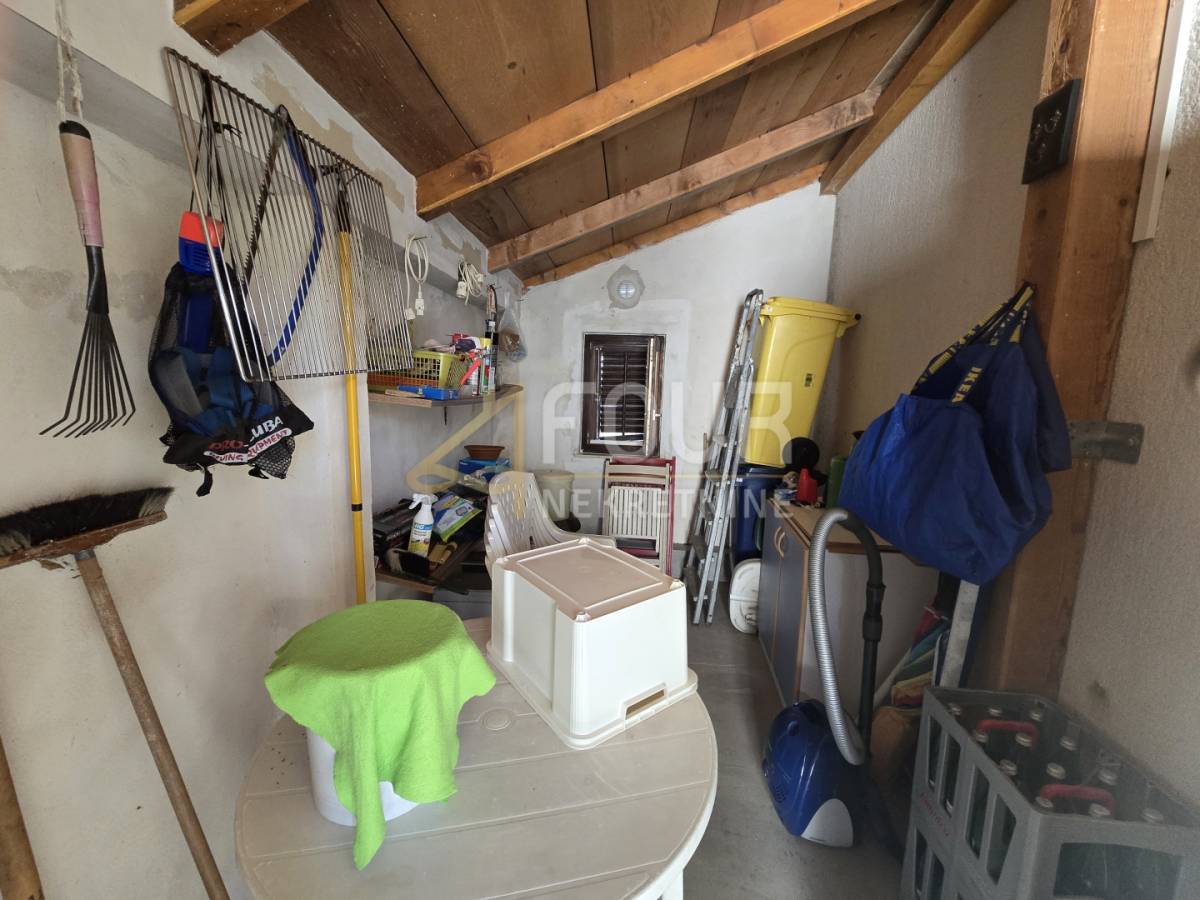 U kući se nalazi dvosobni klasični stan koji se sastoji od kuhinje, kupaonice te dvije denivelirane sobe, što prostoru daje poseban karakter. Kuća je uredna i održavana, s PVC stolarijom i konobom koja nudi dodatni prostor za pohranu ili hobi.