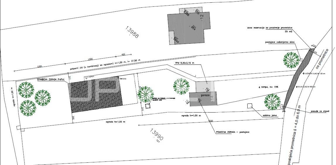 Na parceli se nalazi legalizirani objekt površine 31,44 m² (trenutno neupotrebljiv), za koji je prema važećoj građevinskoj dozvoli predviđena prenamjena u pomoćni objekt – garažu površine 23,44 m².