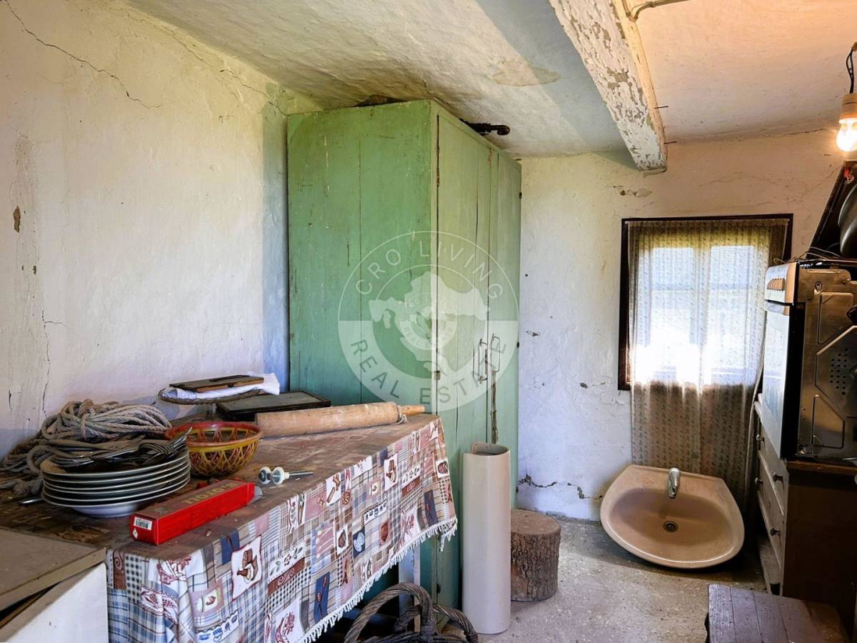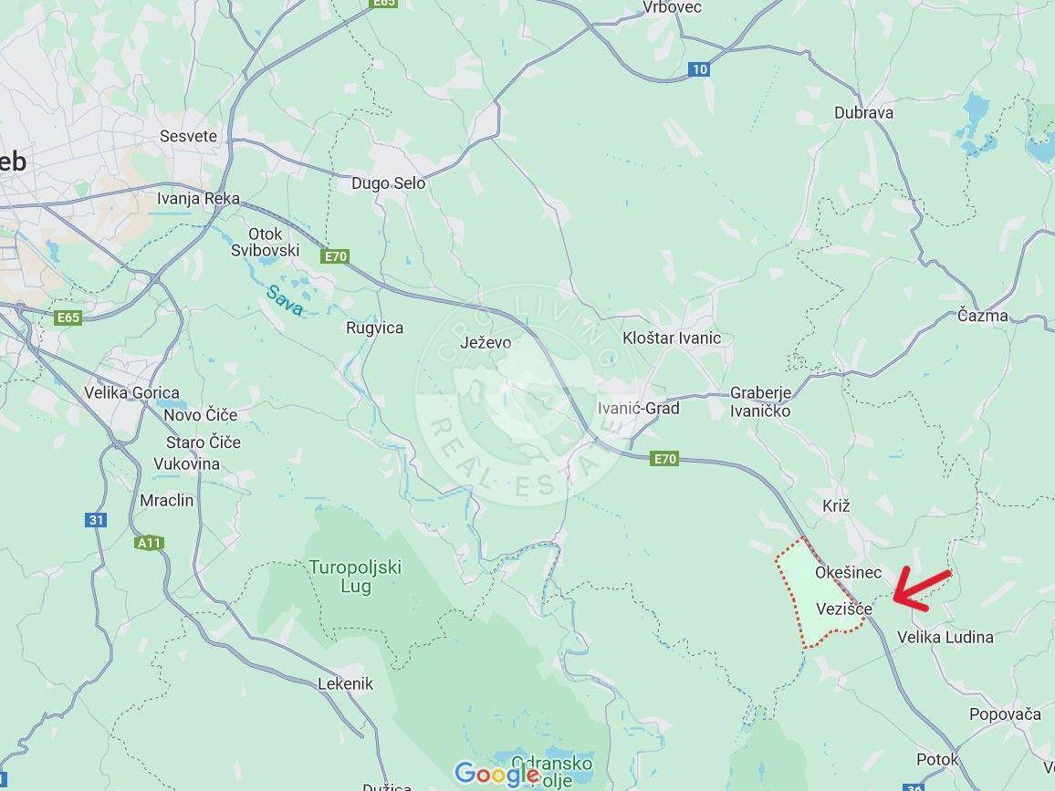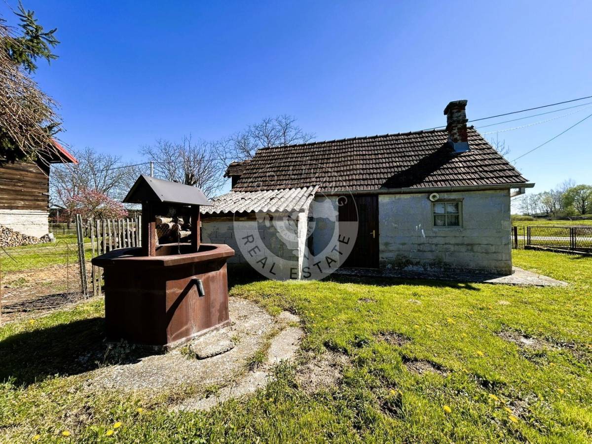 U mjestu Vezišće nalazi se drvena kuća veličine oko 30 m2, na zemljištu od 1104 m2.