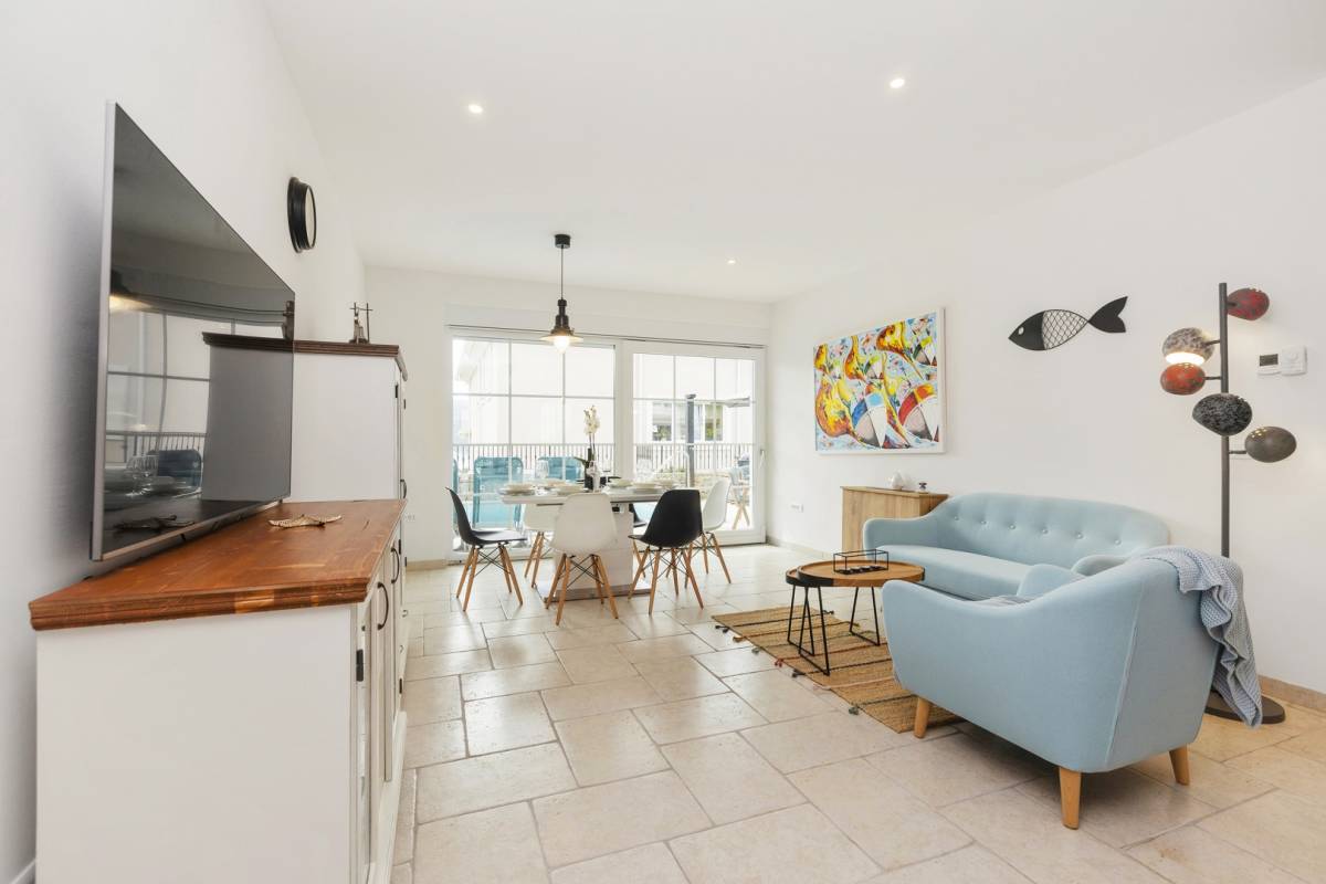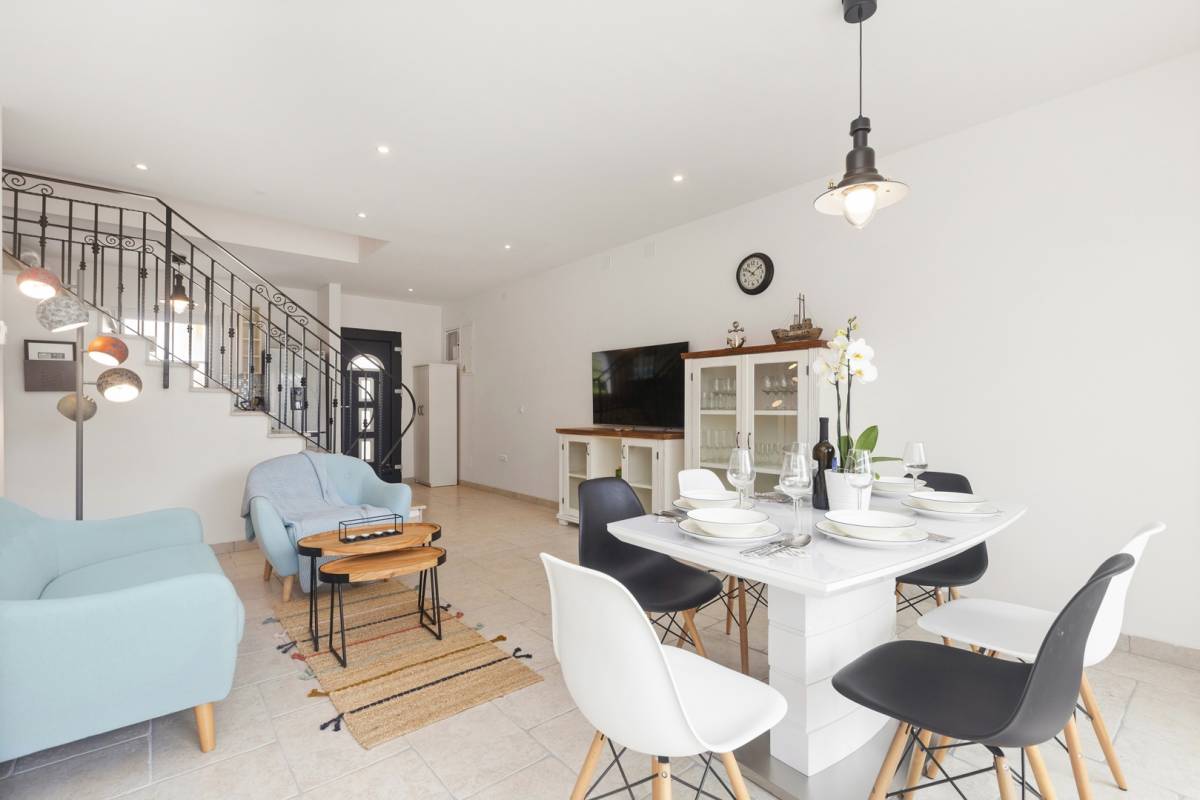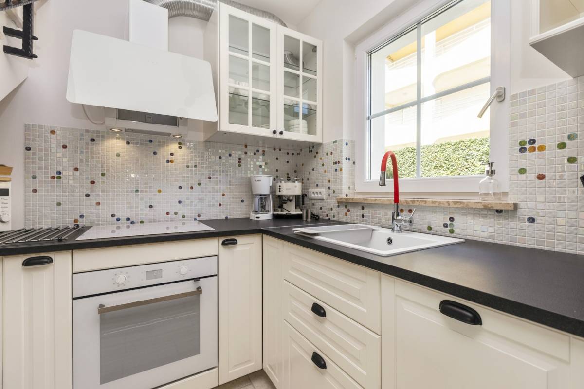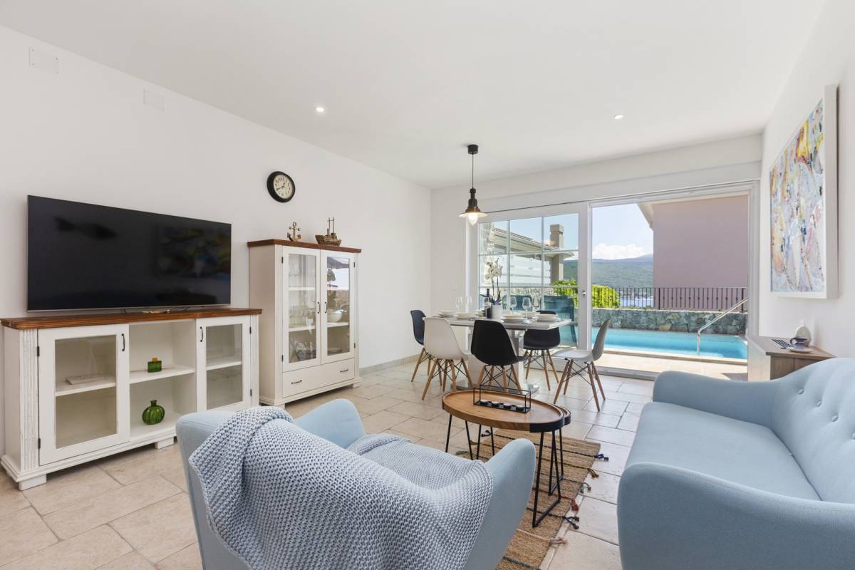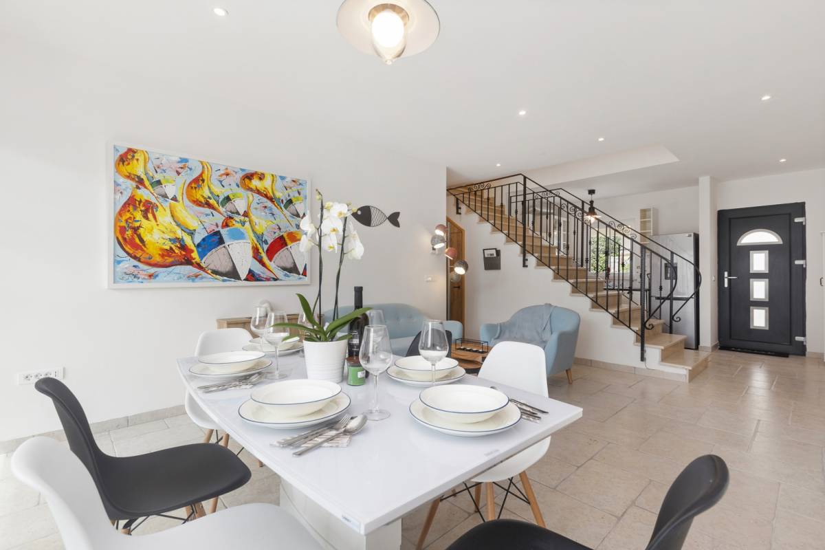Ulaz u samu vilu vodi u dnevni boravak s blagovaonicom otvorenog prostora te funkcionalnu kuhinju. Na donjem se katu nalaze i hodnik, kupaonica te spavaća soba. Izlaz na prostranu terasu sa grijanim bazenom i sunčalištem vodi iz dnevnog boravka.
