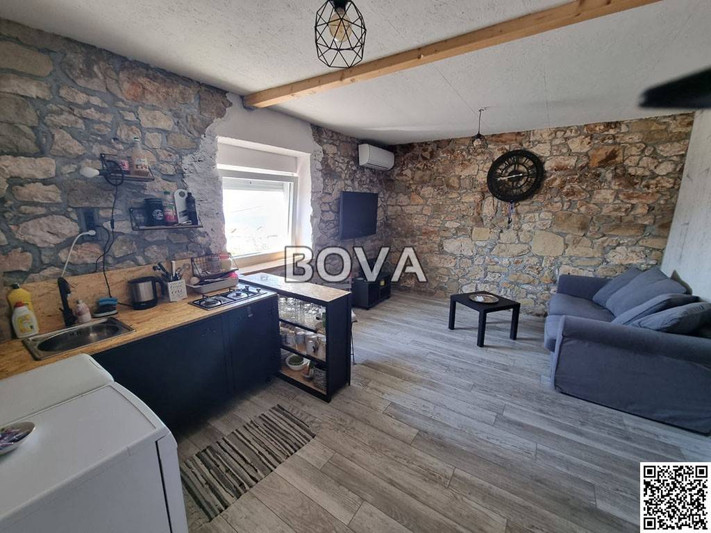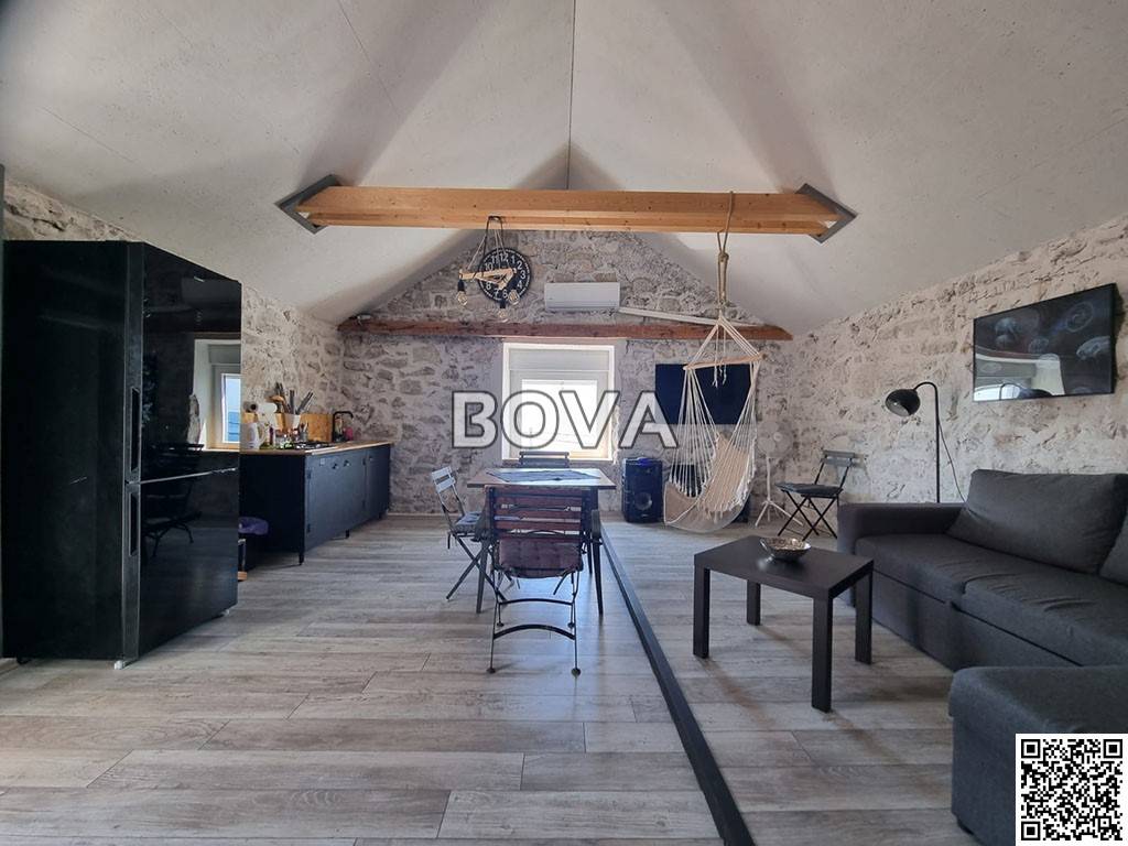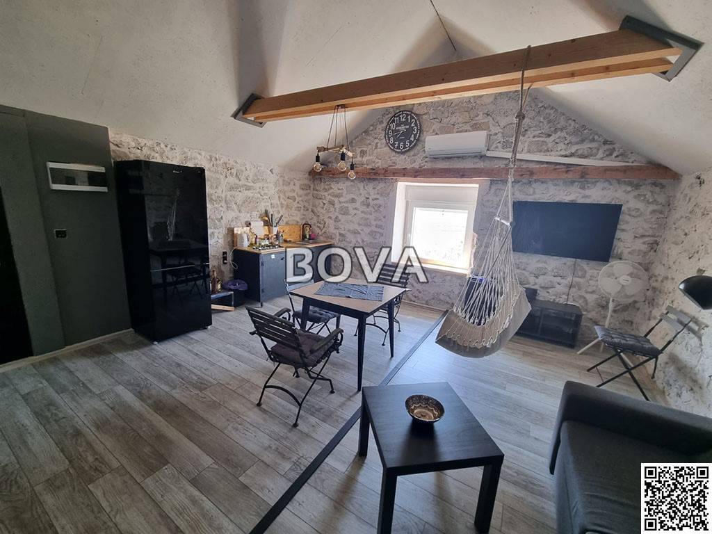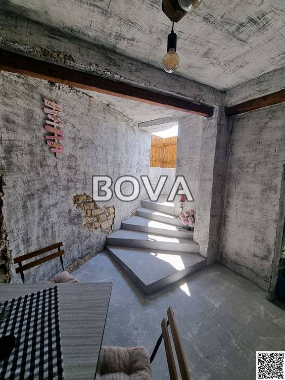 Potpuno renovirana kamena kuća katnica (100m2) stara oko 140 godina središte je starog mjesta na glavnoj ulici.