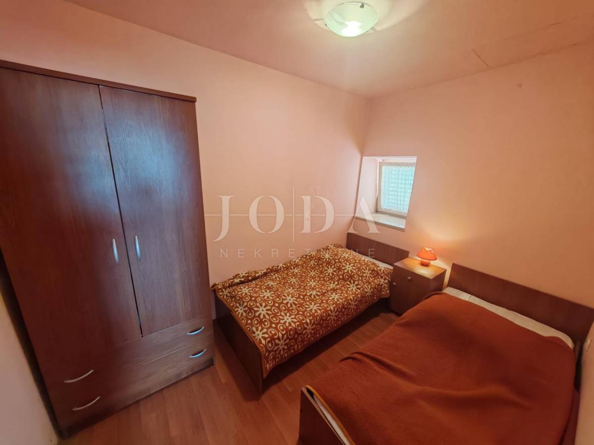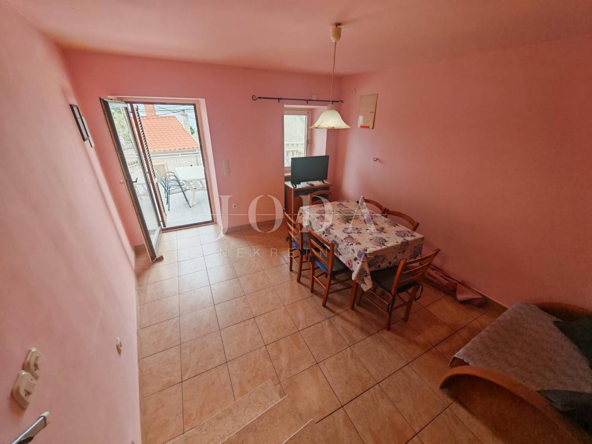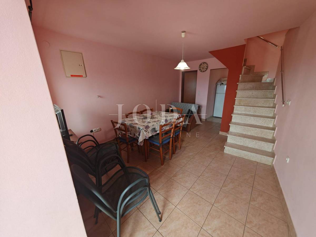 - dvoetažni stan na katu se sastoji od dnevnog boravka s izlazom na prostranu terasu, kuhinje, kupaonice te dvije spavaće sobe na zanjem katu od kojih jedna uma izlaz na balkon sa prekrasnim pogledom na more.