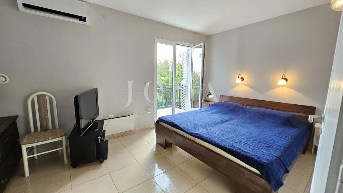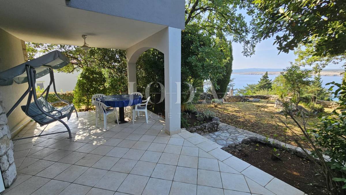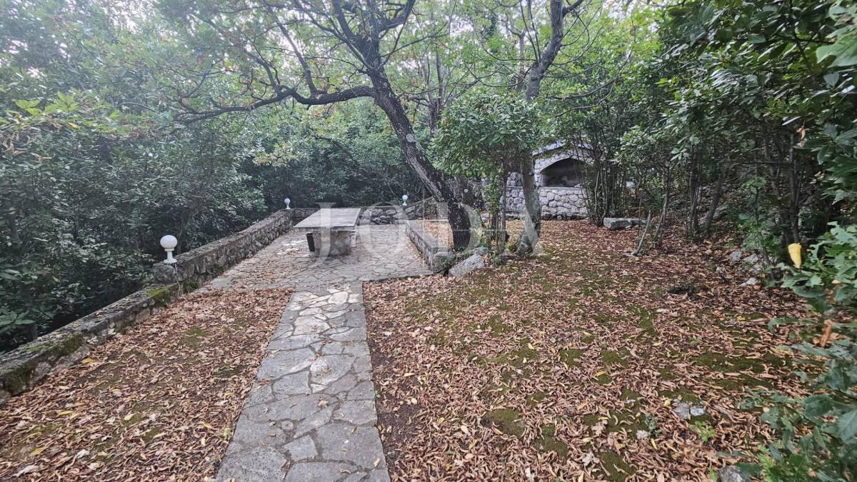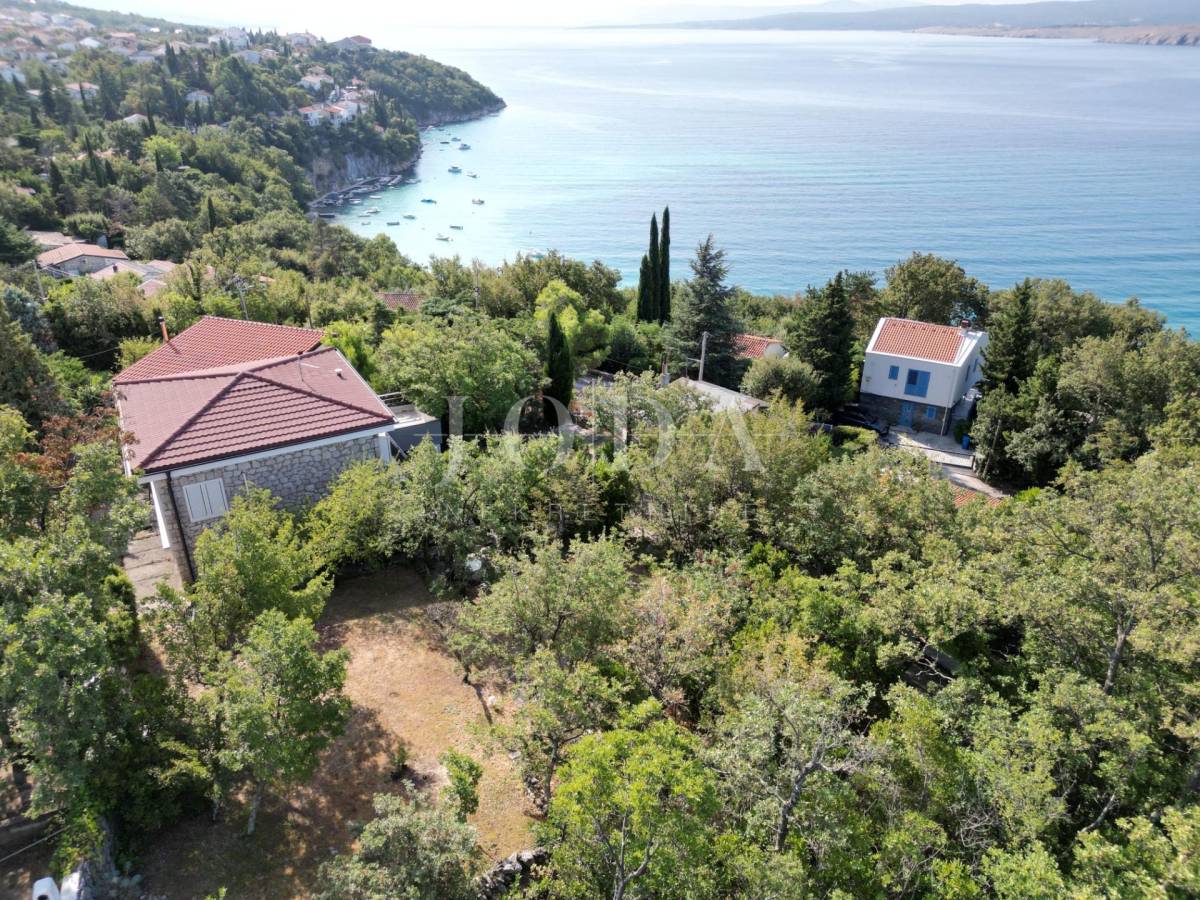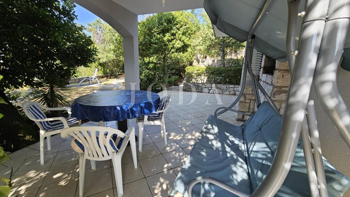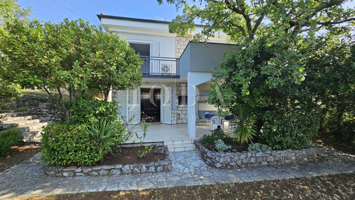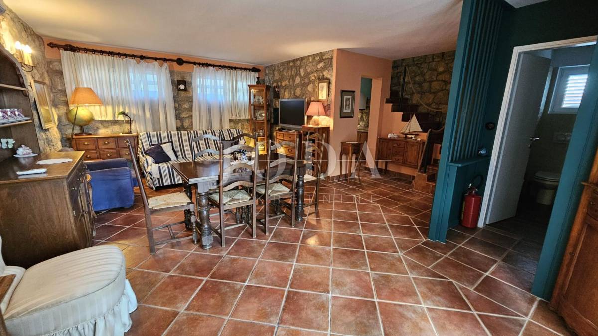 Kuća se sastoji od kuhinje, kupaonice, dnevnog boravka i blagovaonice (s izlazom na terasu i s pogledom na more) u prizemlju a na katu su smještene kupaonica, dvije veće spavaće sobe i jedna dječja soba. Iz prizemlja s izlazi na natkrivenu terasu a iz glavne spavače sobe na katu se izlazi na veliku terasu sa prekrasnim pogledom na Kvarner. Iza kuće se nalazi i spremište od 8m2 a ispod nje garaža (sa strujom i vodom) ispred koje stane još jedan automobil. Na prekrasno uređenoj okućnici koja nudi savršenu intimu i iznimno puno hlada smjestio se i veliki kameni roštilj s kamenim stolom za druženje.