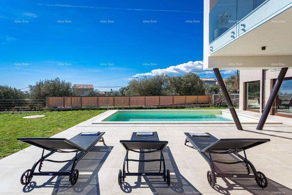 Kuća se sastoji od open space prostora u prizemlju sa kuhinjom, blagovaonom, spavaca soba sa kupatilom, toaletom i dnevnim boravkom iz kog se izlazi na natkrivenu terasu sa roštiljem i vrt sa bazenom.