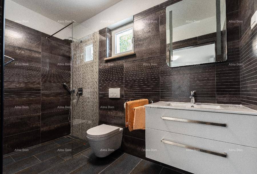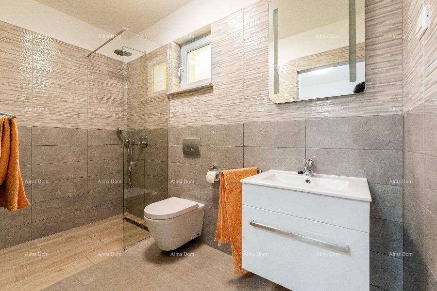 Površina kuće je 160m2, a sastoji se od 4 spavaće sobe, od kojih tri imaju vlastitu kupaonicu; zasebne kupaonice , toaleta, te dnevnog boravka sa kuhinjom i blagovaonom.