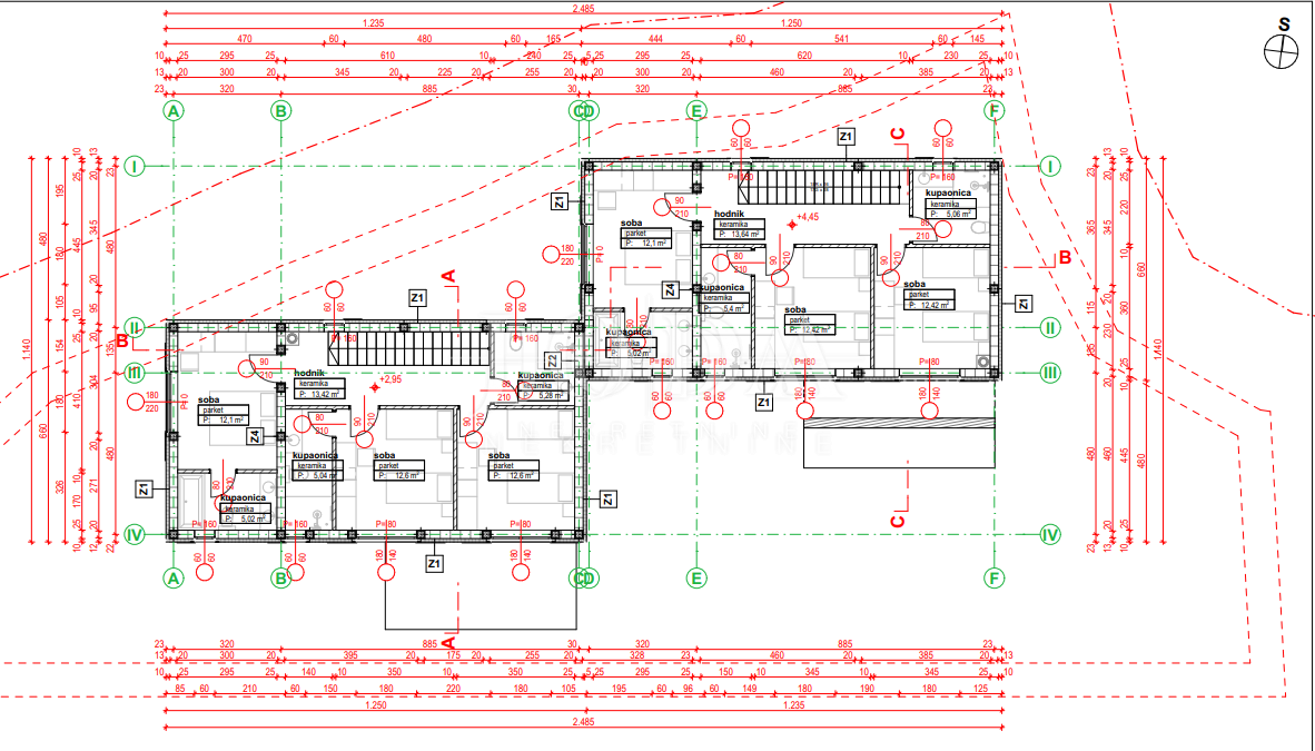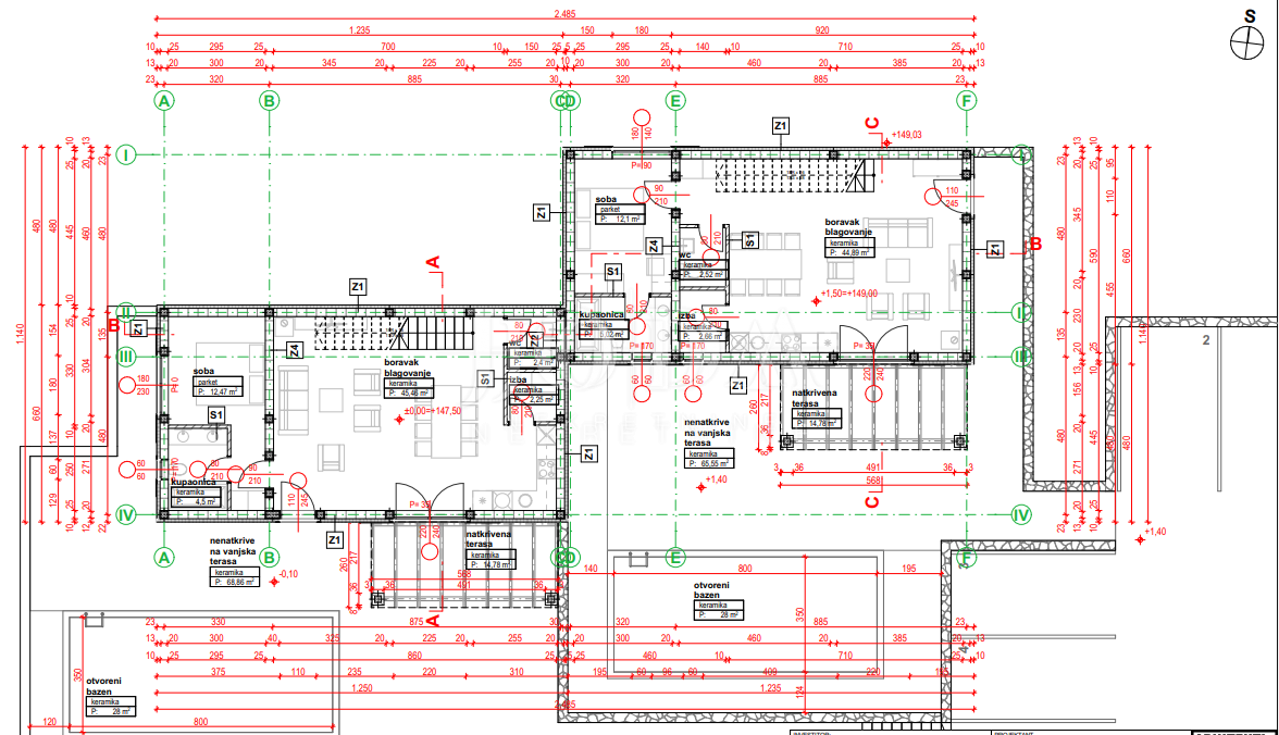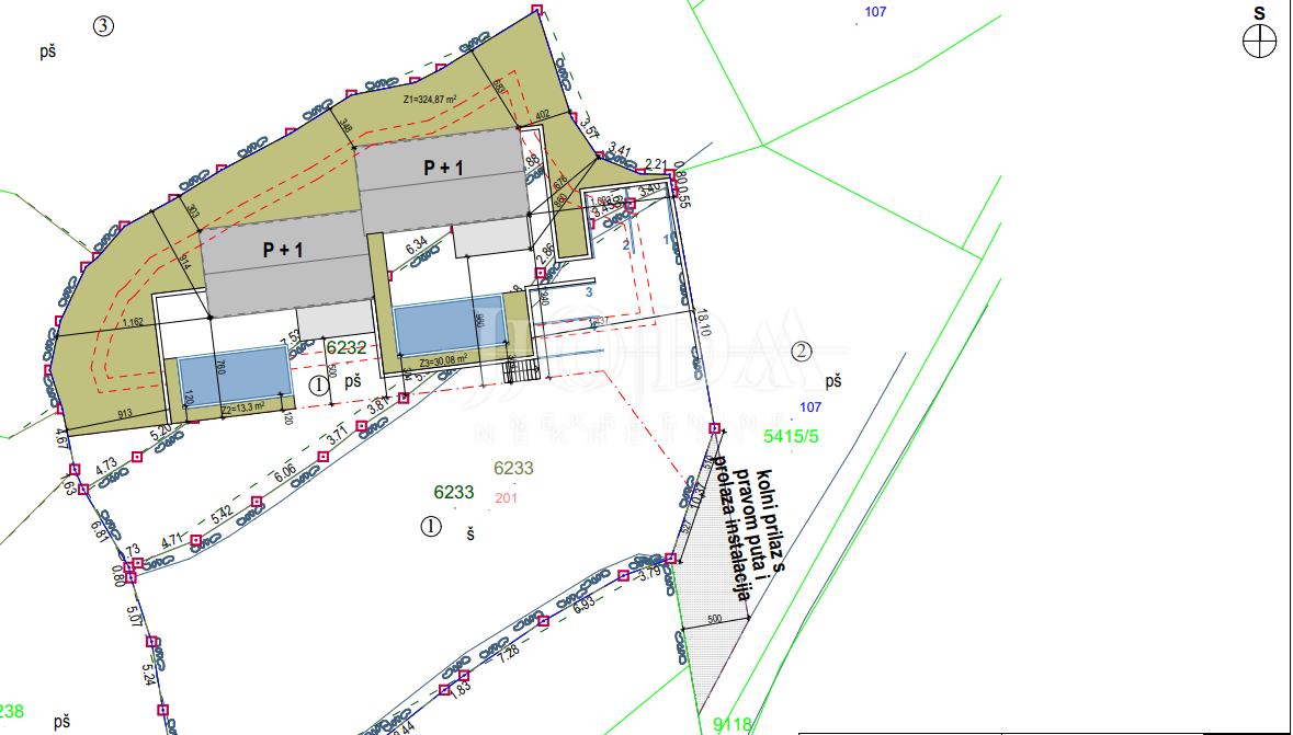 Na većem zemljištu formirana su gradilišta za 5 objekata svaki sa okućnicom i bazenom.