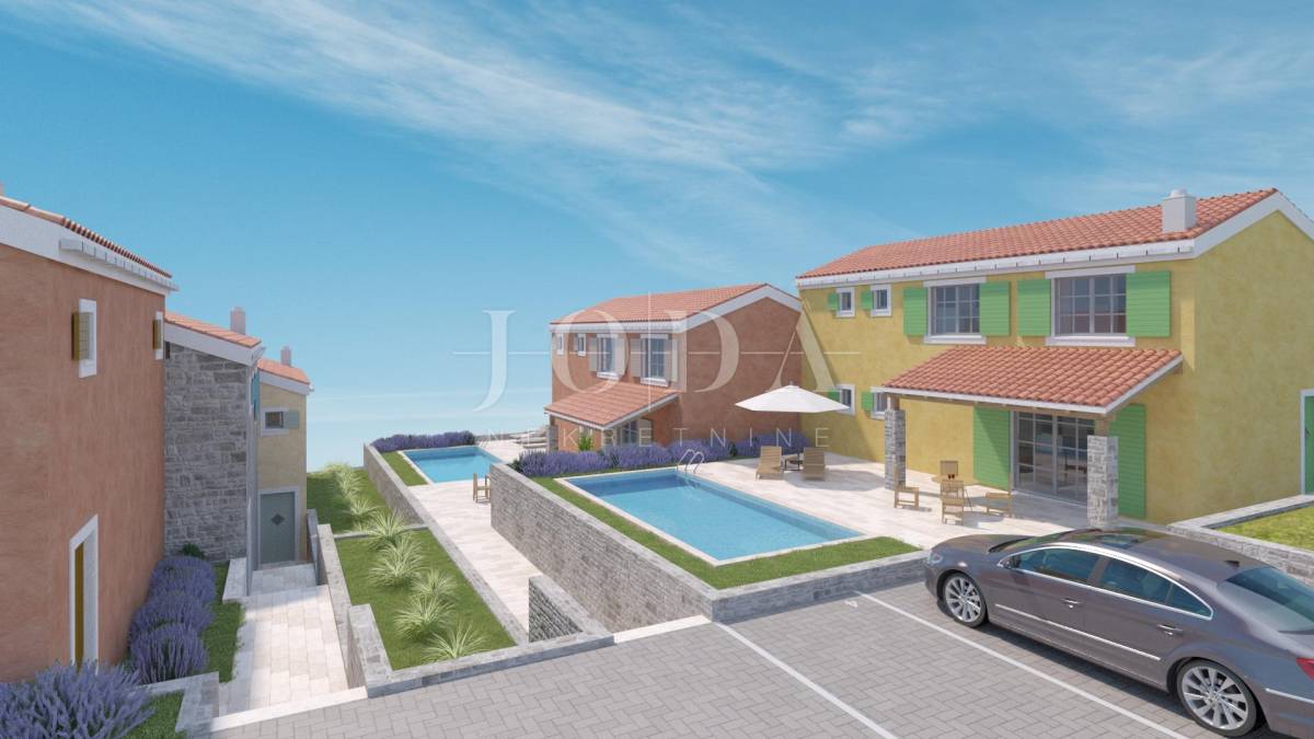 Kuće su katnice u naravi dvoetažni stanovi gdje je u prizemlju smješten dnevni dio sa kuhinbjom i blagavaonicom te sve zajedno interpolirano u vanjski prostor.Na katu su tri spavaće sobe i dvije kupaonice.