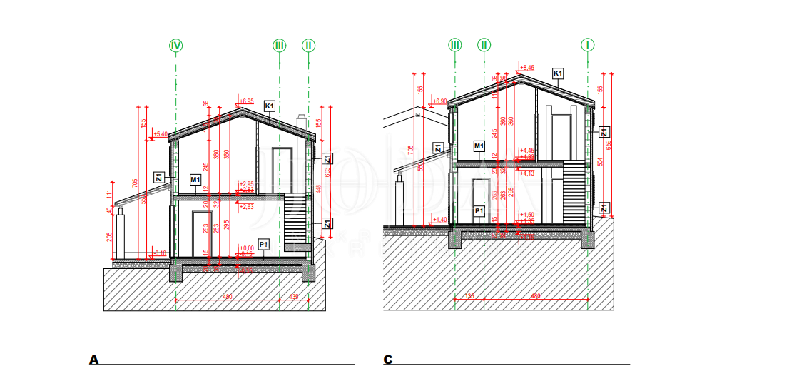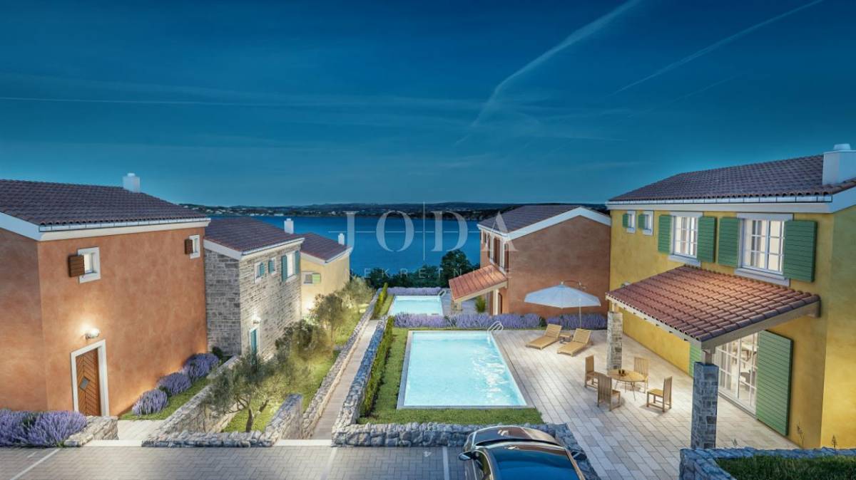 Kuće su katnice u naravi dvoetažni stanovi gdje je u prizemlju smješten dnevni dio sa kuhinbjom i blagavaonicom te sve zajedno interpolirano u vanjski prostor.Na katu su tri spavaće sobe i dvije kupaonice.