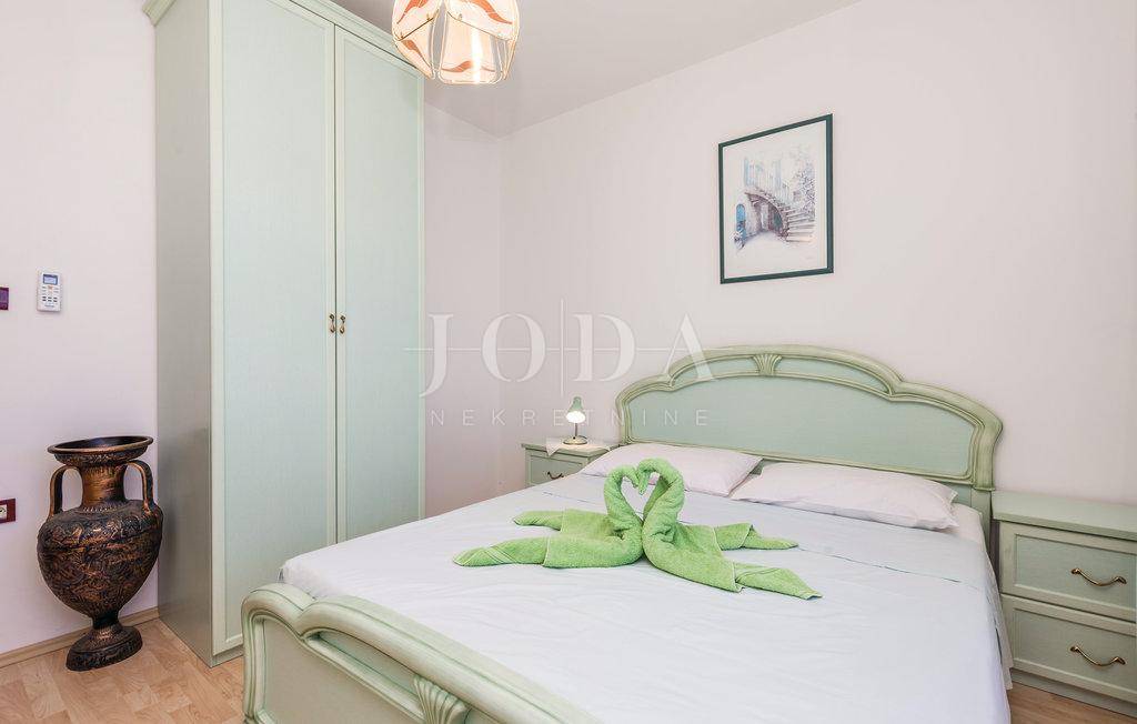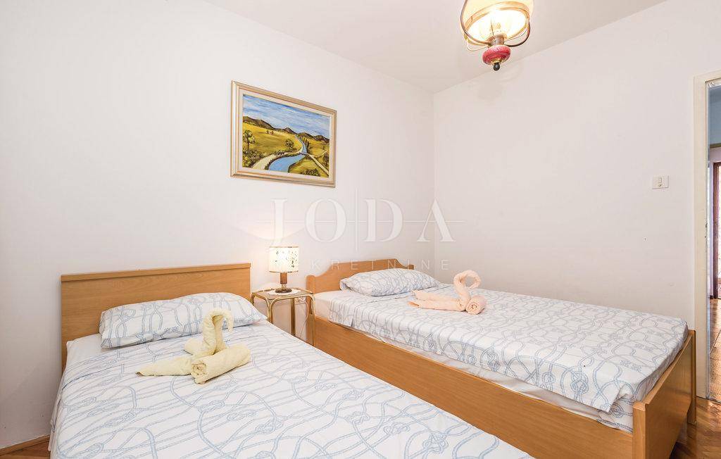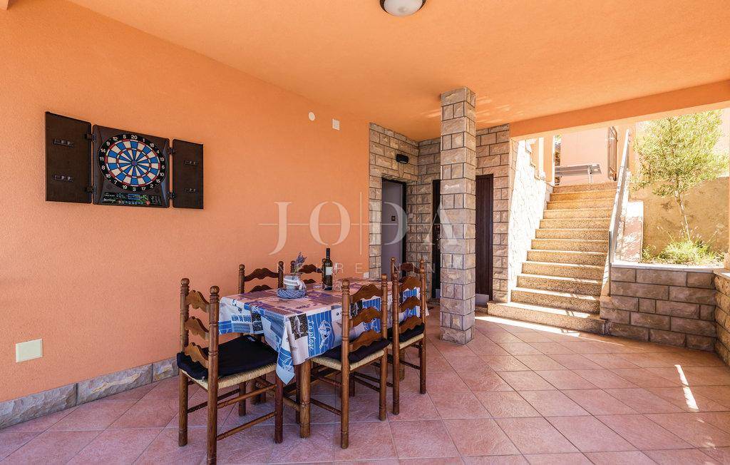 Sama kuća se sastoji od 5 spavaćih soba,dvije kupaonice te dnevnog boravka,(ali pravi dnevni boravak je ispred kuće),pa je idealna obiteljska kuća.