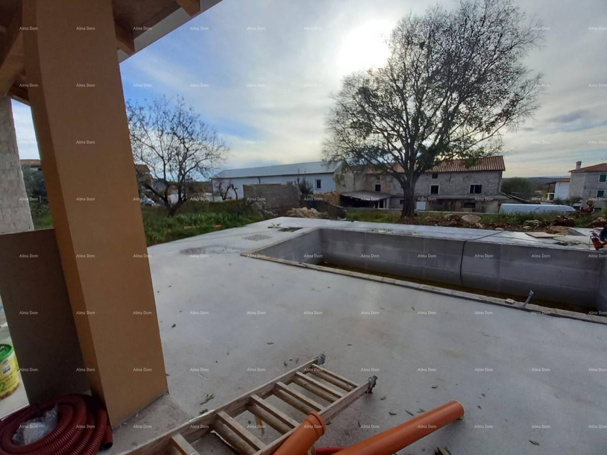 Na prodaju je lijepa nova kuća s bazenom, smještena u mirnom dijelu Kaštelira, s otvorenim pogledom prema moru.
