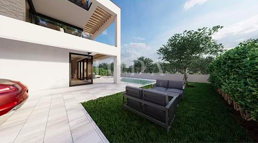 Dvojna kuća sa bazenom u izgradnji na mirnoj lokaciji u blizini Malinske. Kuća površine 120 m2 sastoji se od prizemlja i kata. U prizemlju su smješteni dnevni boravak, kuhinja sa blagovaonom, spavaća soba i kupaonica. Iz kuhinje i dnevnog boravka izlazi se na terasu i sunčalište i pruža se pogled na prirodu. Na prvom katu su 2 spavaće sobe od kojih jedna sa vlastitom kupaonicom te dodatno toalet. Na okućnici od cca. 200 m2 nalazi se sunčalište sa bazenom, roštilj i 3 parkirna mjesta. Do centra Malinske i predivnih plaža ima svega 2 km. Kuća se oprema kvalitetnom opremom, a u ovoj fazi gradnje potencijalni kupac može birati materijale i opremu po vlastitom izboru.