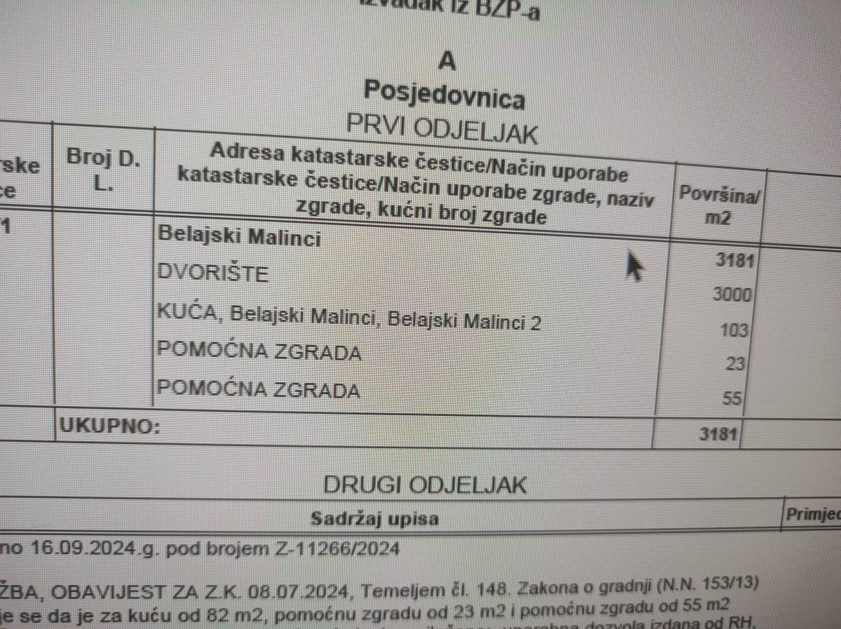Pored toga upisane 2 pomoćne zgrade 23 i 56 m2, drvena gradnja.