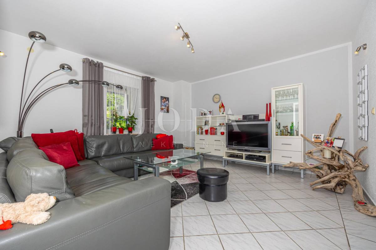 U suteren se se može ući i iz prostrane garaže od 35m2 a sastoji od kuhinje s blagovaonicom, dnevnog boravka, dvije spavaće sobe, hodnika, kupaonice te spremišta s ostavom i praonicom rublja s vešerajem.