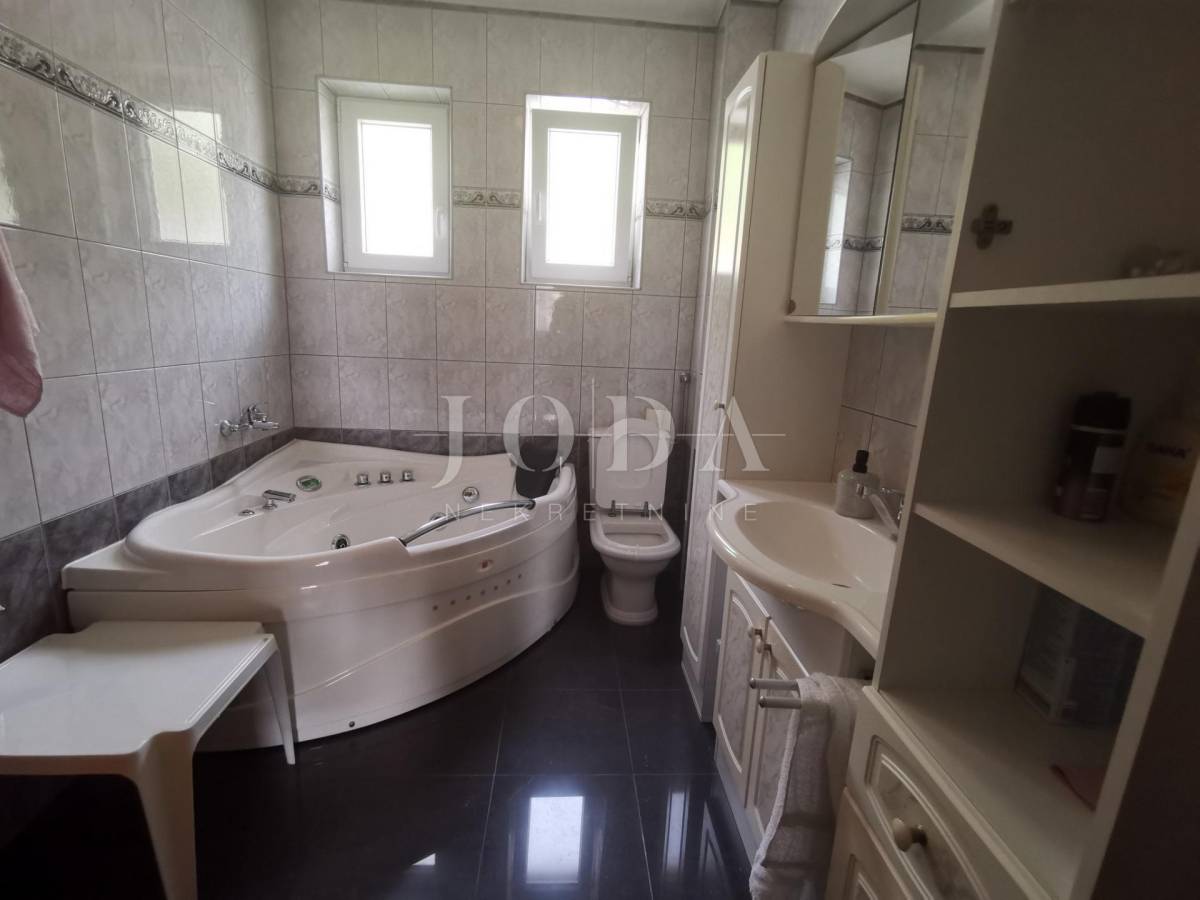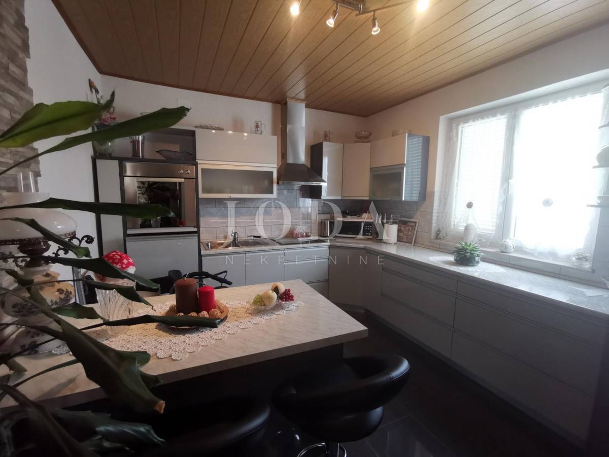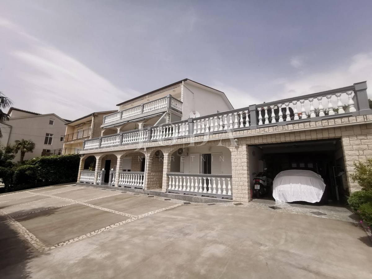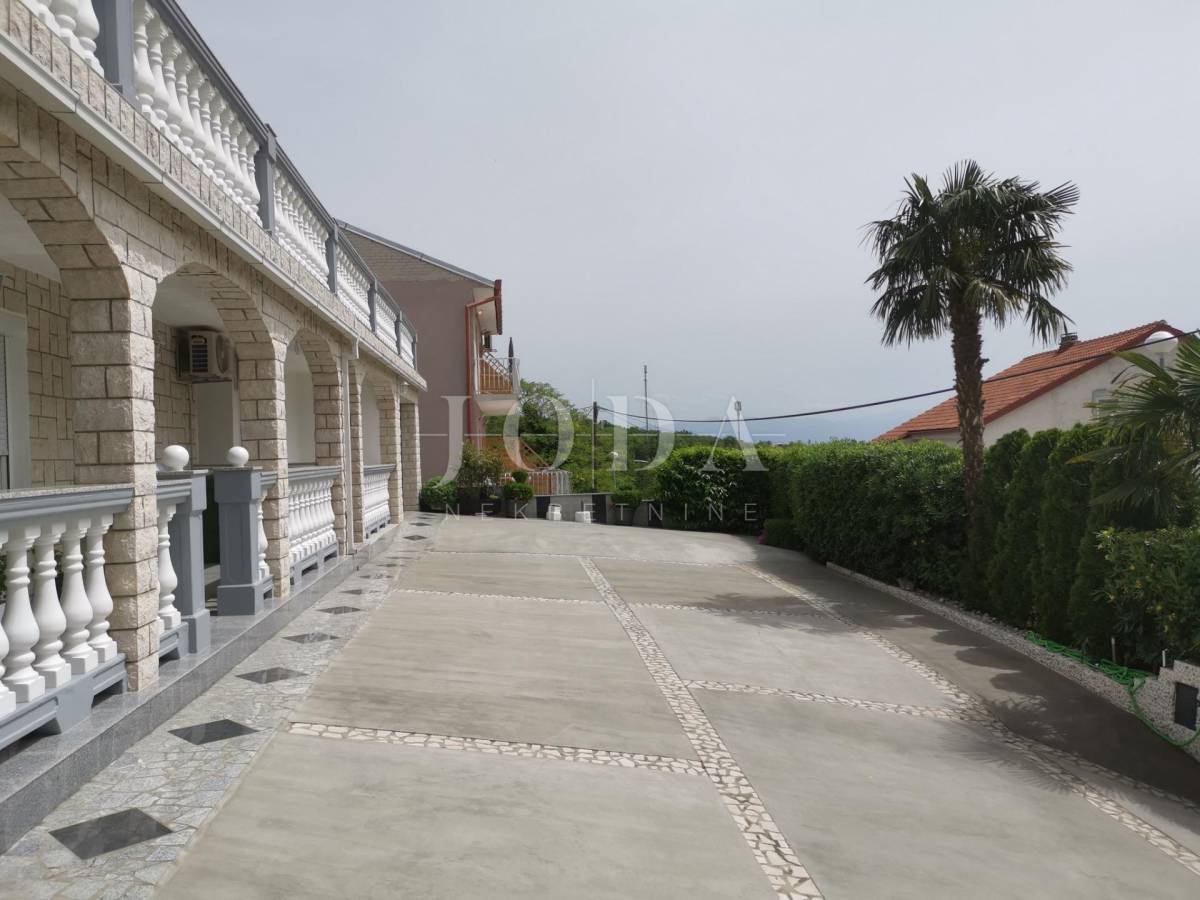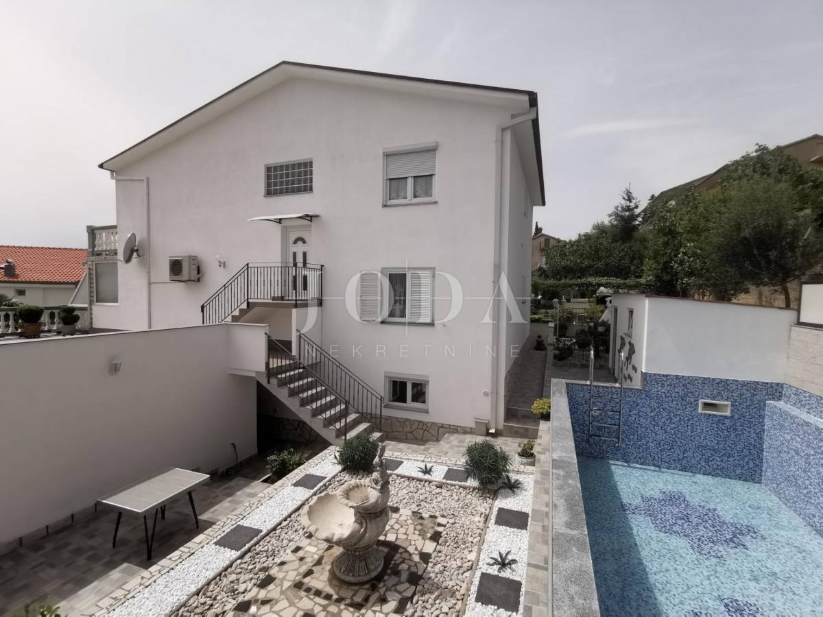 Unutar potpuno uređene okućnice smještena su dva povezana objekta. U prizemlju su 4 jednosobna stana sa balkonima i velika garaže te prostrani parking. Na prvom i drugom katu su trosobni stanovi sa velikim terasama. Iza kuće je prostor za druženje sa bazenom i sunčalištem. Kuća je u funkciji turizma.