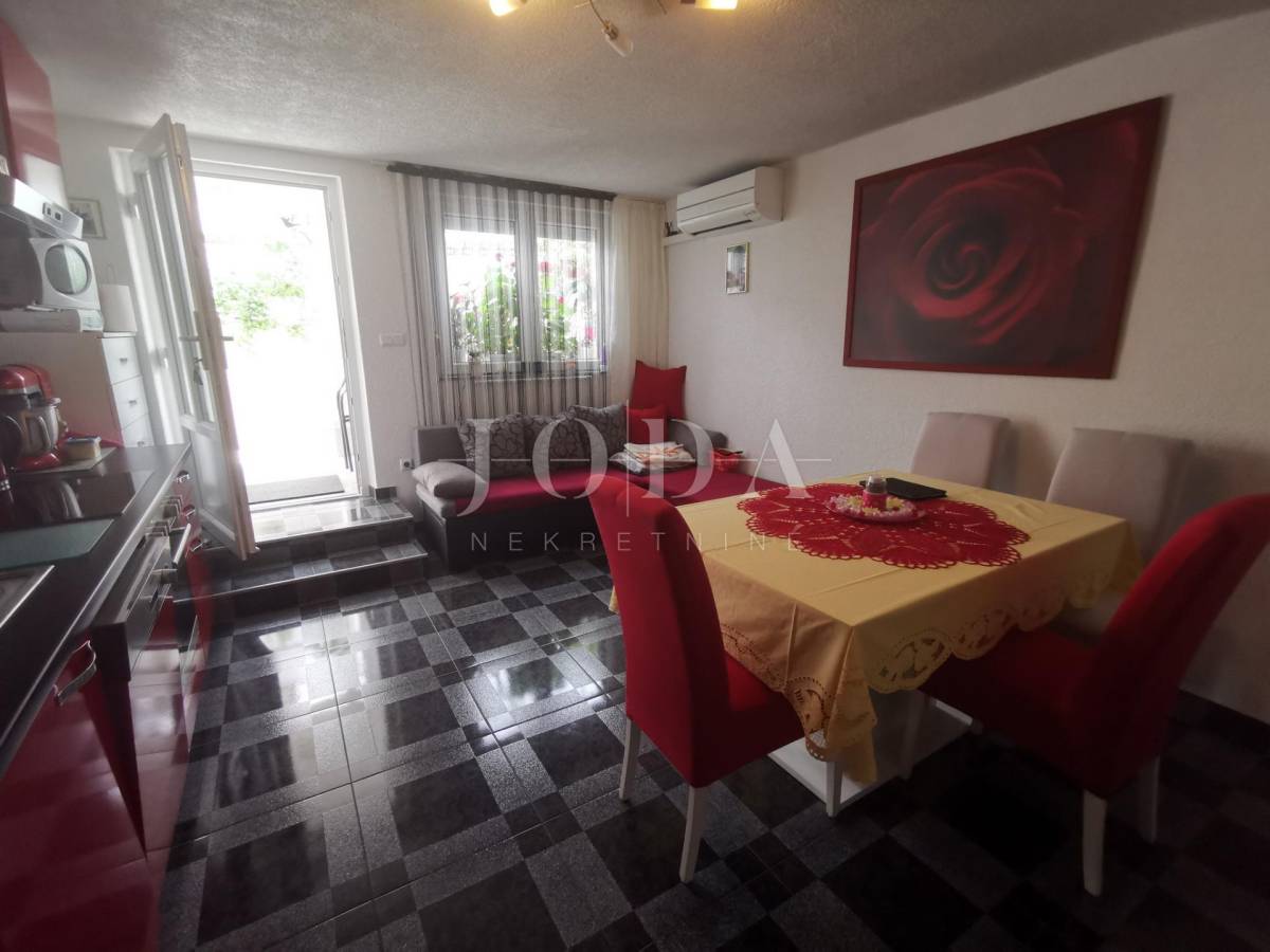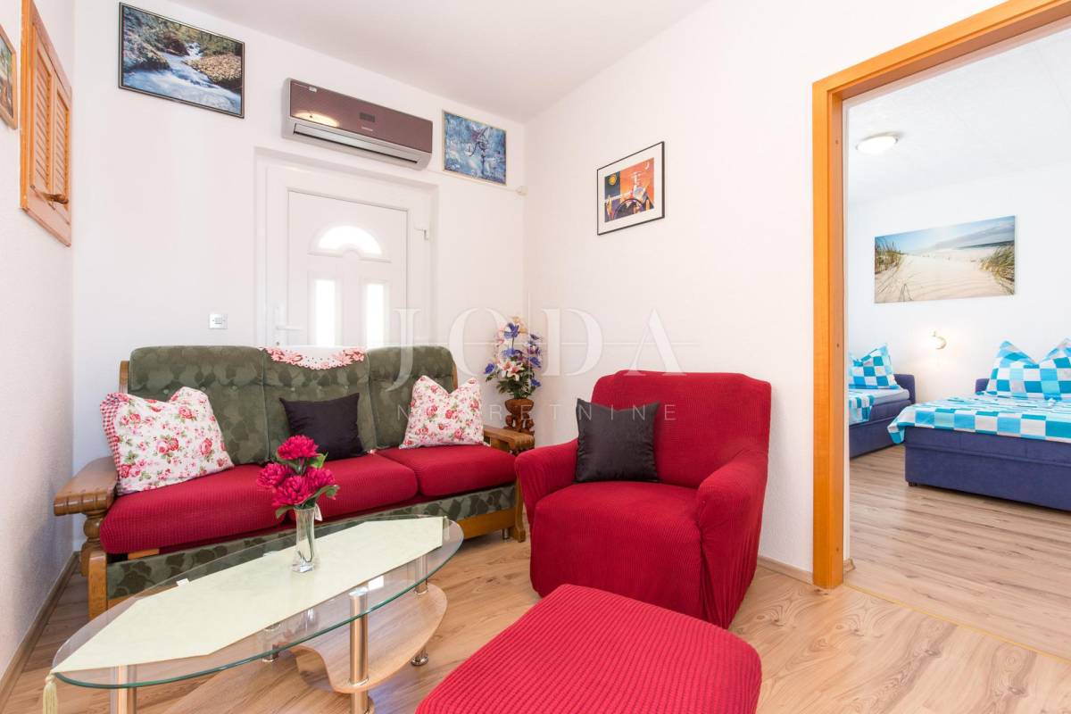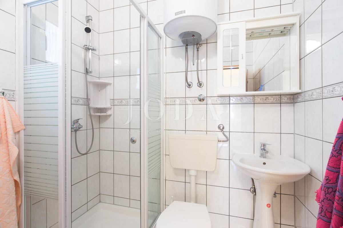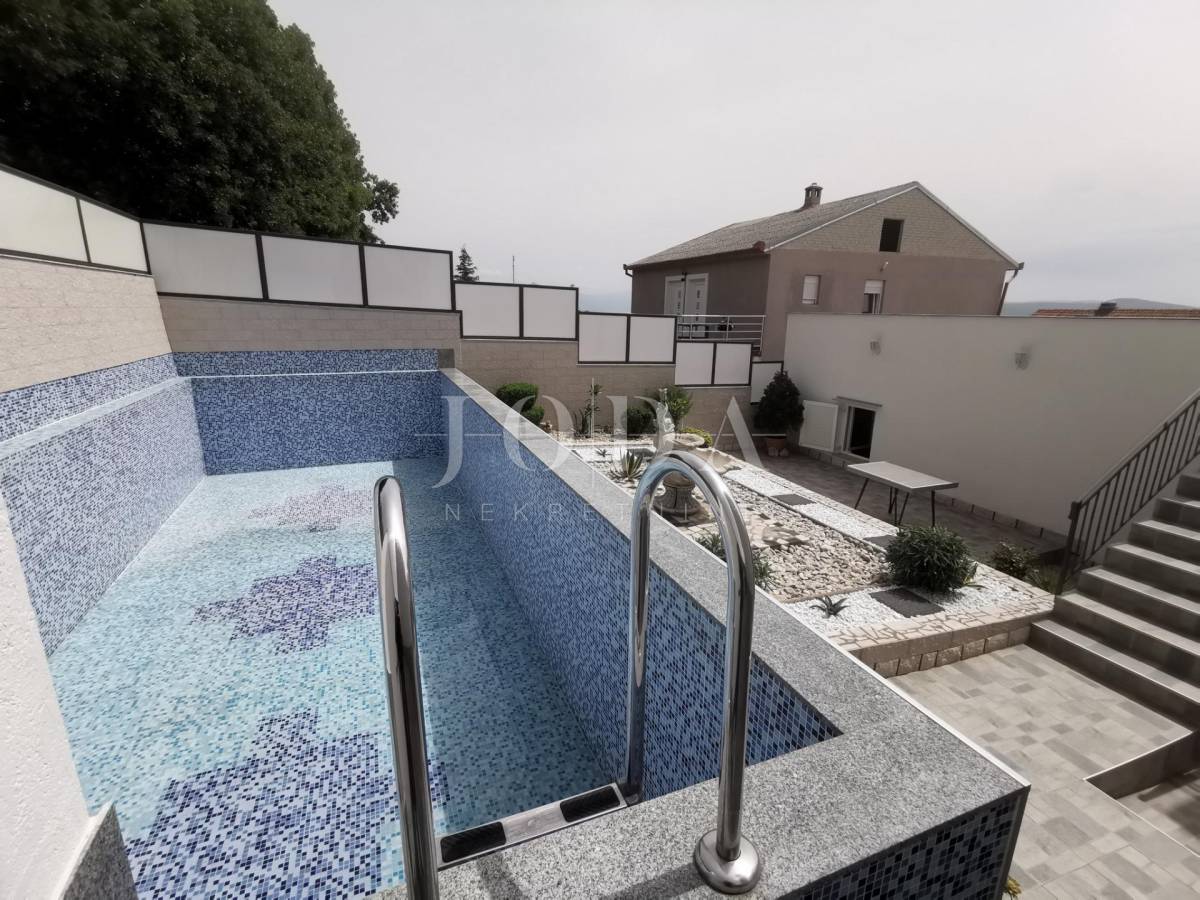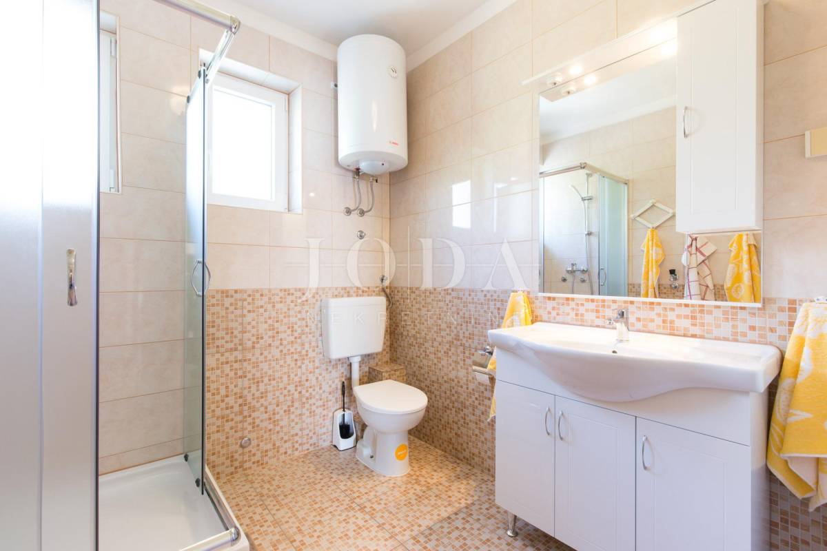 Unutar potpuno uređene okućnice smještena su dva povezana objekta. U prizemlju su 4 jednosobna stana sa balkonima i velika garaže te prostrani parking. Na prvom i drugom katu su trosobni stanovi sa velikim terasama. Iza kuće je prostor za druženje sa bazenom i sunčalištem. Kuća je u funkciji turizma.