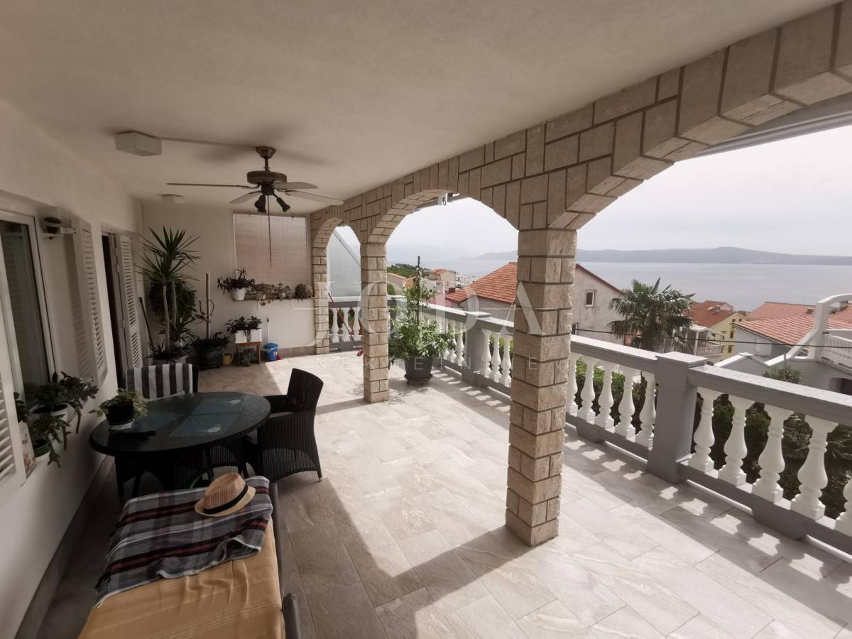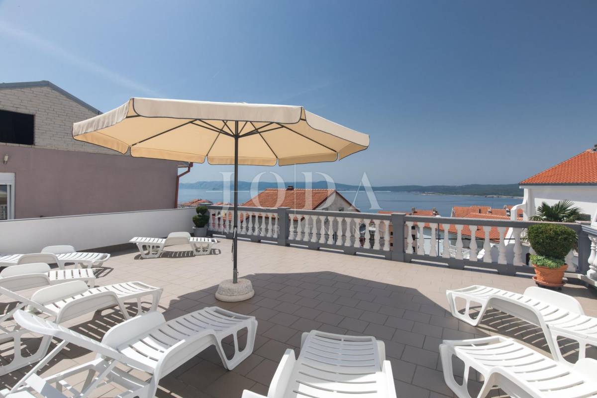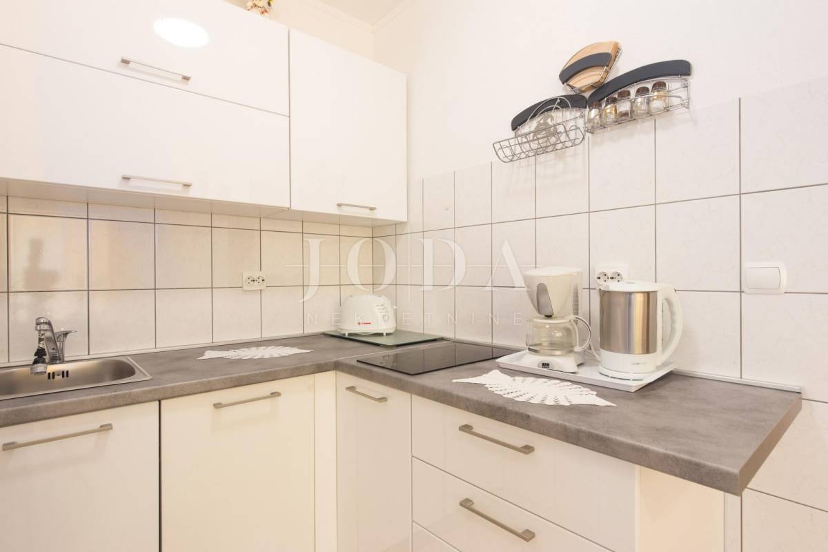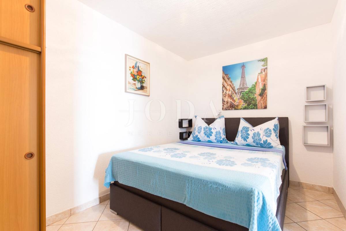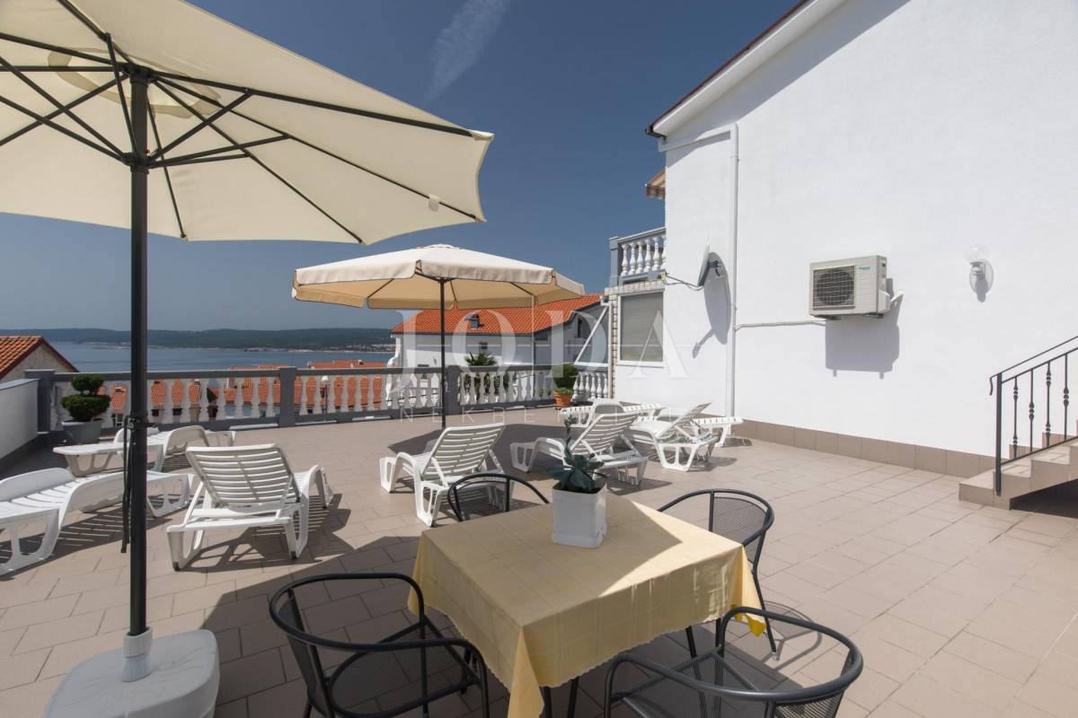 Unutar potpuno uređene okućnice smještena su dva povezana objekta. U prizemlju su 4 jednosobna stana sa balkonima i velika garaže te prostrani parking. Na prvom i drugom katu su trosobni stanovi sa velikim terasama. Iza kuće je prostor za druženje sa bazenom i sunčalištem. Kuća je u funkciji turizma.