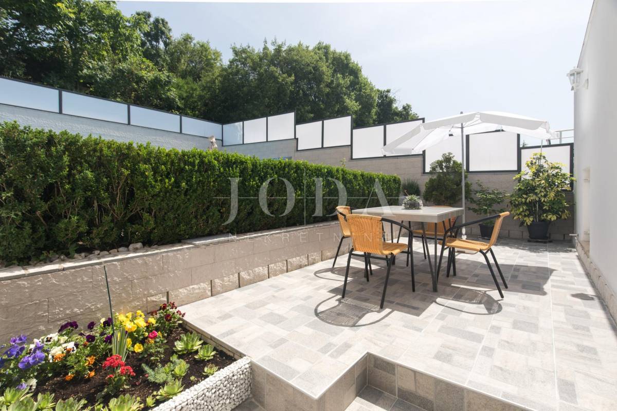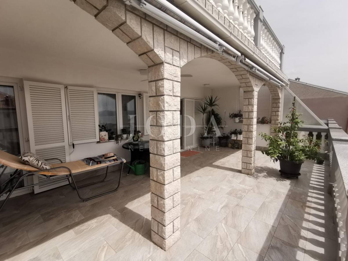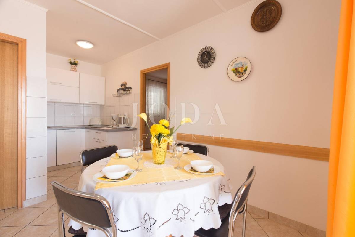 Unutar potpuno uređene okućnice smještena su dva povezana objekta. U prizemlju su 4 jednosobna stana sa balkonima i velika garaže te prostrani parking. Na prvom i drugom katu su trosobni stanovi sa velikim terasama. Iza kuće je prostor za druženje sa bazenom i sunčalištem. Kuća je u funkciji turizma.