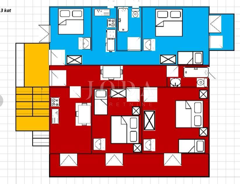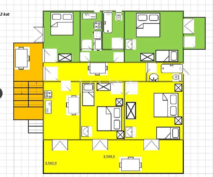 Na atraktivnoj lokaciji u Novalji, svega nekoliko minuta hoda od mora, prodaje se prostrana samostojeća kuća ukupne površine 400 m² s uređenom okućnicom od 470 m². Nekretnina se sastoji od 7 apartmana raspoređenih na tri etaže, što je čini idealnom za turističko iznajmljivanje ili kombinaciju stanovanja i poslovanja.