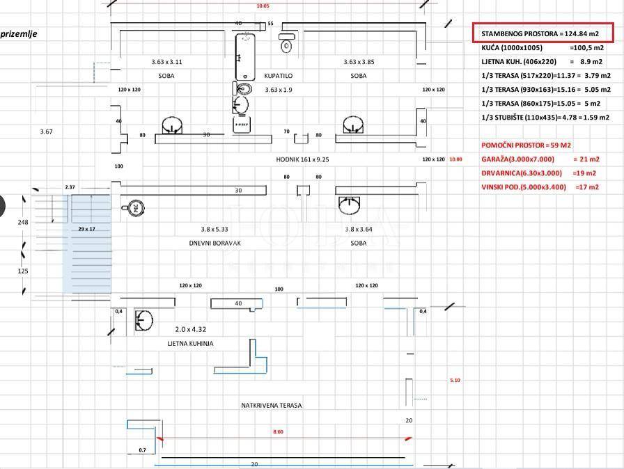 Kuća nudi ukupno 10 soba i 7 kupaonica, a prodaje se namještena i odmah useljiva. Svaki apartman je funkcionalno uređen, a prostrane terase i vrt stvaraju ugodan ambijent za odmor i druženje. Na okućnici se nalazi više parkirnih mjesta te garaža, a dodatnu vrijednost daje i konoba.