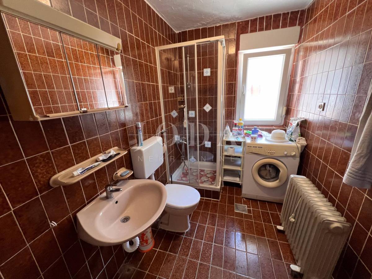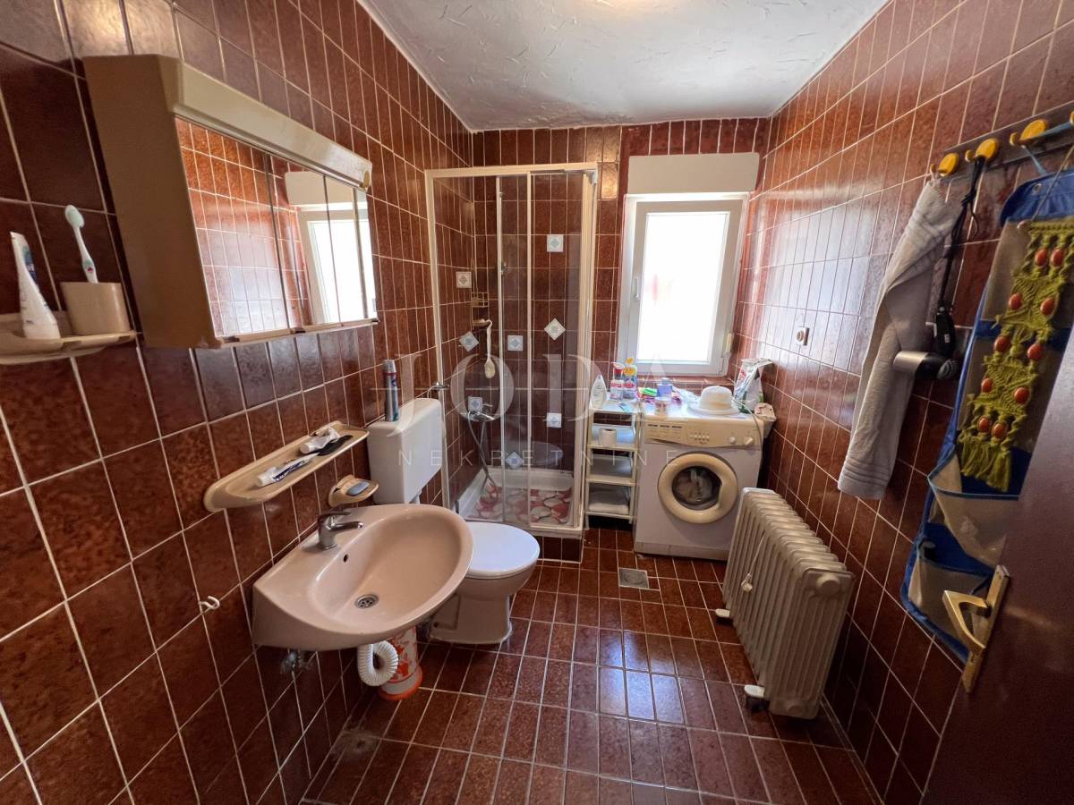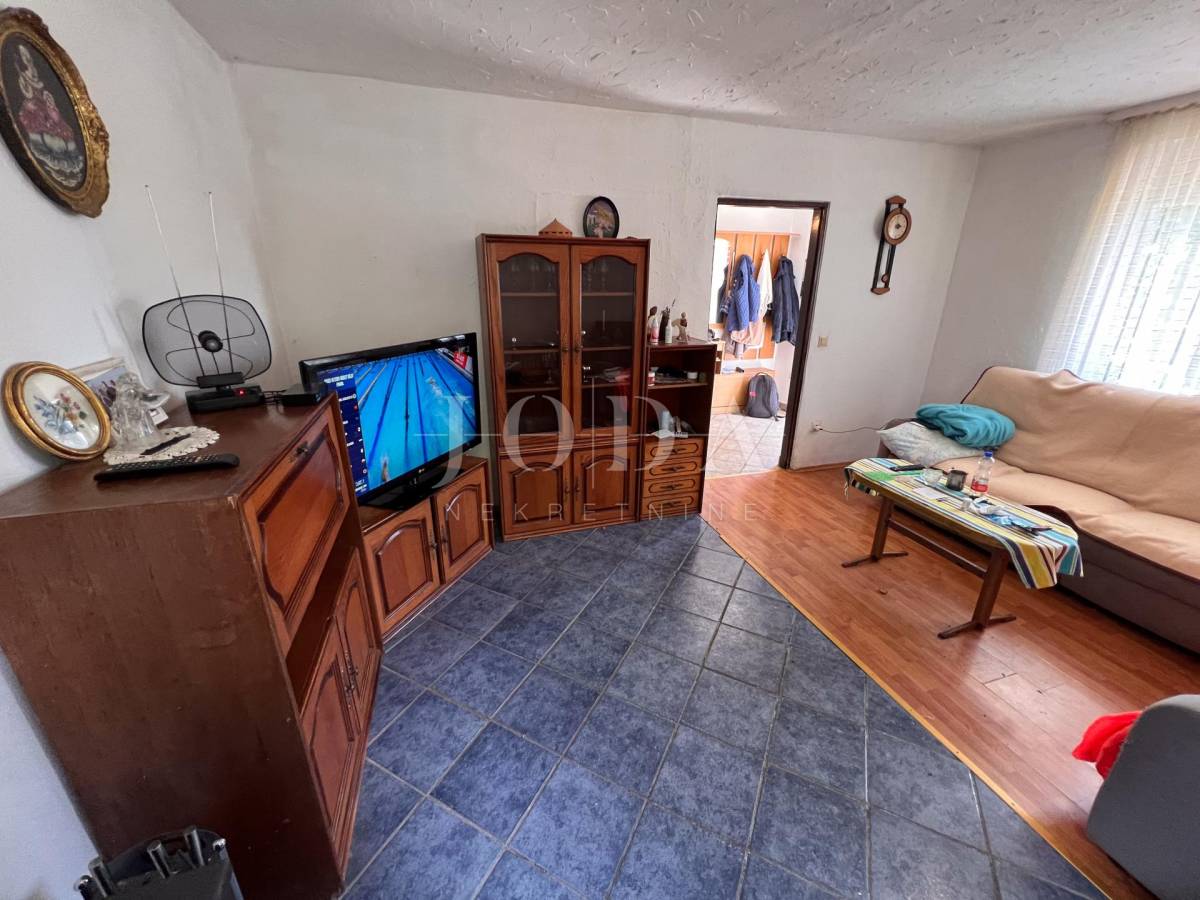 U prizemlju se nalazi stan od 90m2, te se sastoji od dvije spavaće sobe, dnevnog boravka, kuhinje sa blagavaonicom, kupaonice i hodnika iz kojeg se izlazi u okućnicu i vrt.