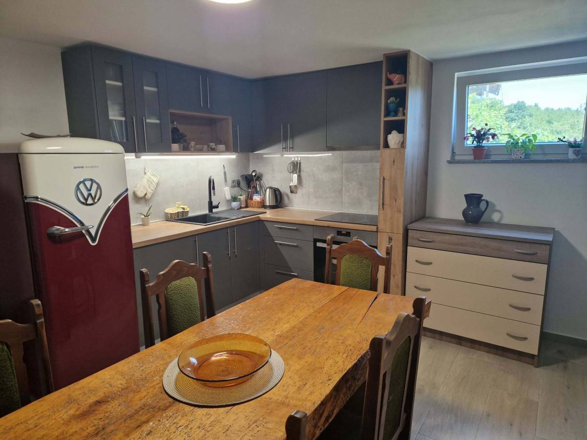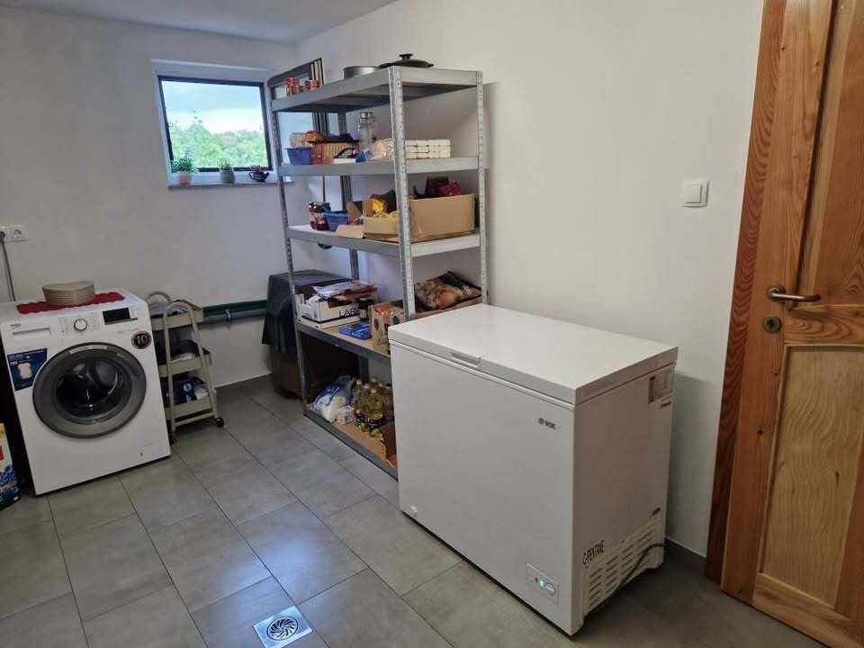 Kuća ima struju i vodu, grijanje na drva i struju, te je potpuno namještena i spremna za korištenje odmah. Gornji kat sastoji se od dvije sobe i kupaonice, dok se u prizemlju nalaze kuhinja, podrum te izlaz na zatvorenu ljetnu terasu i vanjsku terasu za druženja i roštilj – prostor koji prirodno postaje centar boravka.