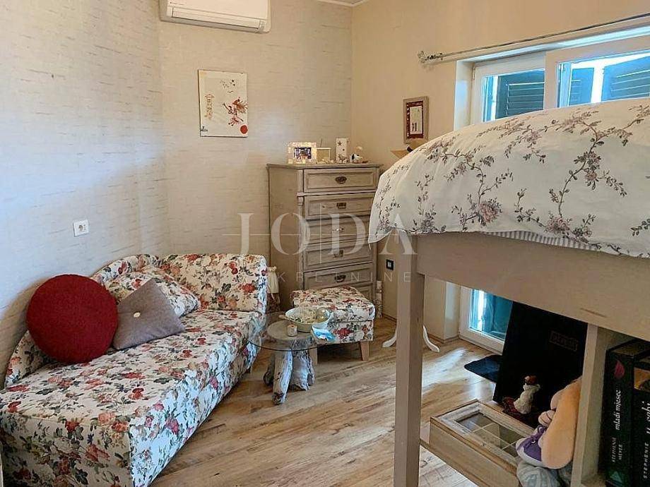 - gornja etaža (93 m2): glavna spavaća soba (kupaona, balkon i walk-in ormar), sporedna spavaća soba (balkon), gostinjska spavaća soba, velika kupaona;