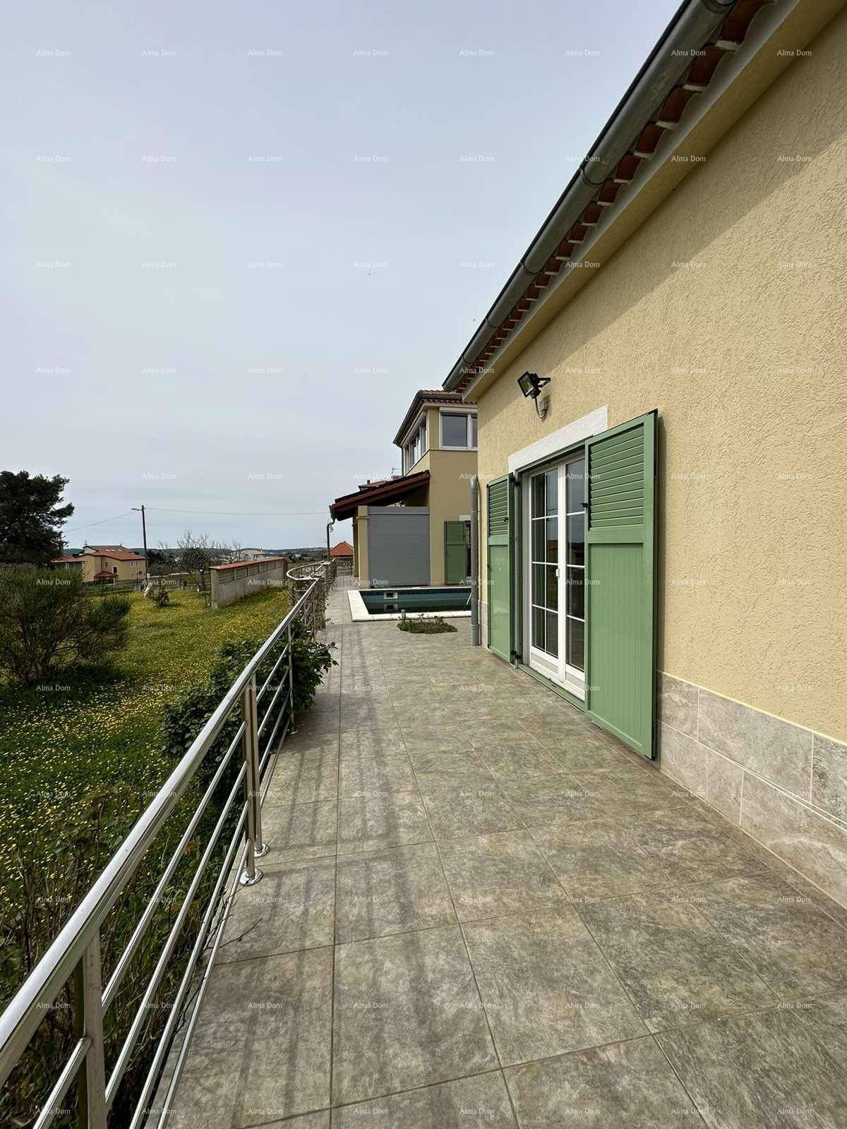 Prodaje se predivna kuća s bazenom u Medulinu na vrlo atraktivnoj i mirnoj lokaciji na prostranoj zelenoj okućnici. Kuća ima 2. spavaće sobe međutim ima dvije velike prostorije na katu kuće koje se mogu vrlo lako prenamijeniti u spavaće sobe. Kuća sadrži 3 kupatila, svaka spavaća soba ima direktan ulaz u kupatilo. Grijanje i hlađenje je predviđeno na klima uređaj iako na katu kuće postoji peć te je moguće grijanje na drva. Uz kuću dolaze i 4 popločena parking mjesta.