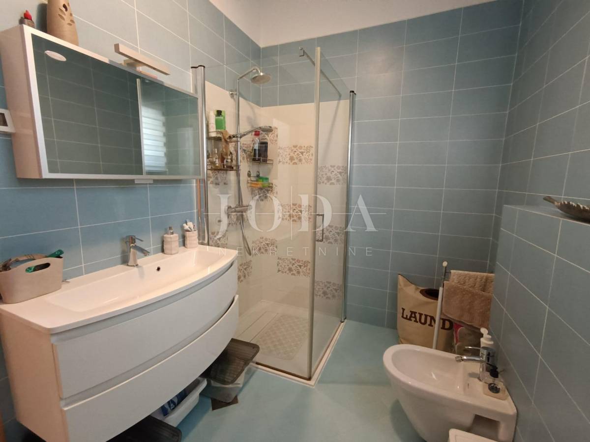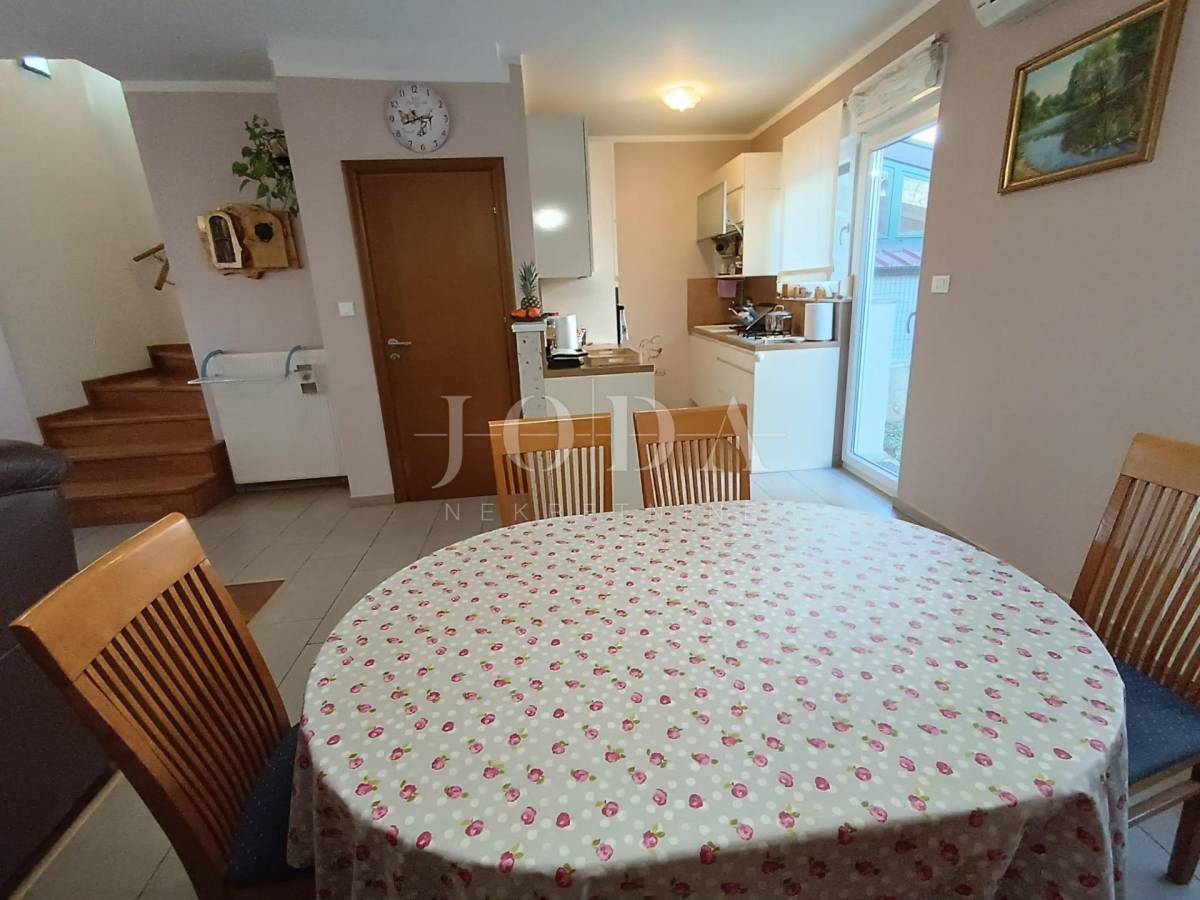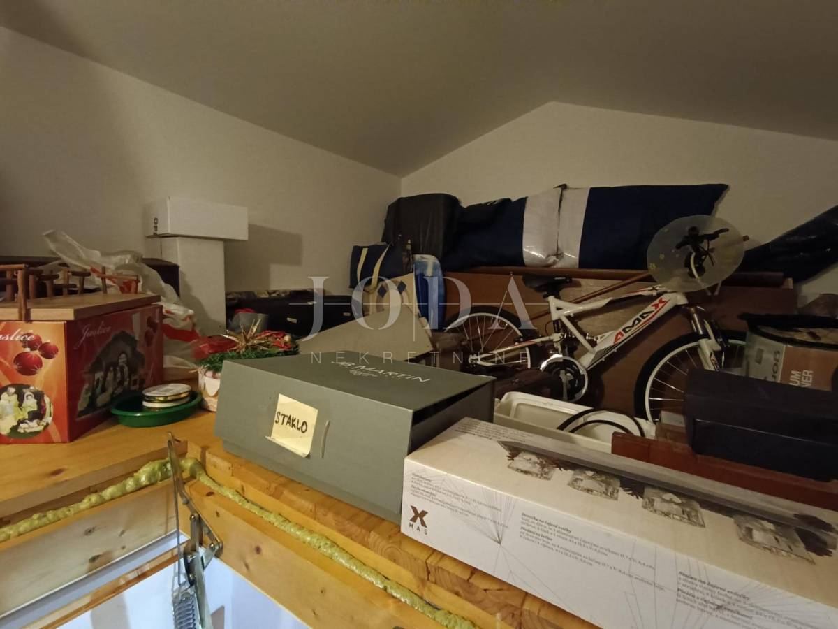 Prodajemo odličan dvoetažni stan u Kostreni blizu mora. Stan se sastoji od tri sobe i kupaone na 1. katu, te balkona sa kojega se pruža pogled na more, (iznad stana je tavan veličine 7m2), u prizemlju su garderoba, dnevni boravak i kuhinja, wc, te ostava. Stanu pripadaju 2 ograđena parkirna mjesta (priprema struje za električni auto), okućnica s prednje strane gdje se nalazi natkrivena terasa te ograđena okućnica iza objekta gdje se smjestio veliki roštilj i mjesto za druženje koje se po potrebi može kompletno zatvoriti radi veće intime (grede su već postavljene). Stan je opremljen centralnim grijanjem na plin i potpuno je klimatiziran te su režije izuzetno niske tokom čitave godine.