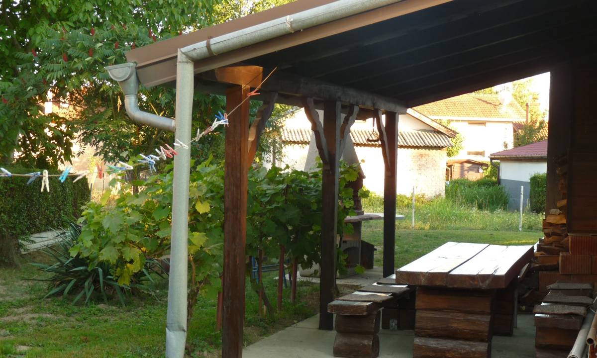 - Stražnja natkrivena terasa s roštiljem i masivnim drvenim stolom i klupama – idealno mjesto za druženje