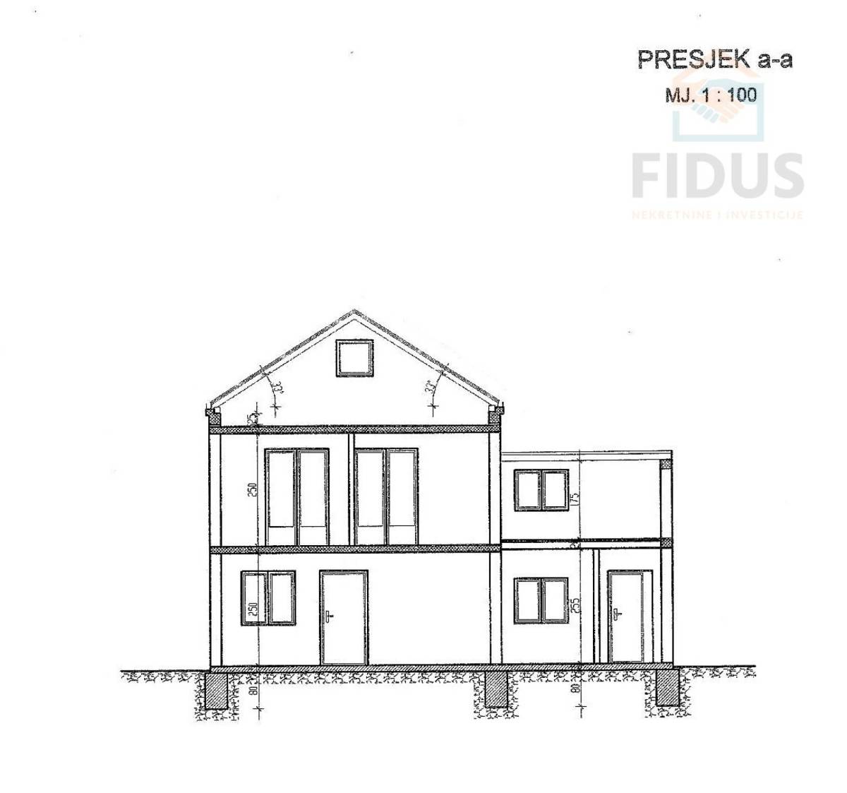 Kuća je površine cca 150 m2 i proteže se na prizemlje, kat i potkrovlje.