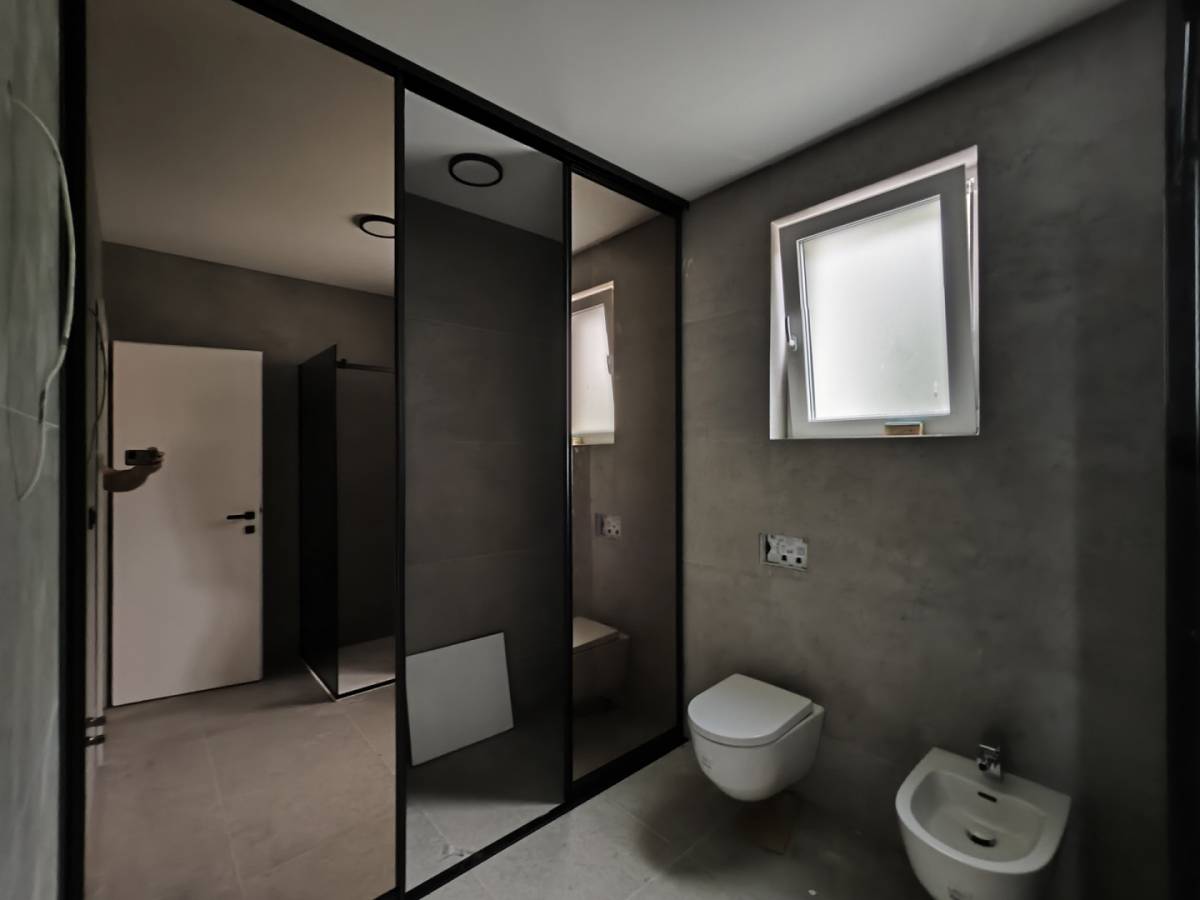 Na katu se nalaze tri udobne spavaće sobe, od kojih je svaka osmišljena kako bi pružila maksimalnu udobnost. Dvije kupaonice, opremljene modernim sanitarijama renomiranih brendova Laufen i Geberit, osiguravaju visoku razinu funkcionalnosti i estetike. Tuš kabine dizajnirane su prema najnovijim standardima kako bi pružile dodatni luksuz. Iz jedne od soba izlazi se na privatnu terasu, savršenu za jutarnji odmor ili večernje opuštanje.