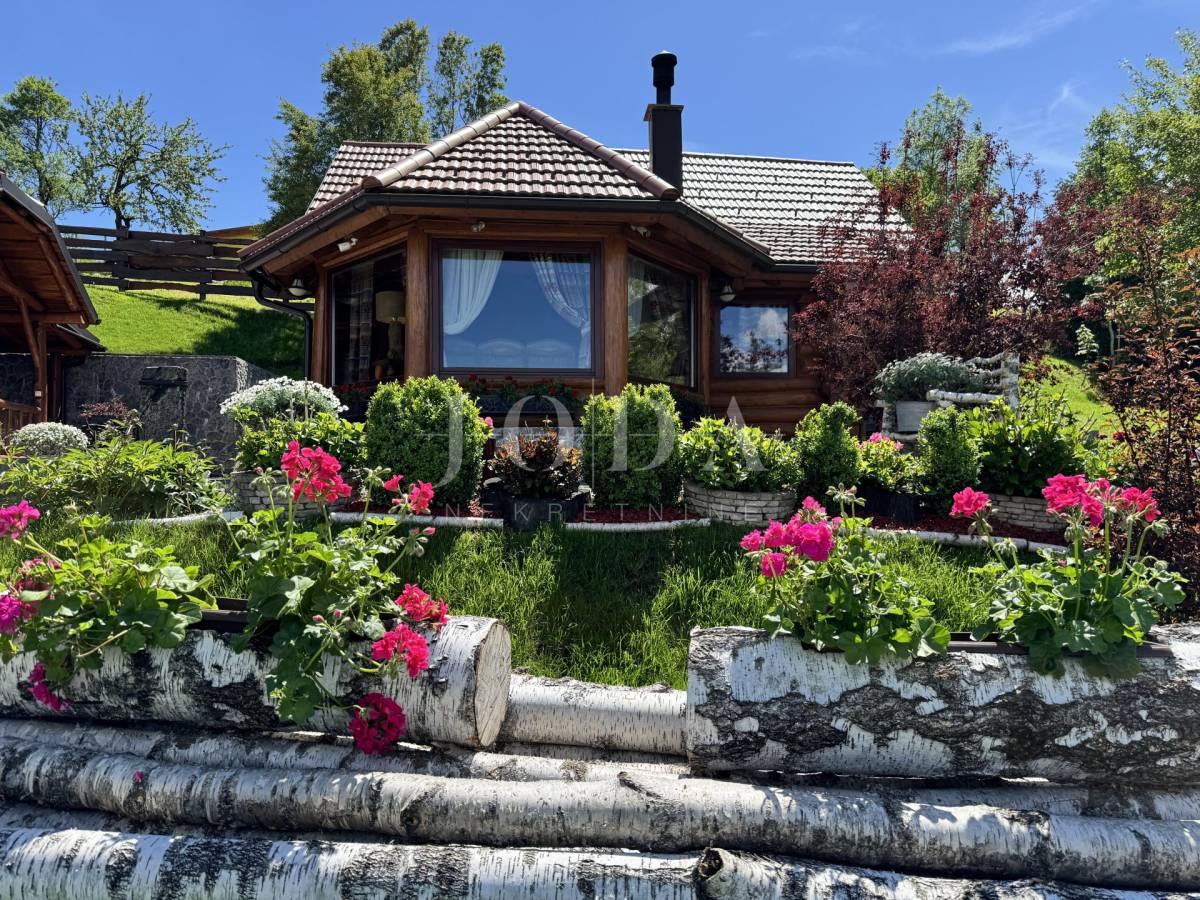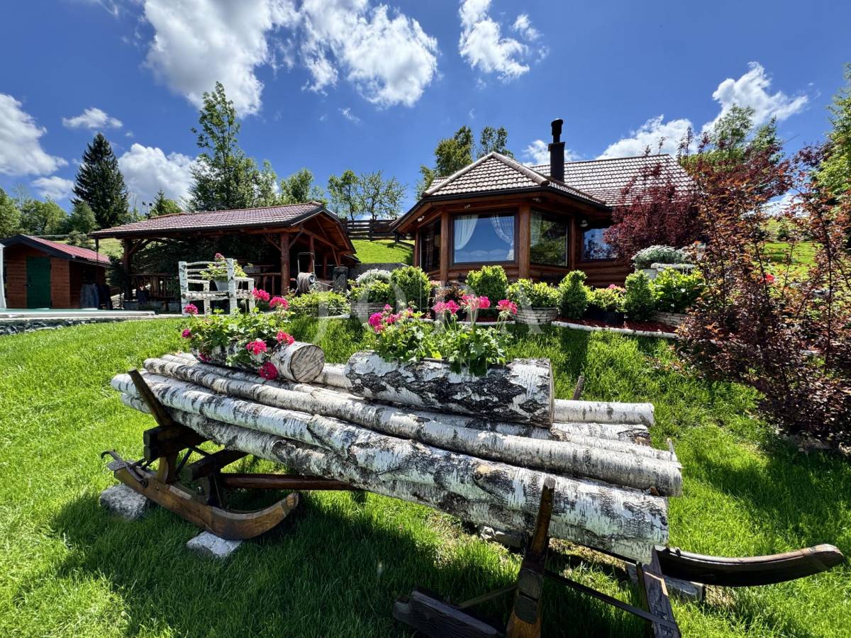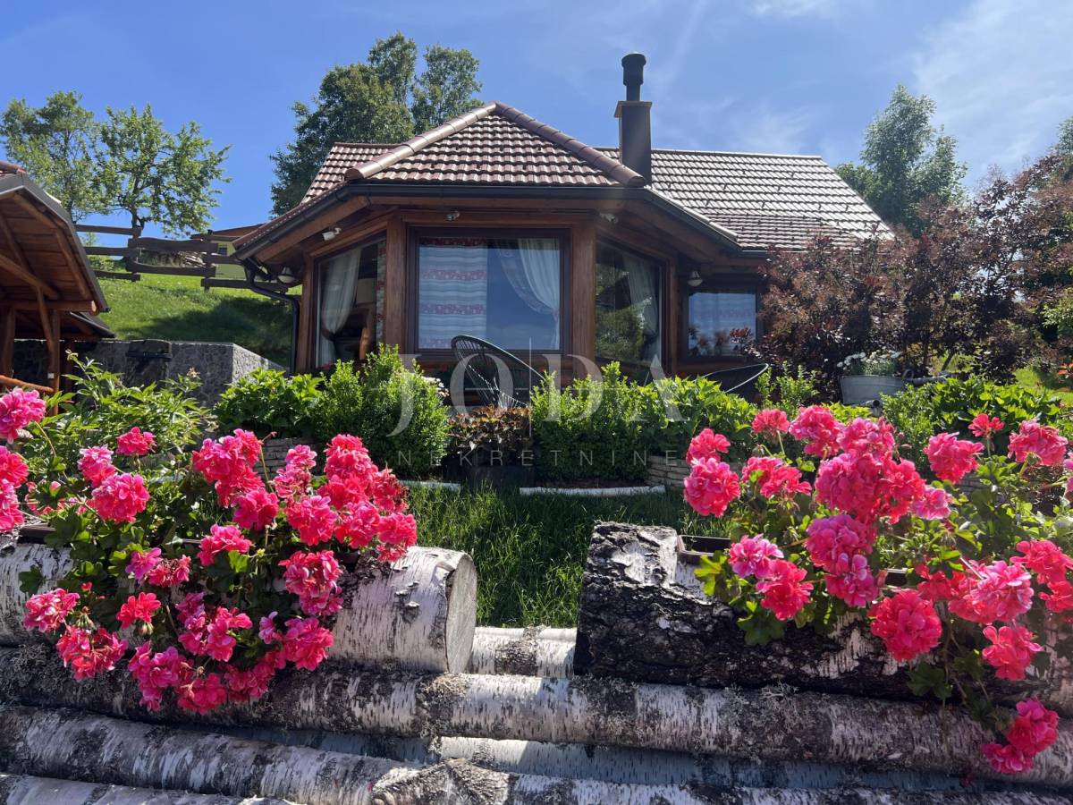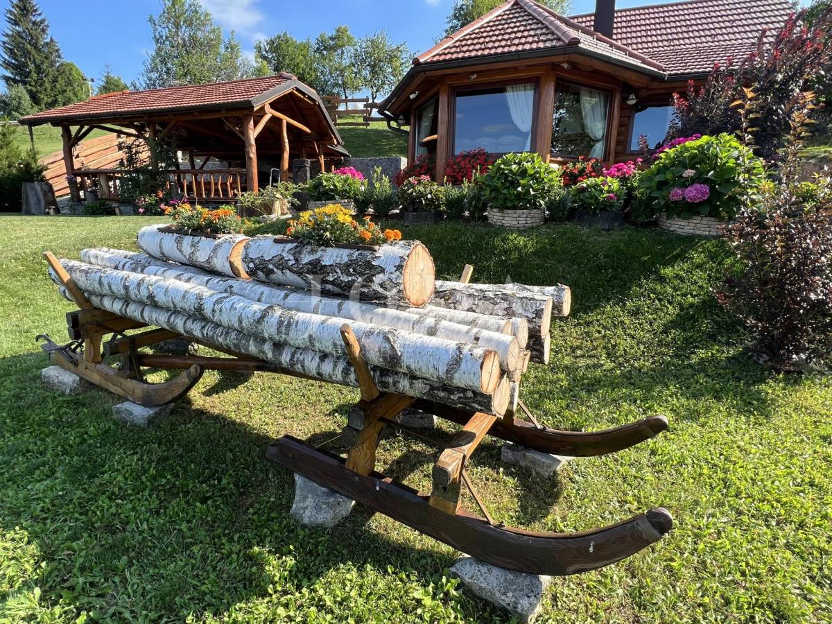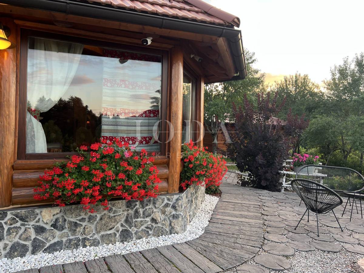 Glavni objekt je drvena kuća kompletno namještena i uređena sa puno ukusa i ljubavi.Uz kuću je veliki natkriveni prostor za druženje sa grillom također izgrađen u autohtonom stilu.