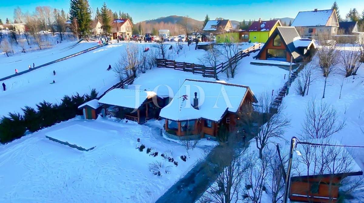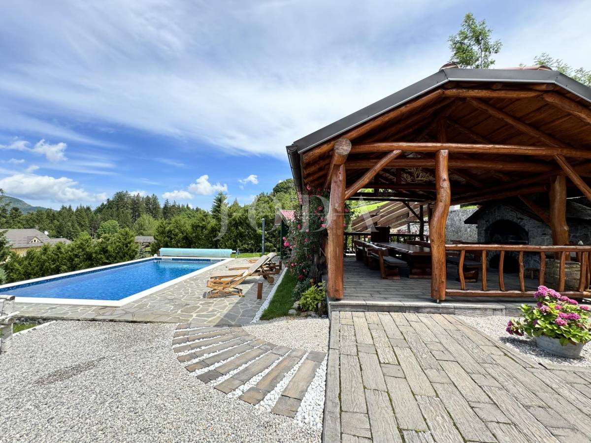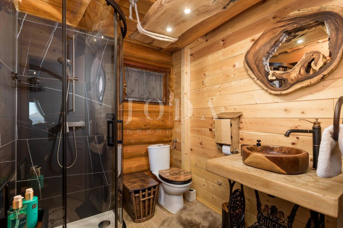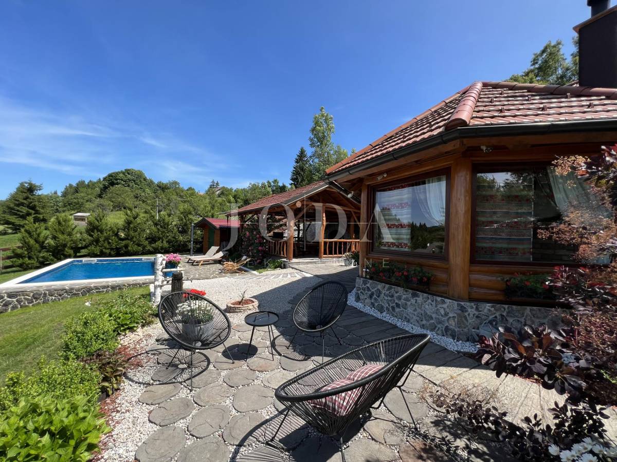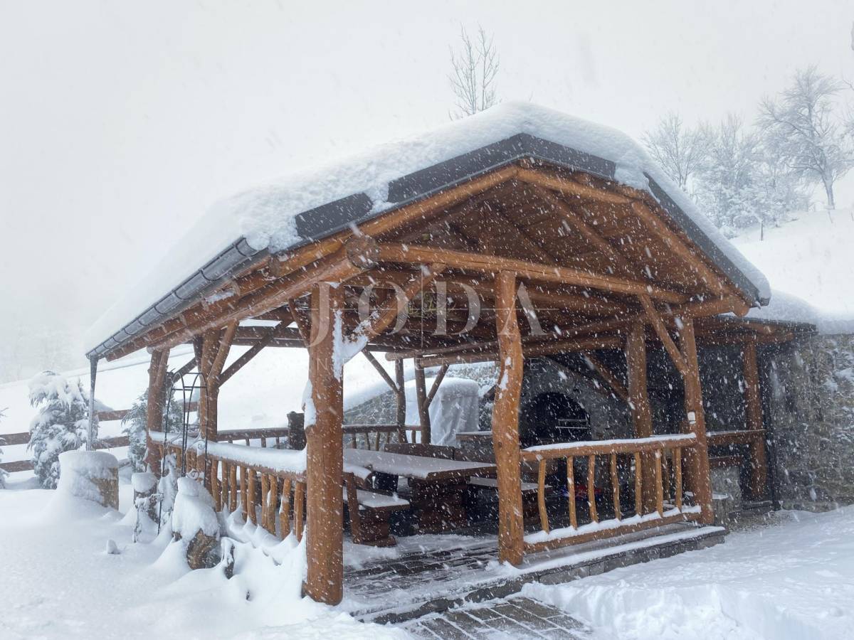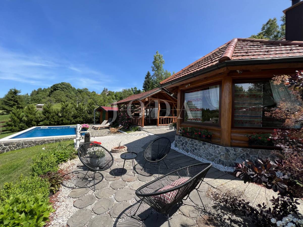 Glavni objekt je drvena kuća kompletno namještena i uređena sa puno ukusa i ljubavi.Uz kuću je veliki natkriveni prostor za druženje sa grillom također izgrađen u autohtonom stilu.
