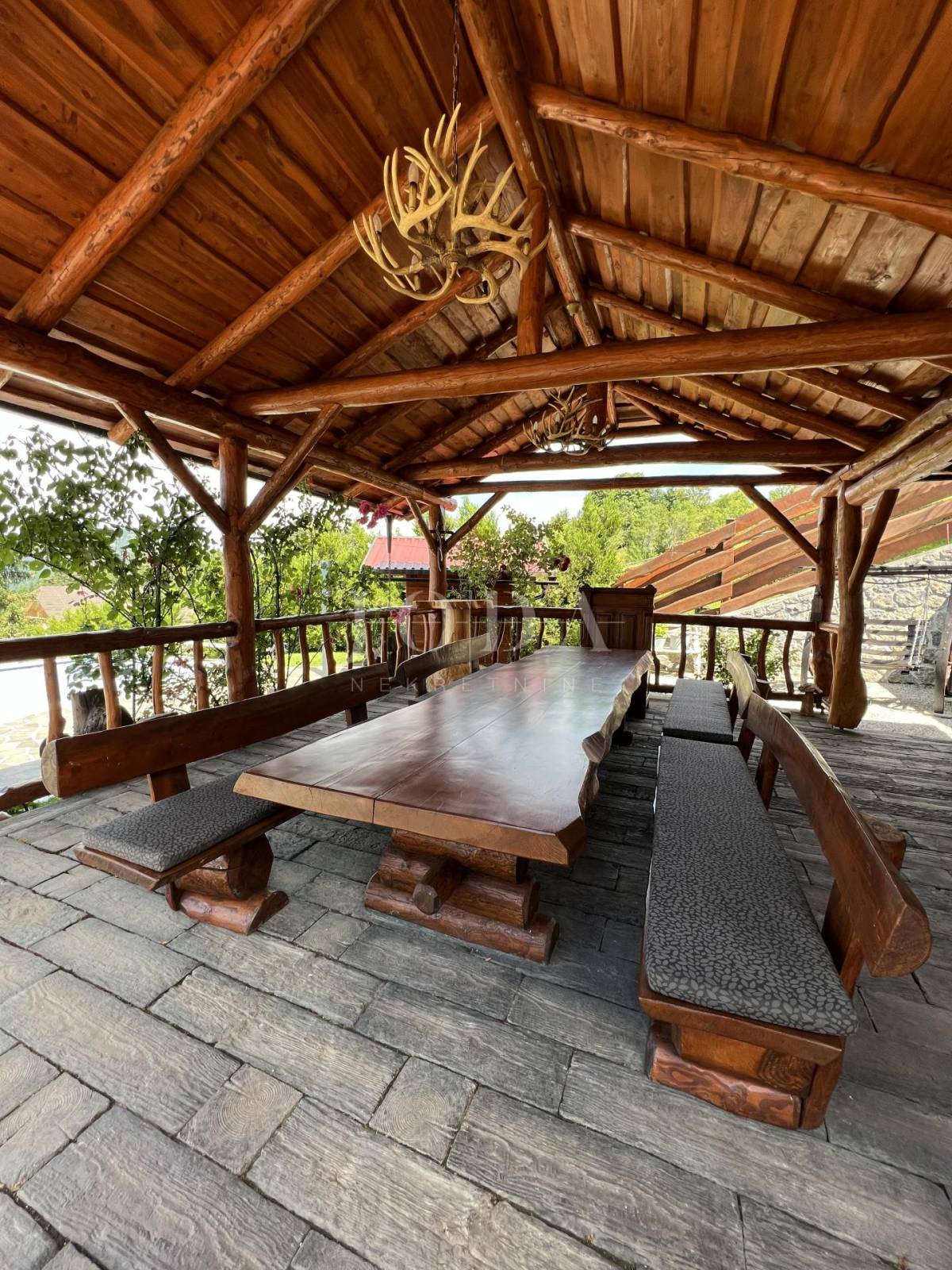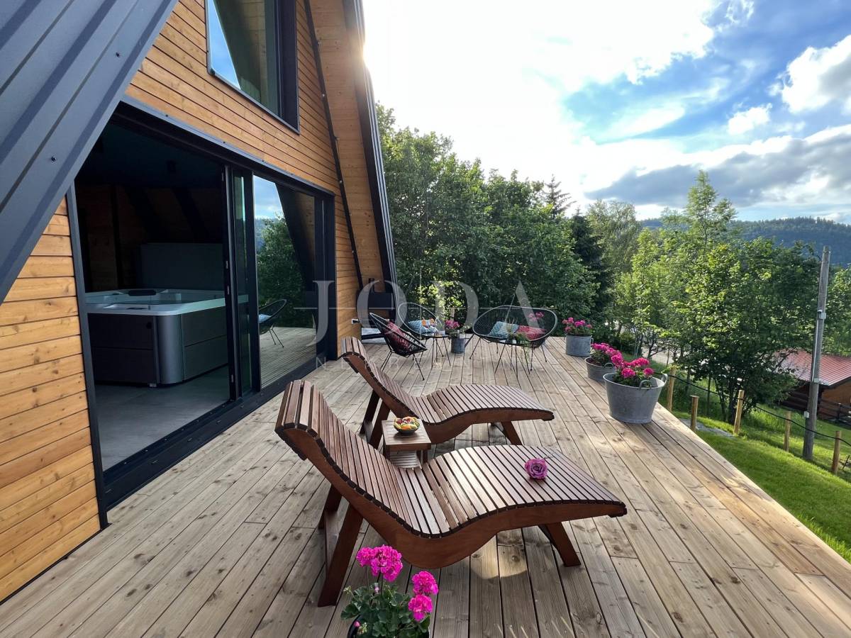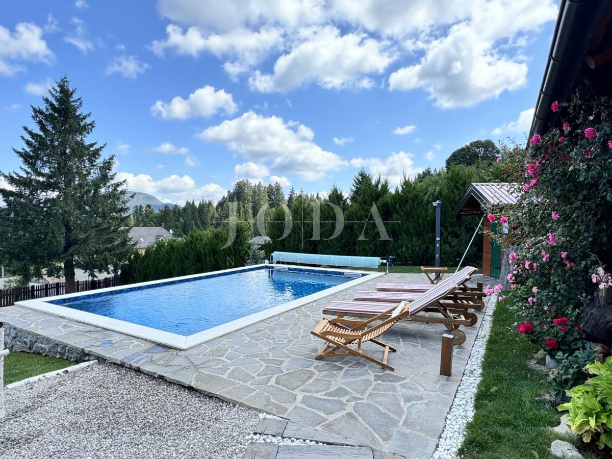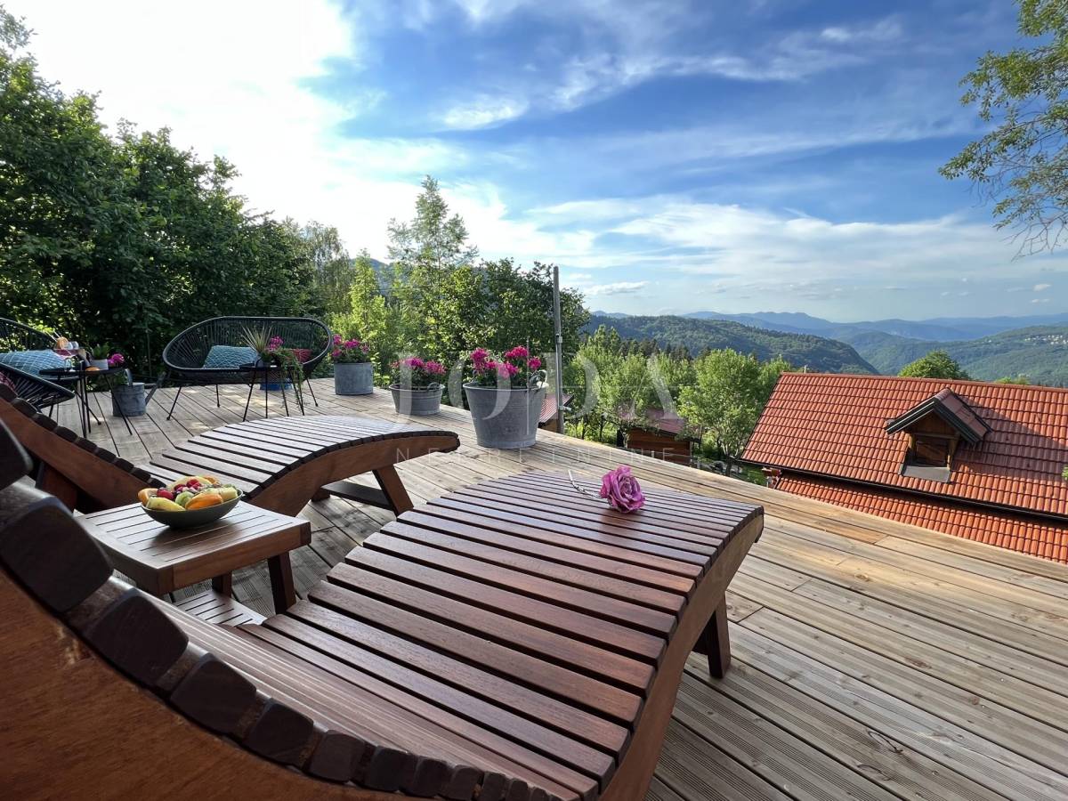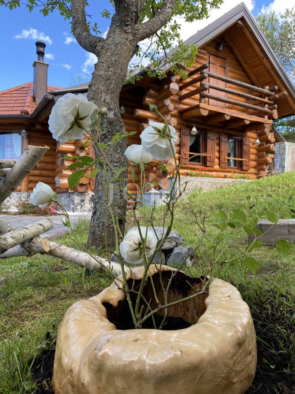 Glavni objekt je drvena kuća kompletno namještena i uređena sa puno ukusa i ljubavi.Uz kuću je veliki natkriveni prostor za druženje sa grillom također izgrađen u autohtonom stilu.