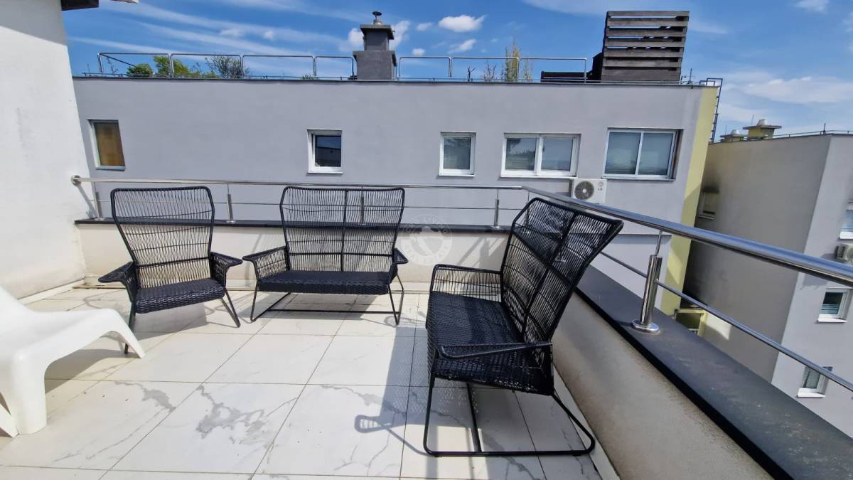 Prodaje se dvosobni stan PENTHOUSE površine 78,6 m2, smješten na prvom katu zgrade izgrađene 2018. godine, u mirnoj i traženoj četvrti Črnomerec, Kustošija, u blizini park šume Grmoščica, na Ilici, uvučeno od ceste.
