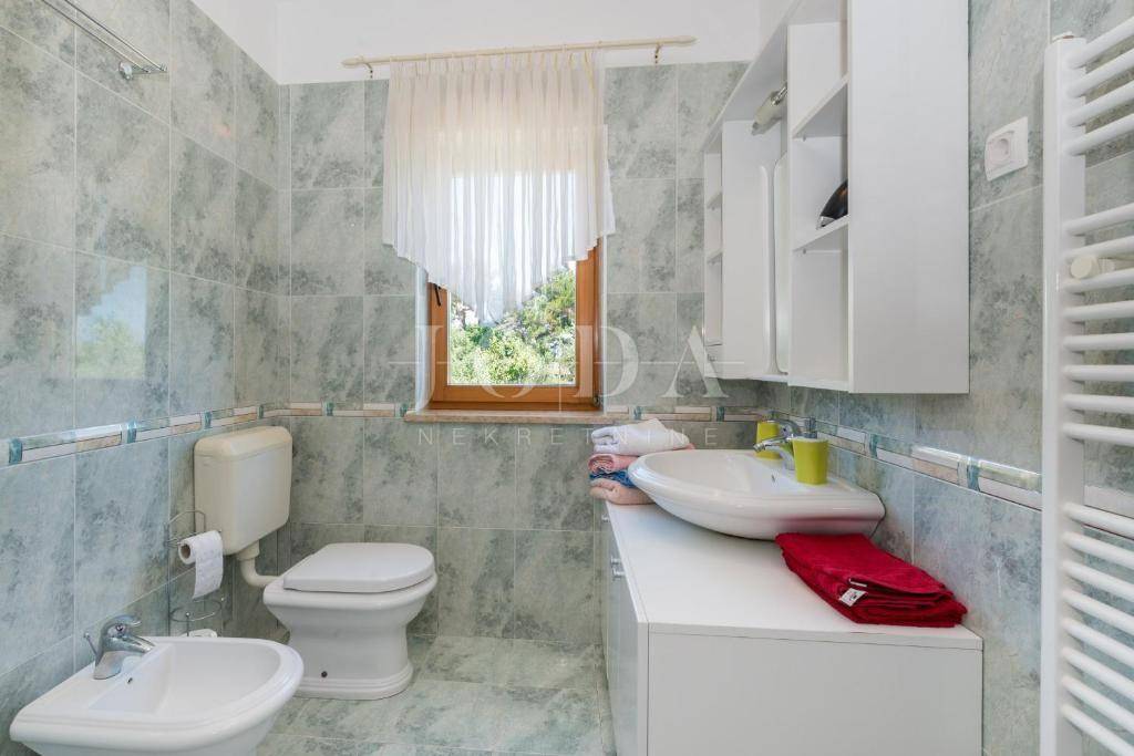 Kuća je opremljena sustavom centralnog grijanja na lož ulje i klima uređajima.