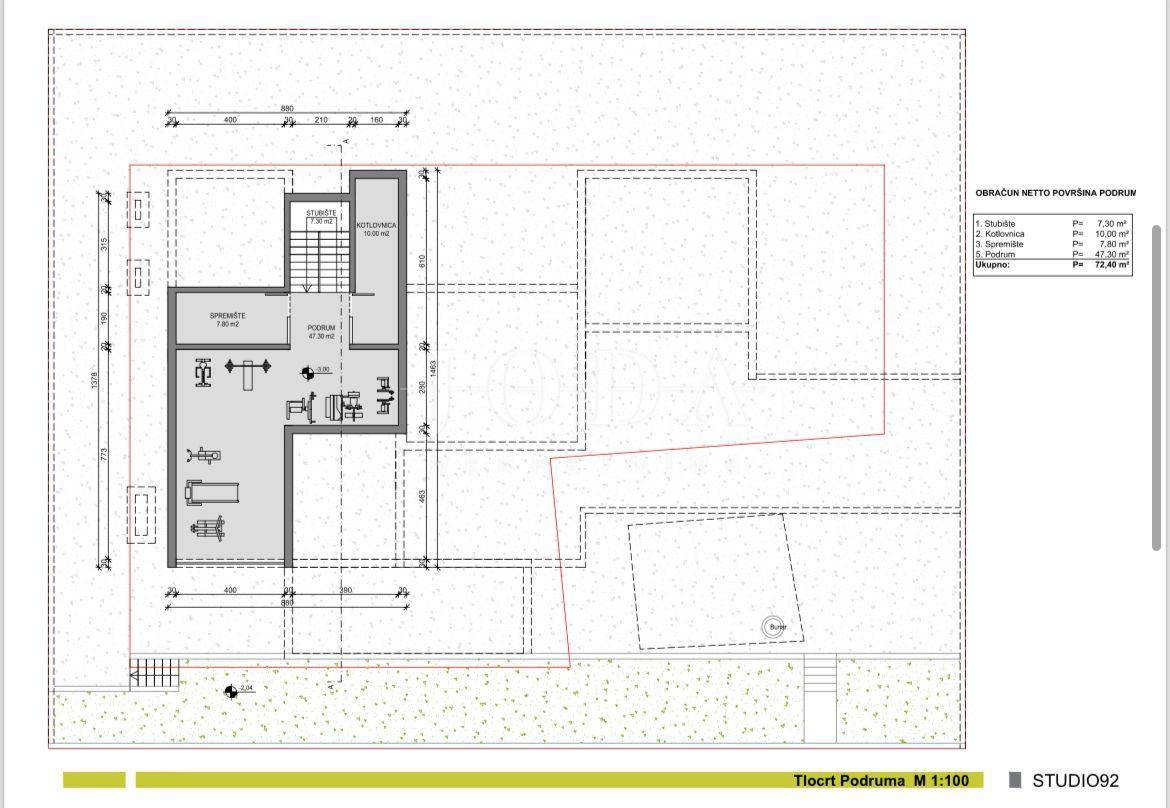 U suterenu se nalazi podrum, u kojem je smještena teretana, spremište i kotlovnica.