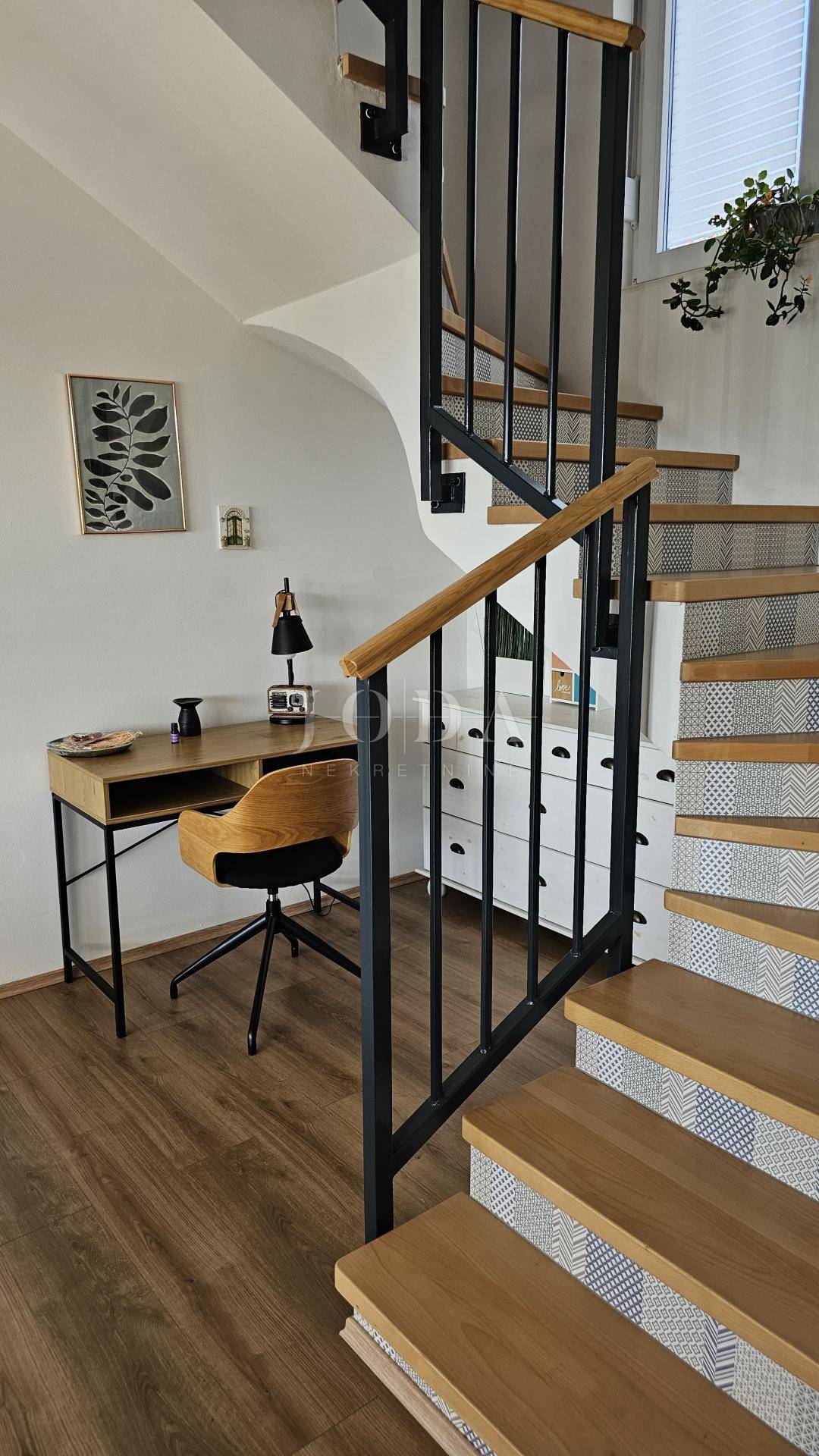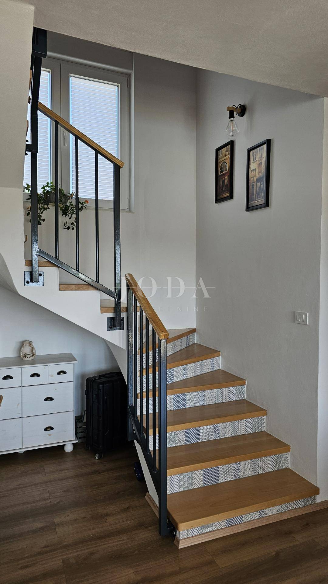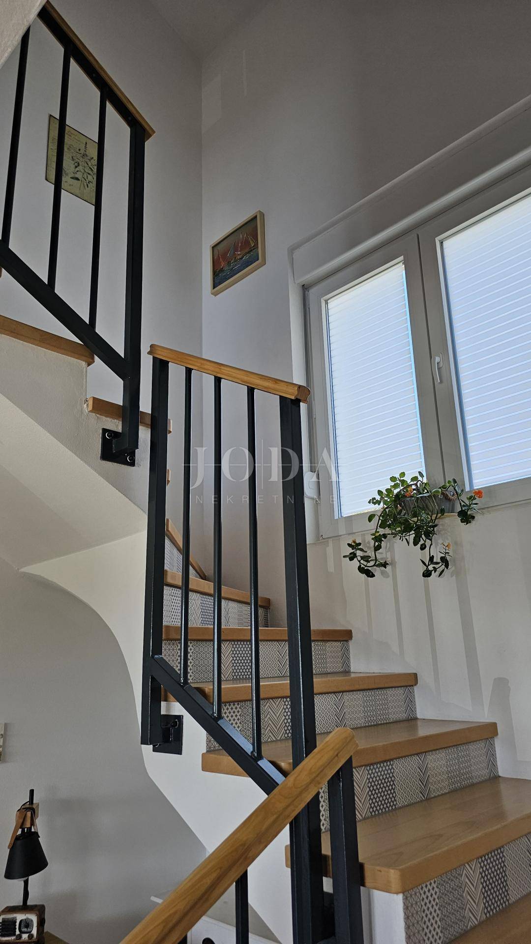 Na katu su tri spavaće sobe,dvije imaju izlaz na natkriven balkon te velika kupaona.