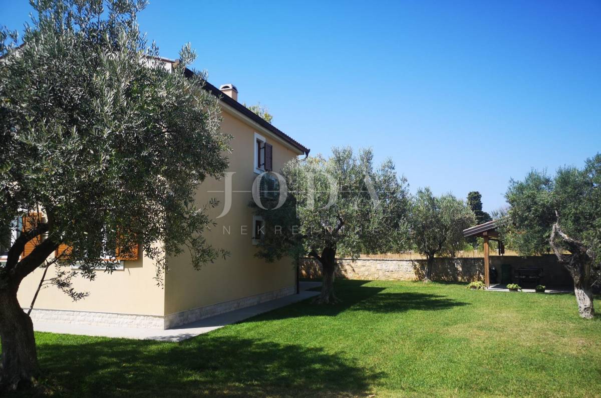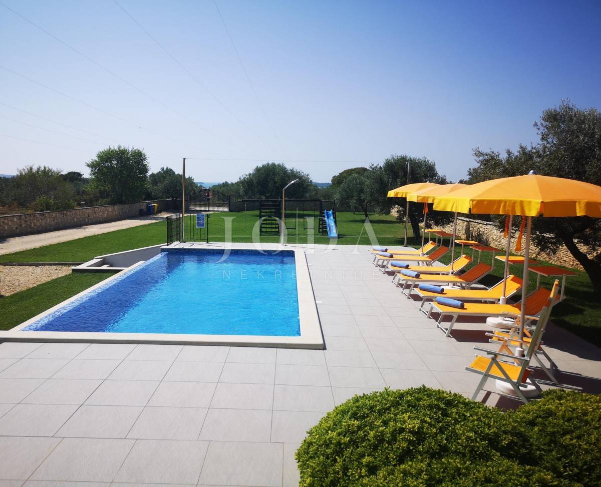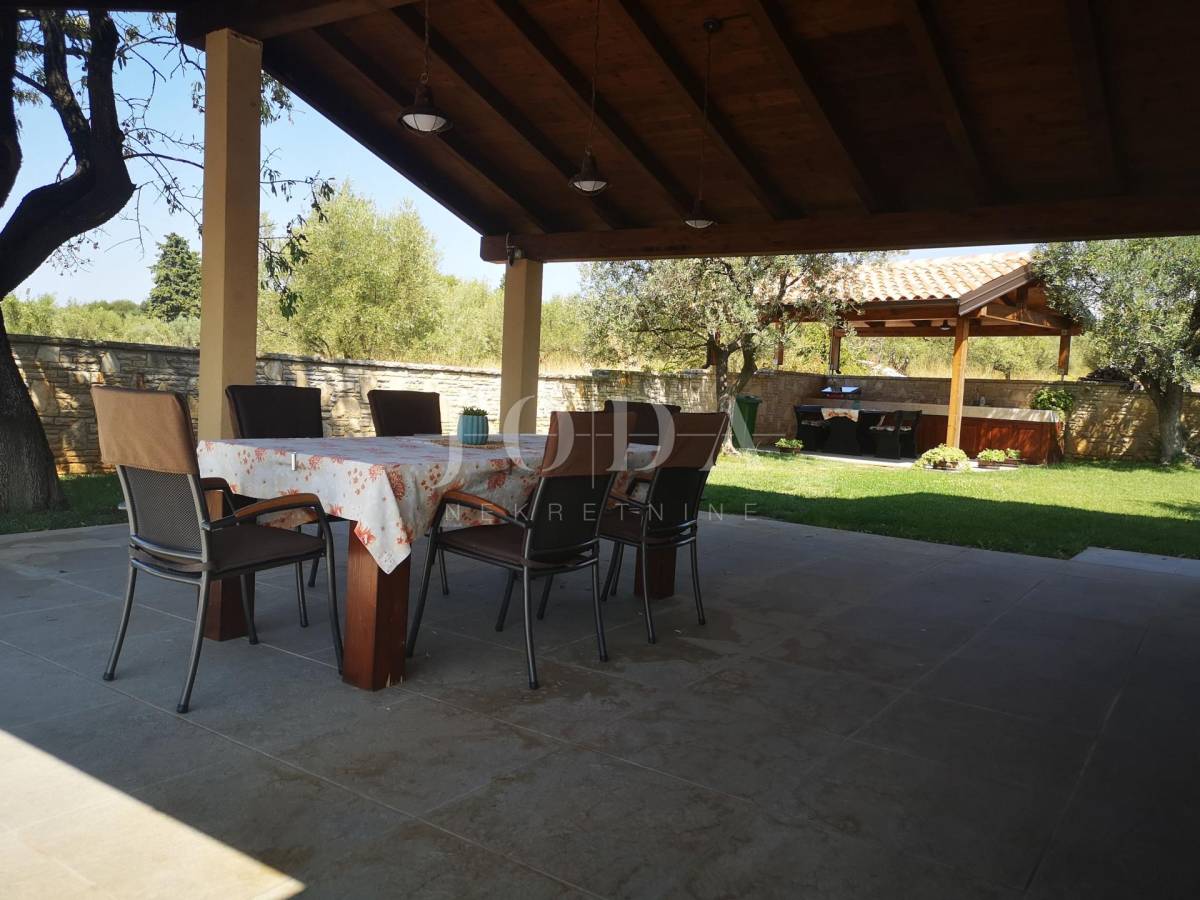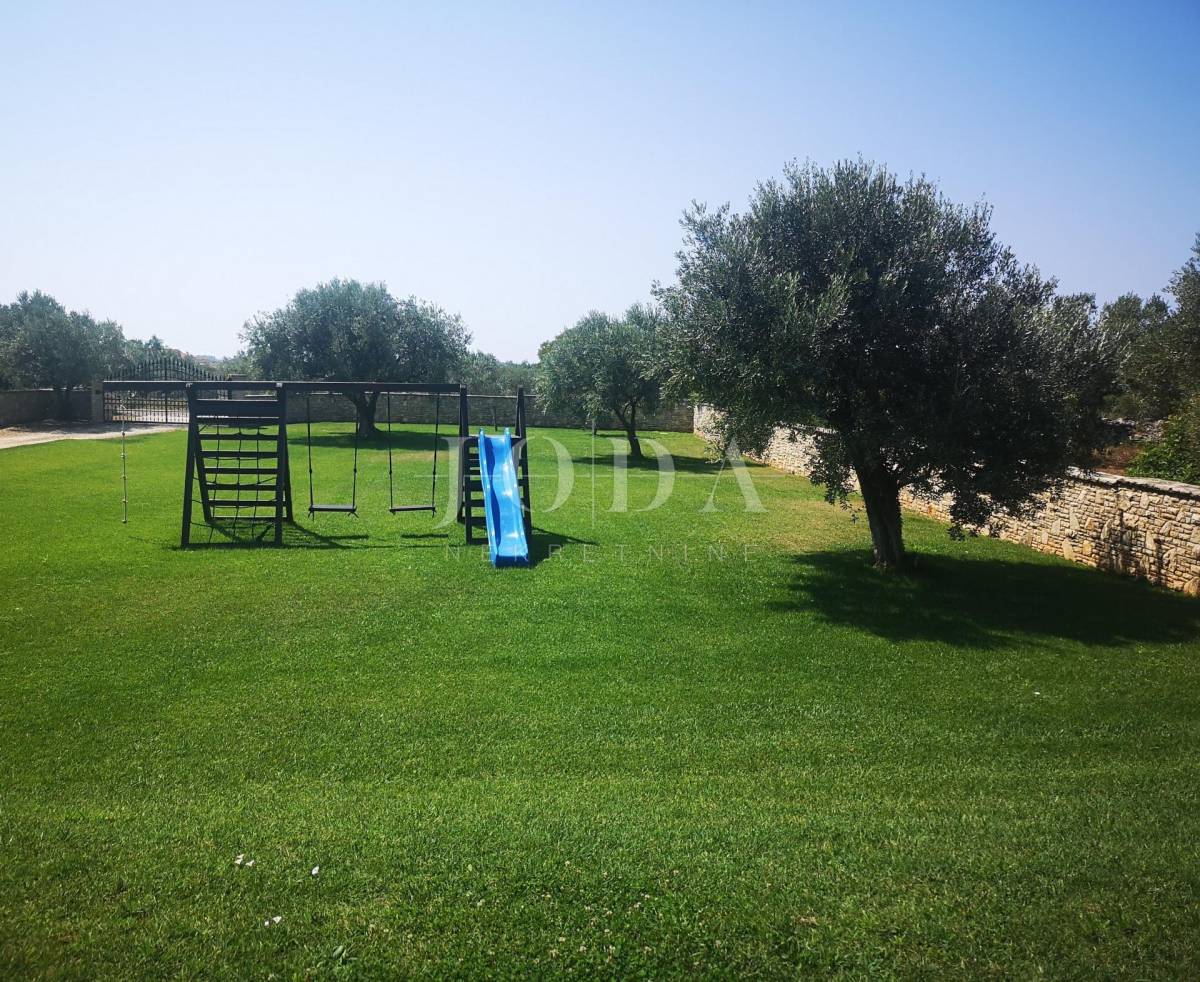 Uz terasu koja okružuje kuću,nalazi se ljetna kuhinja te bazen i sunčalište,a na prekrasnoj travnatoj okučnici nalazi se dječje igralište.