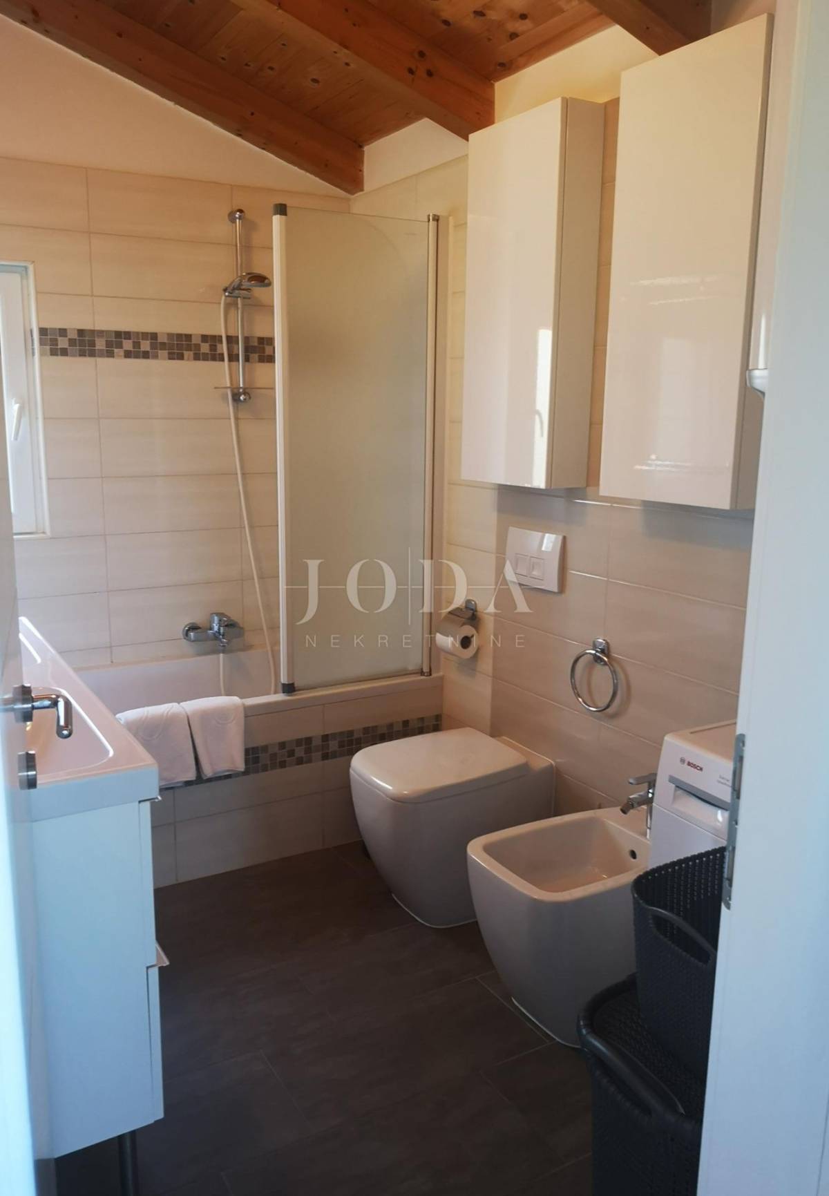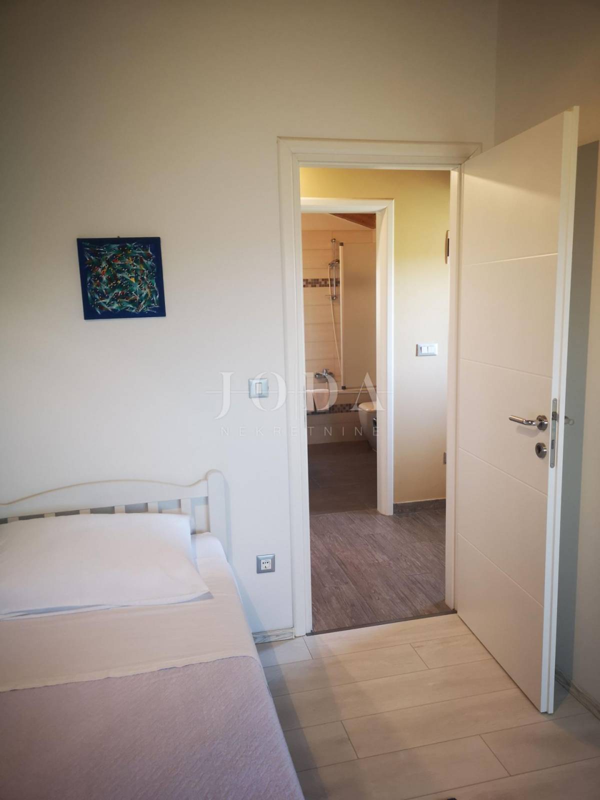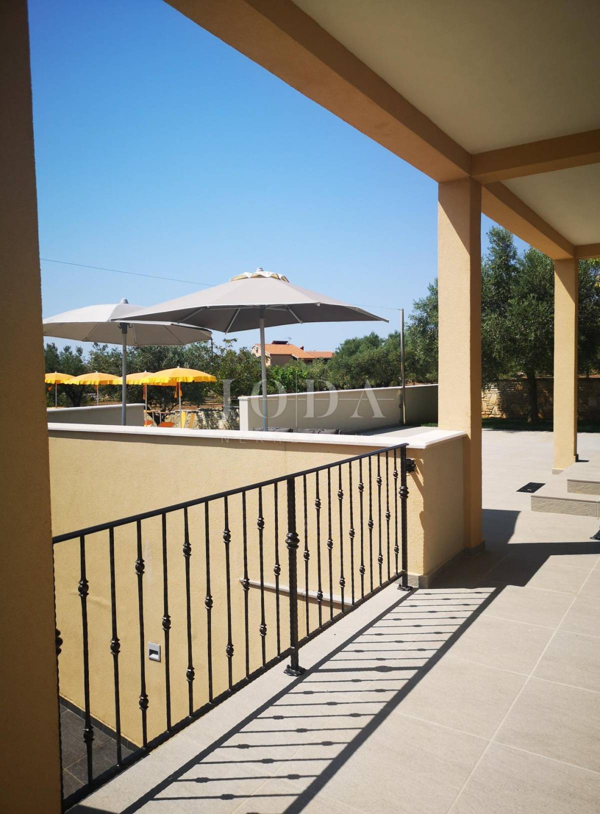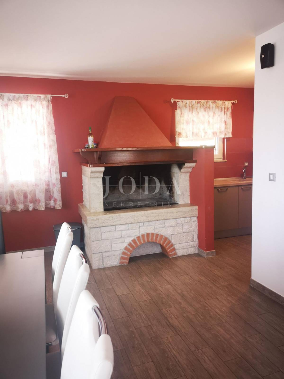 Uz terasu koja okružuje kuću,nalazi se ljetna kuhinja te bazen i sunčalište,a na prekrasnoj travnatoj okučnici nalazi se dječje igralište.