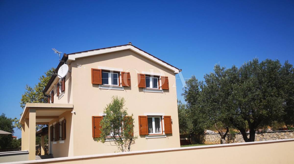 Na mirnoj lokaciji udaljenoj od centra FAŽANE i mora 700m nalazi se ova lijepa kuća sa prostranom uređenom okućnicom, dječjim parkom i bazenom.