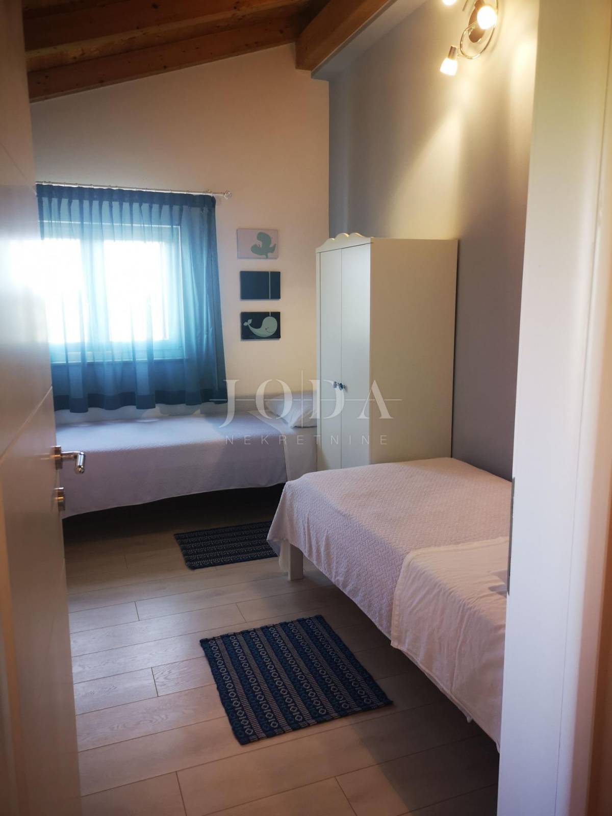 Stepenice vode na prvi kat na kojem se nalaze tri spavaće sobe sa pogledom na more i Brijune te kupatilo.