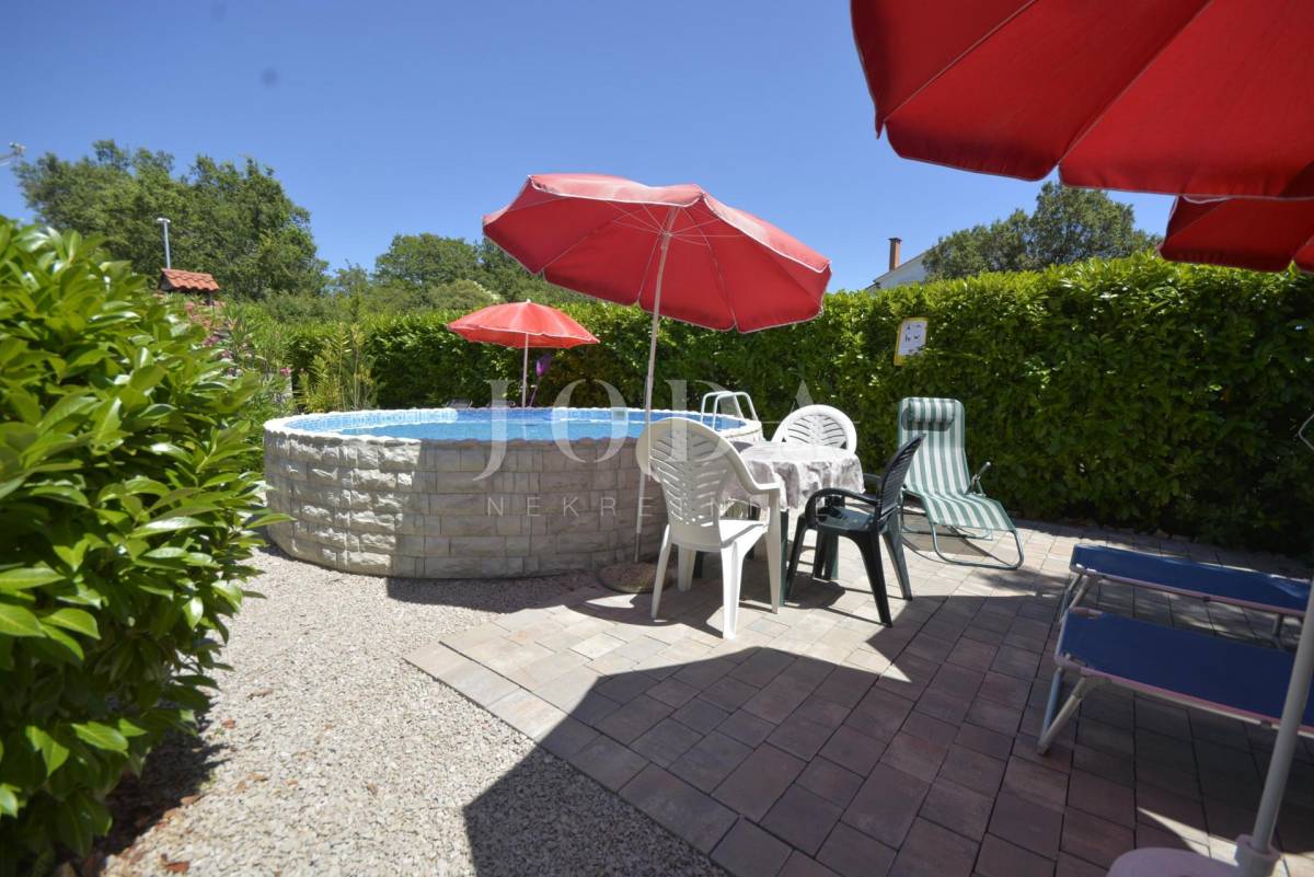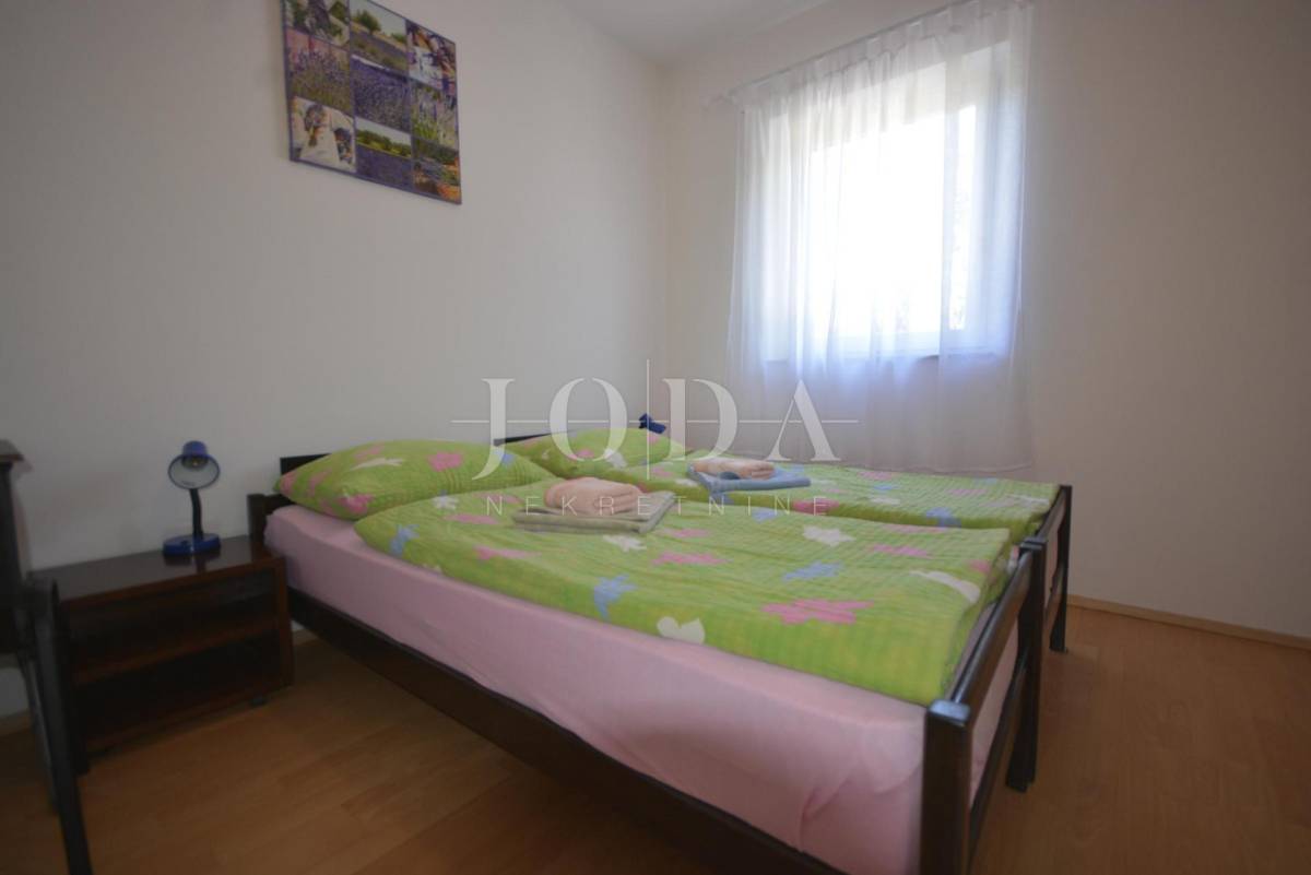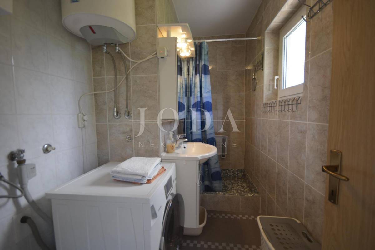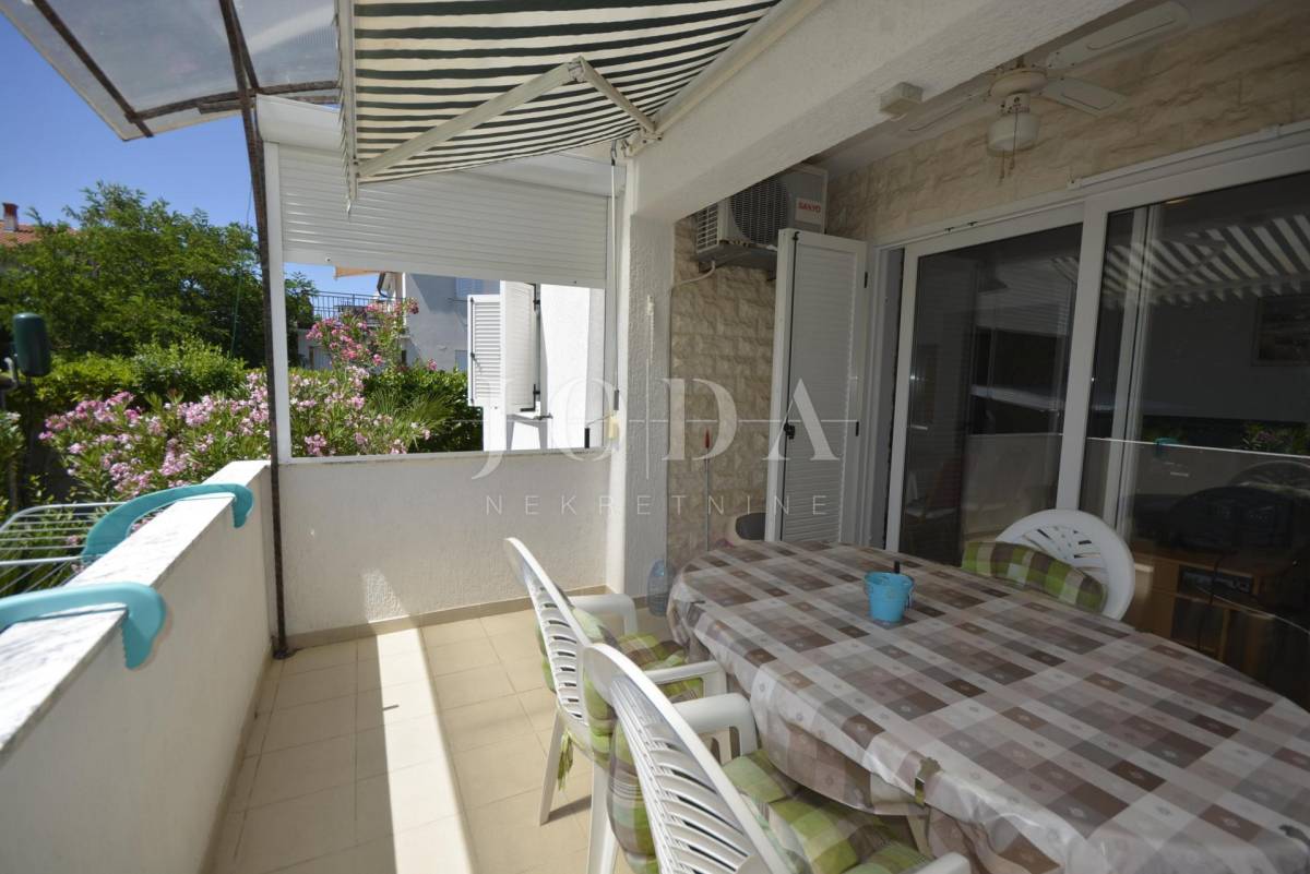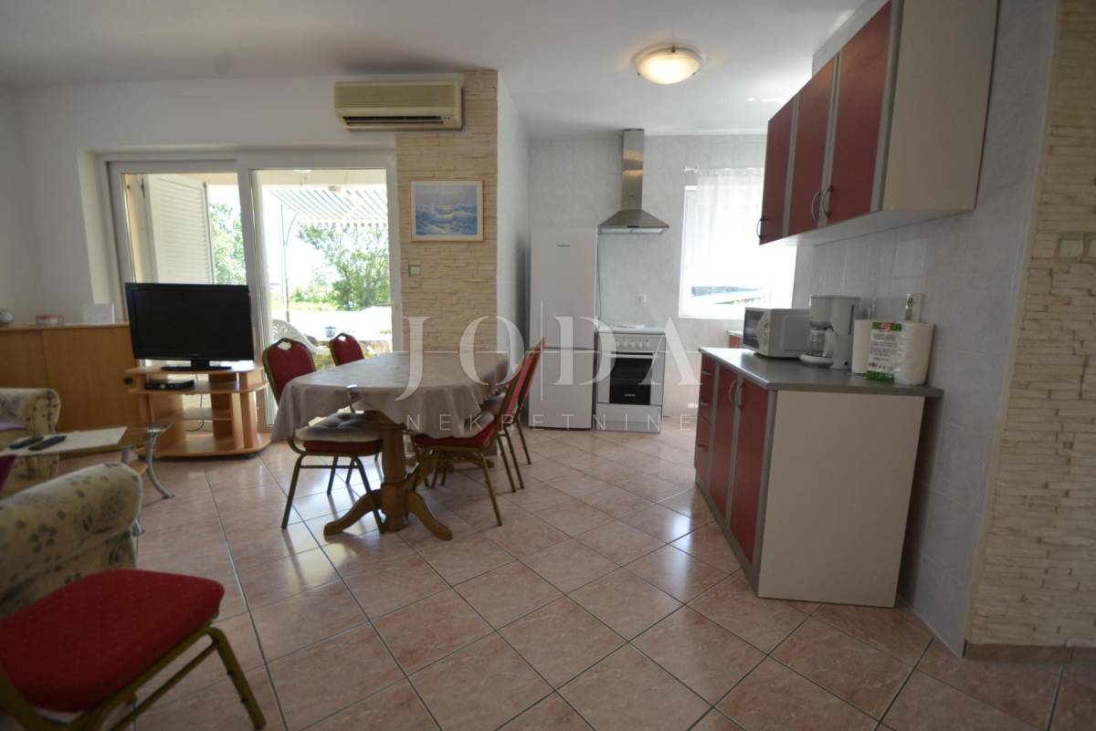 Na svakoj etaži nalazi se po jedan dvosobni stan s kuhinjom, dnevnim boravkom, blagovaonom i kupaonom. Stan u prizemlju ima i prostrani balkon. Kuća je namještena, klimatizirana, ima PVC stolariju. Na prekrasno uređenoj okućnici nalazi se konoba i sjenica (cca 20 m2) s kaminom. Nekoliko parkirnih mjesta na parceli. Kuća se nalazi na lijepoj, mirnoj lokaciji, cca 850 m od mora!
